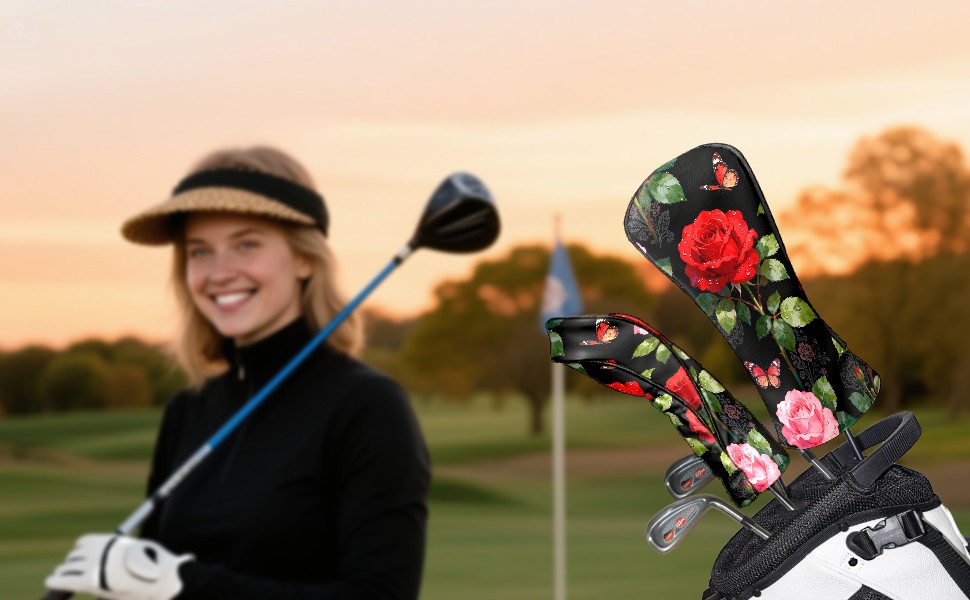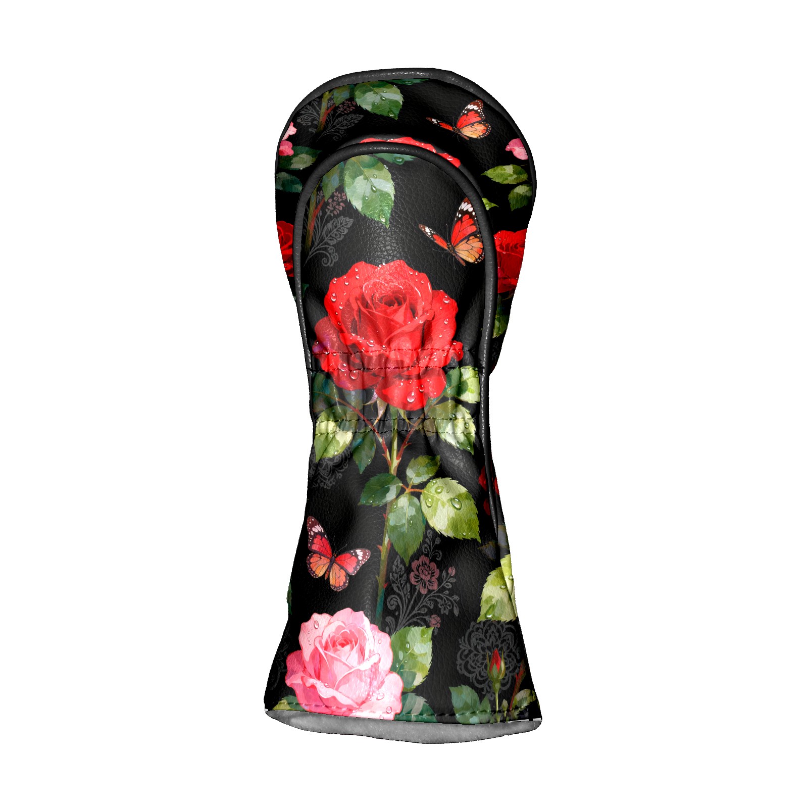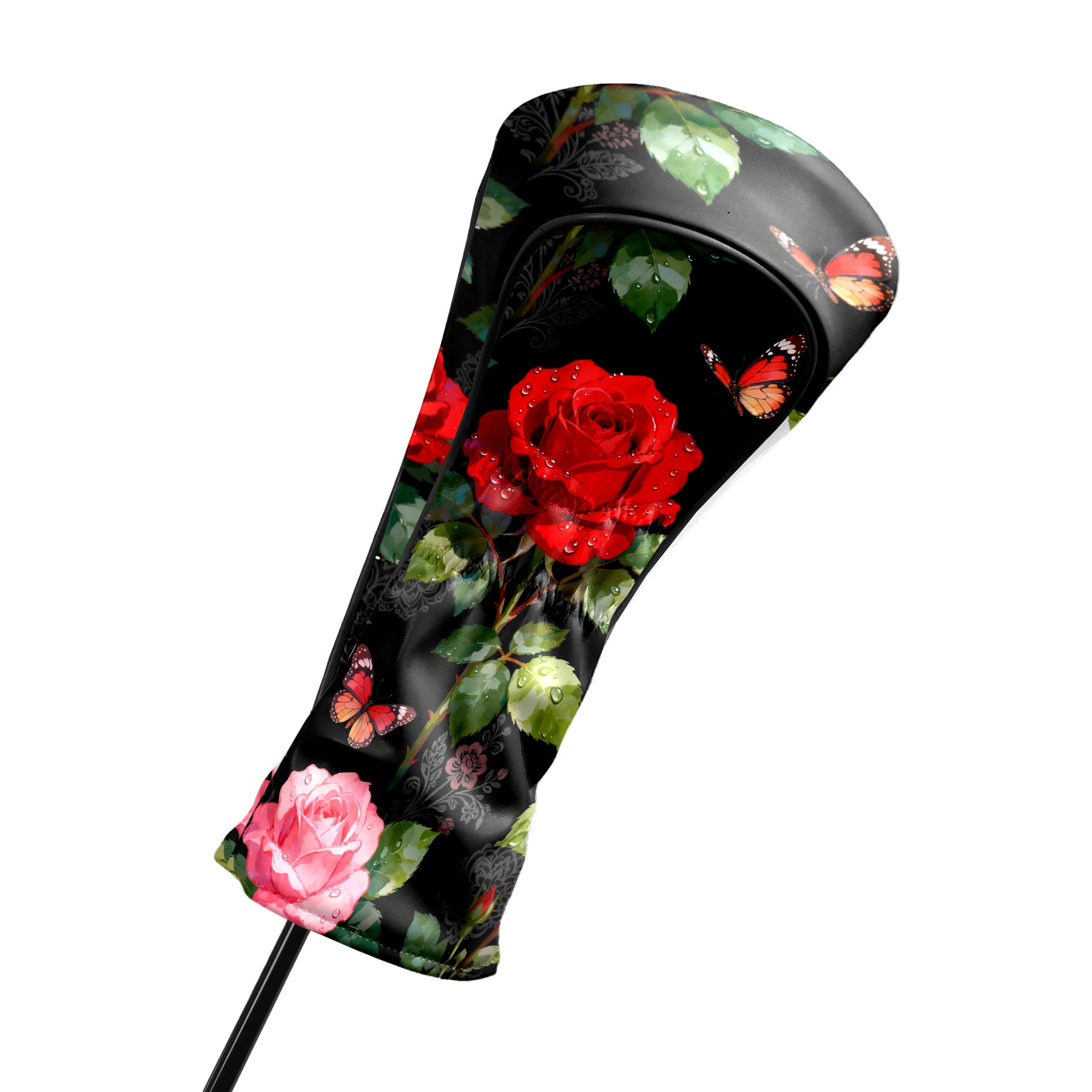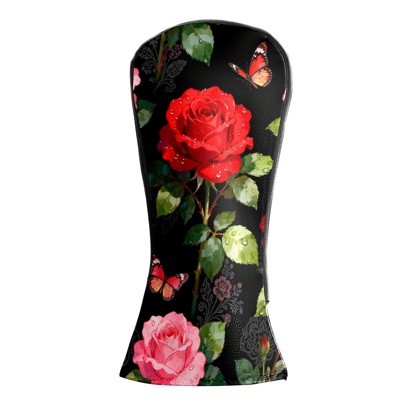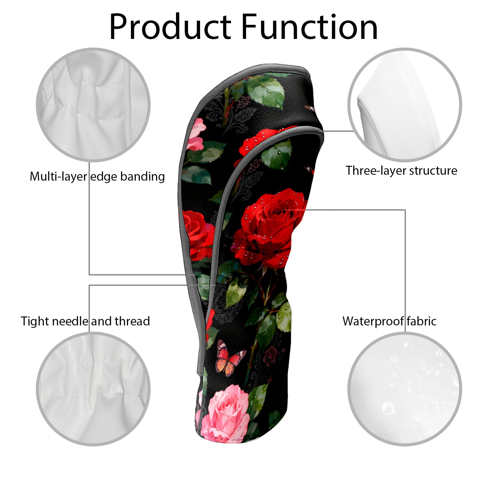 Golf Club Covers Premium Leather Driver Headcover, Golf Head Covers for Woods and Driver Waterproof Golf Headcovers with Anti-Scratch Lining for Women Men (Red Pink Roses)