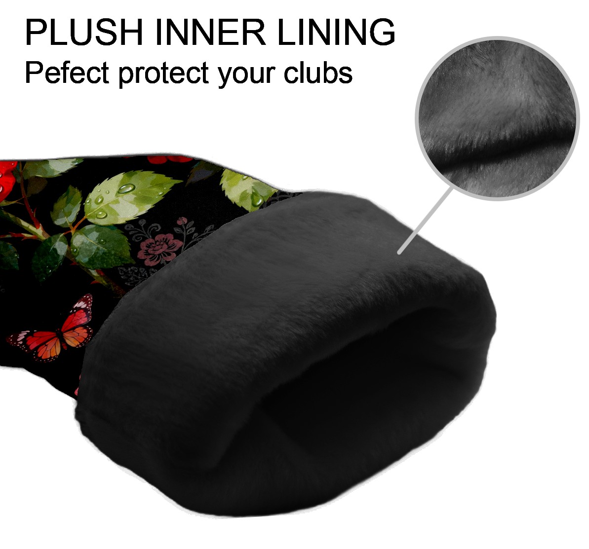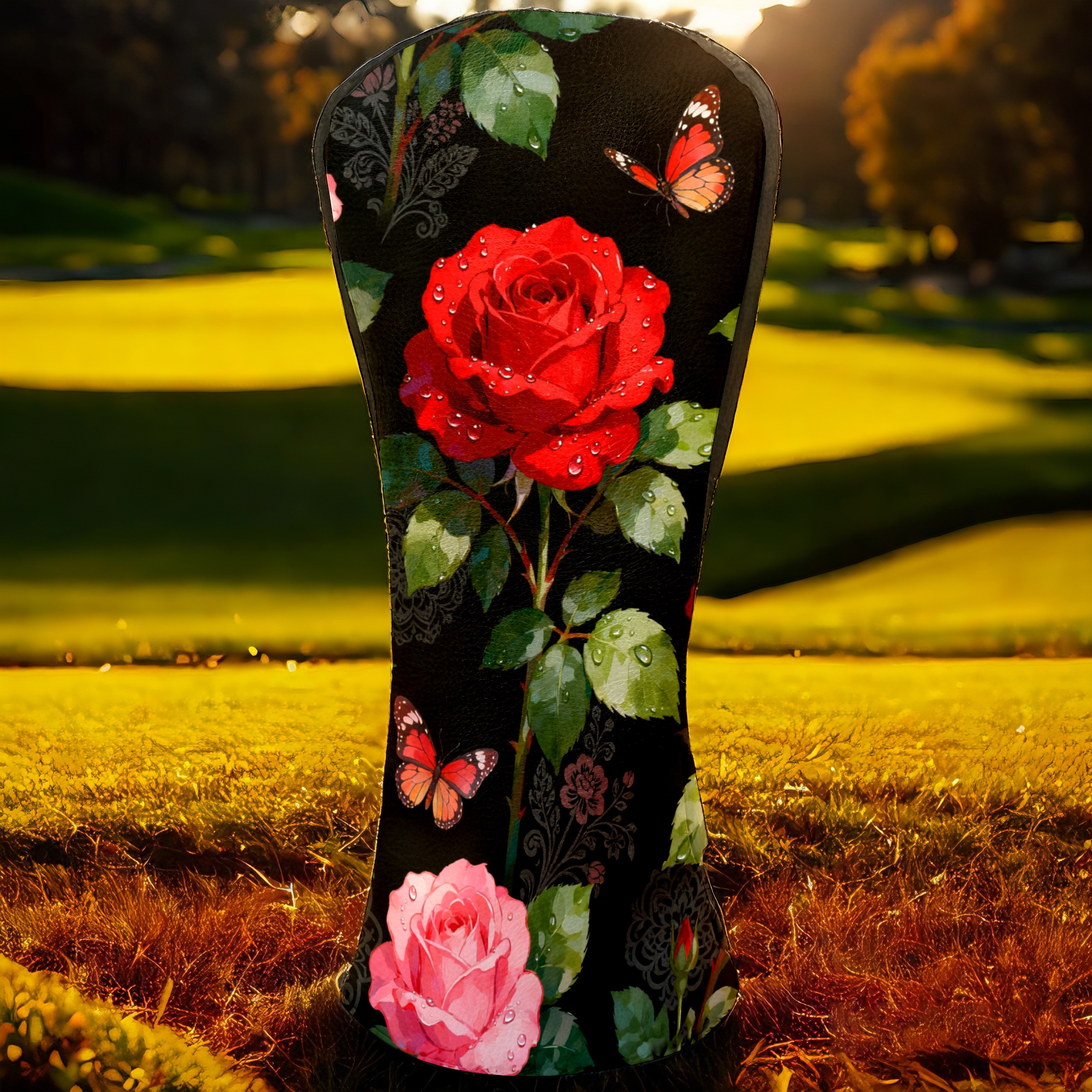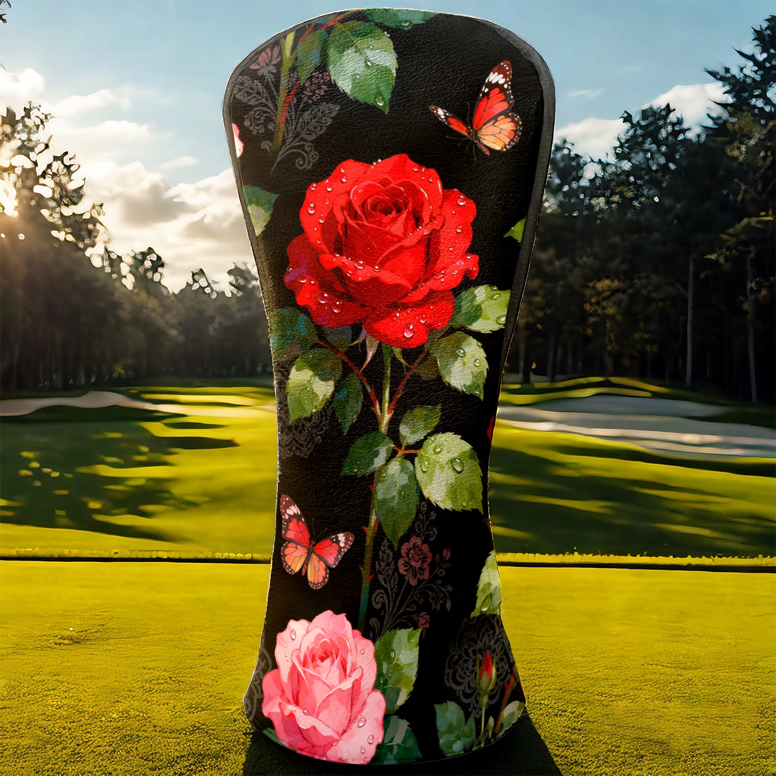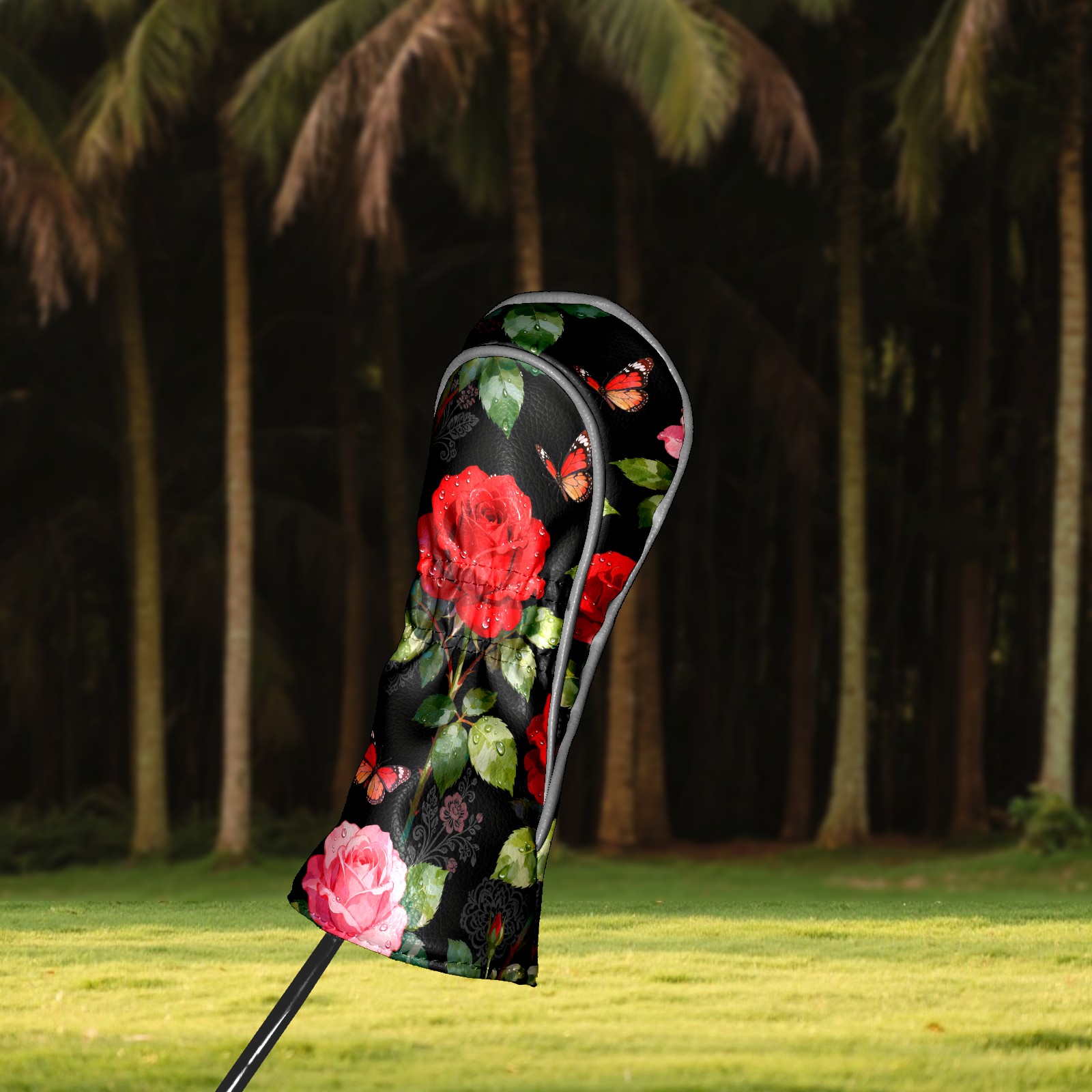Golf Club Covers Premium Leather Driver Headcover, Golf Head Covers for Woods and Driver Waterproof Golf Headcovers with Anti-Scratch Lining for Women Men (Red Pink Roses)