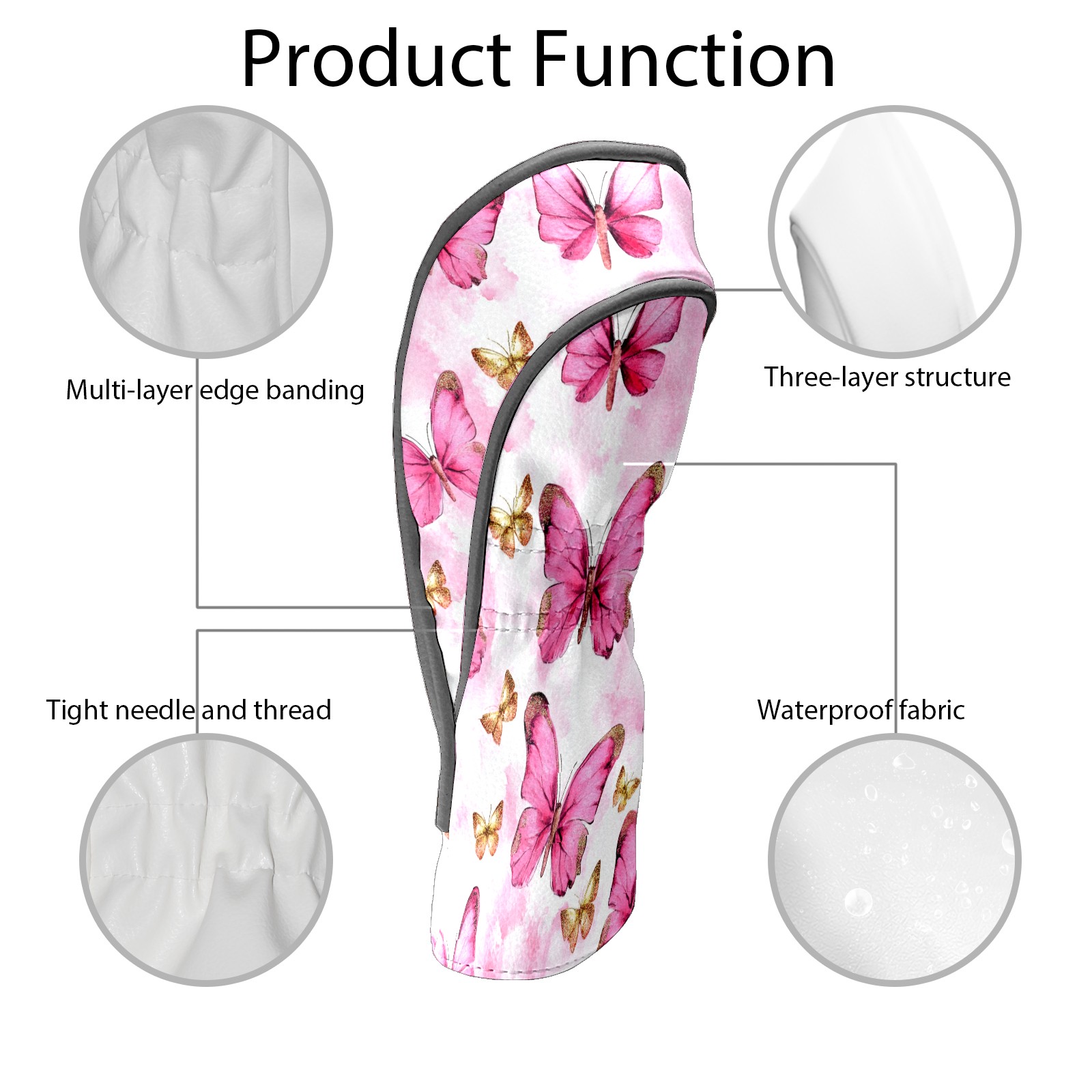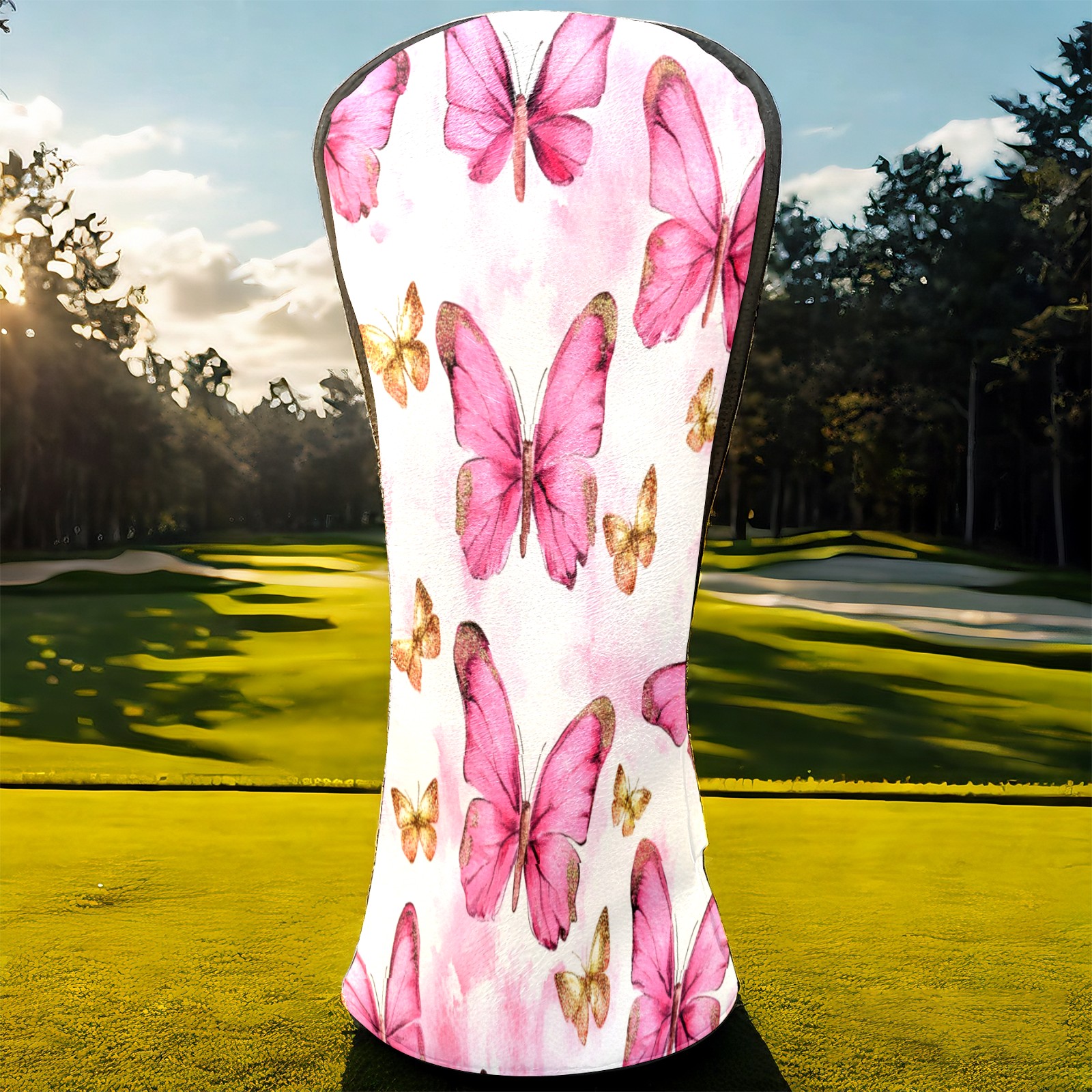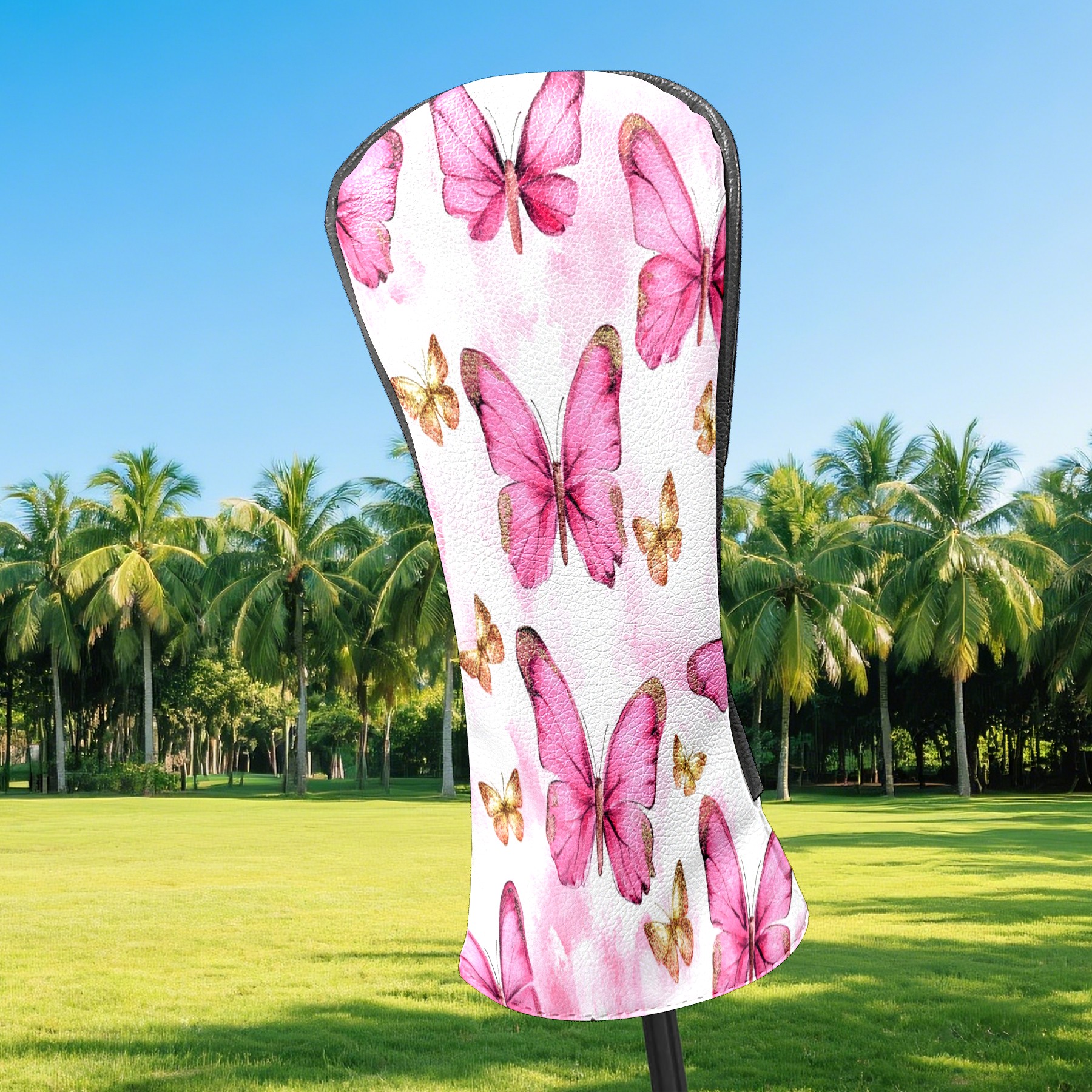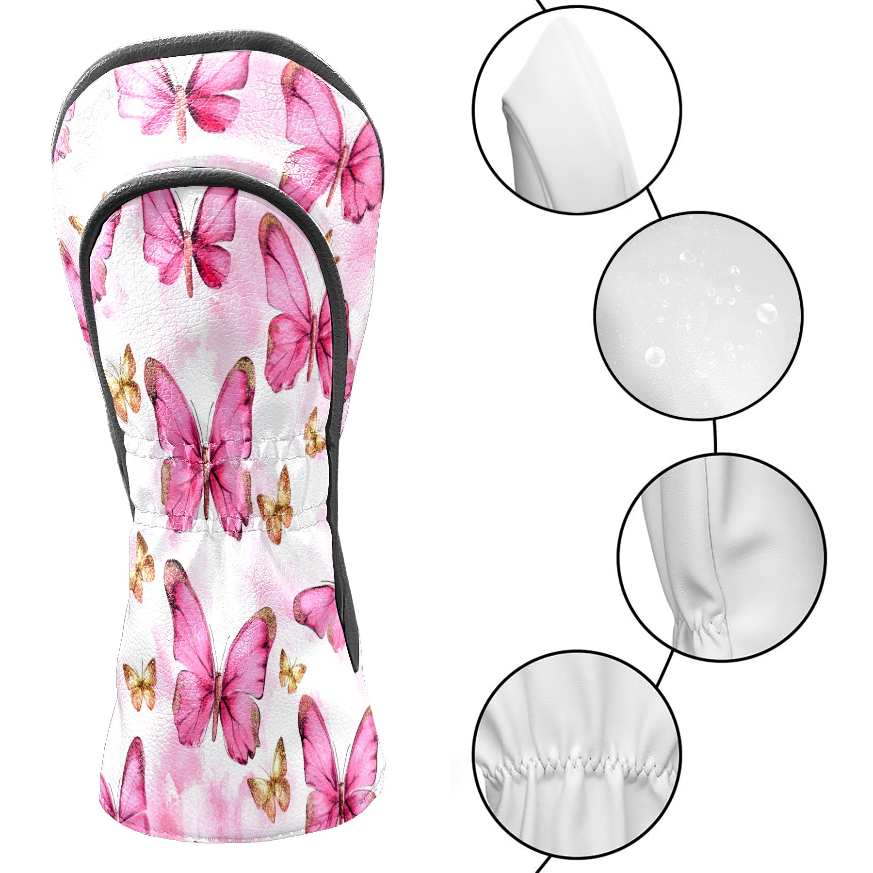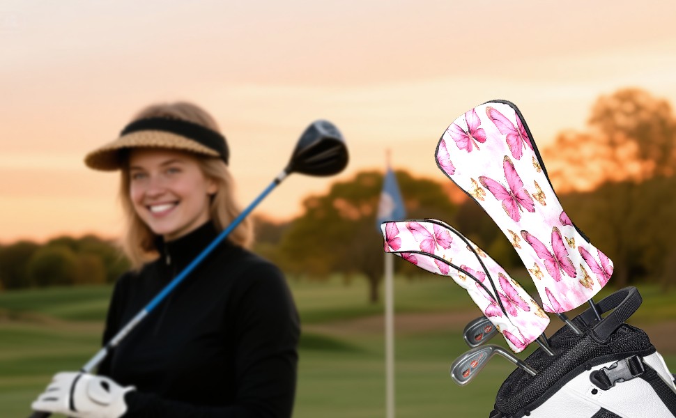 Golf Club Covers Premium Leather Driver Headcover, Golf Head Covers for Woods and Driver Waterproof Golf Headcovers with Anti-Scratch Lining for Women Men (Butterfly Pink 1)