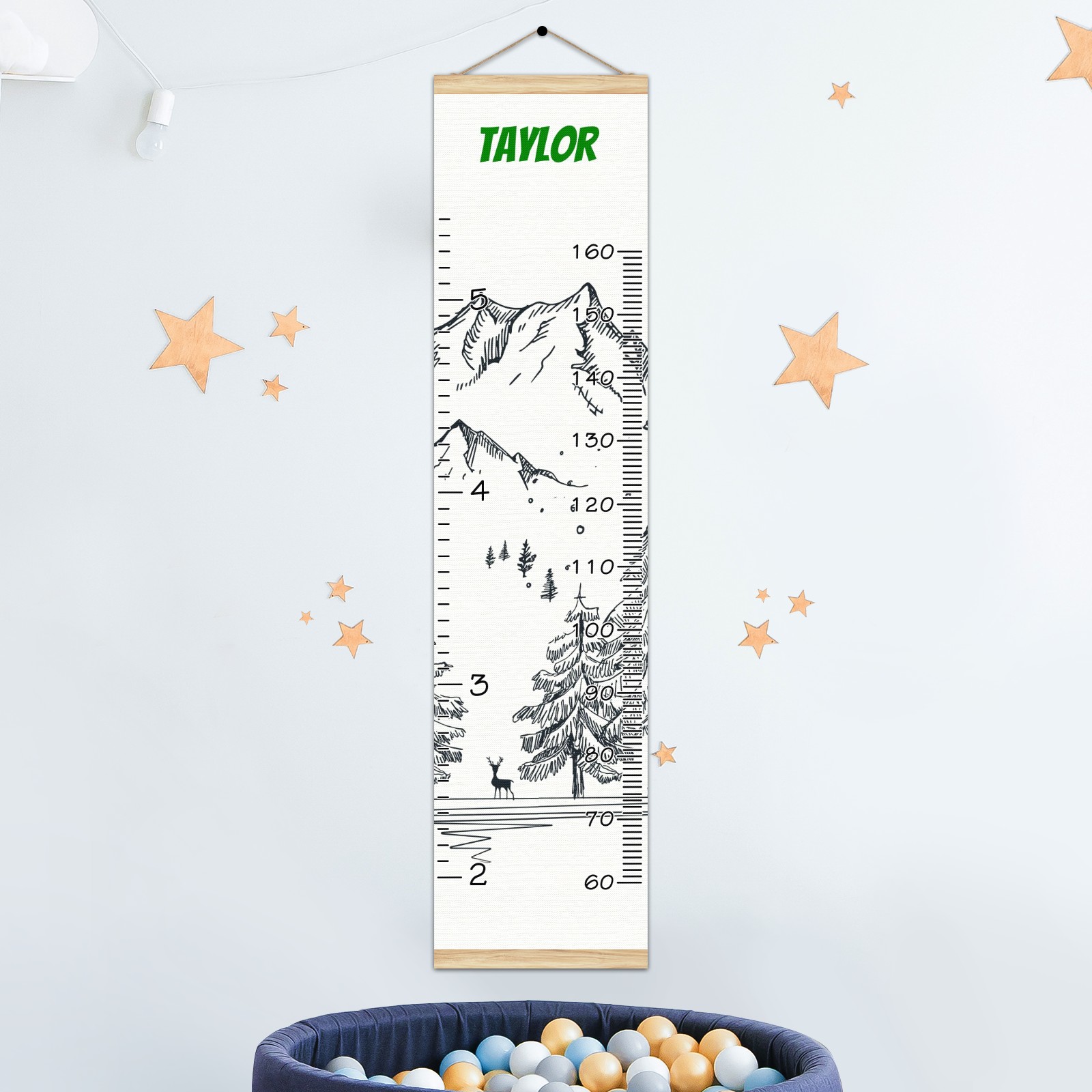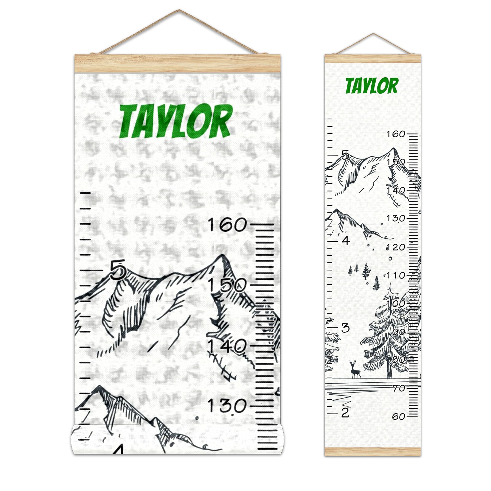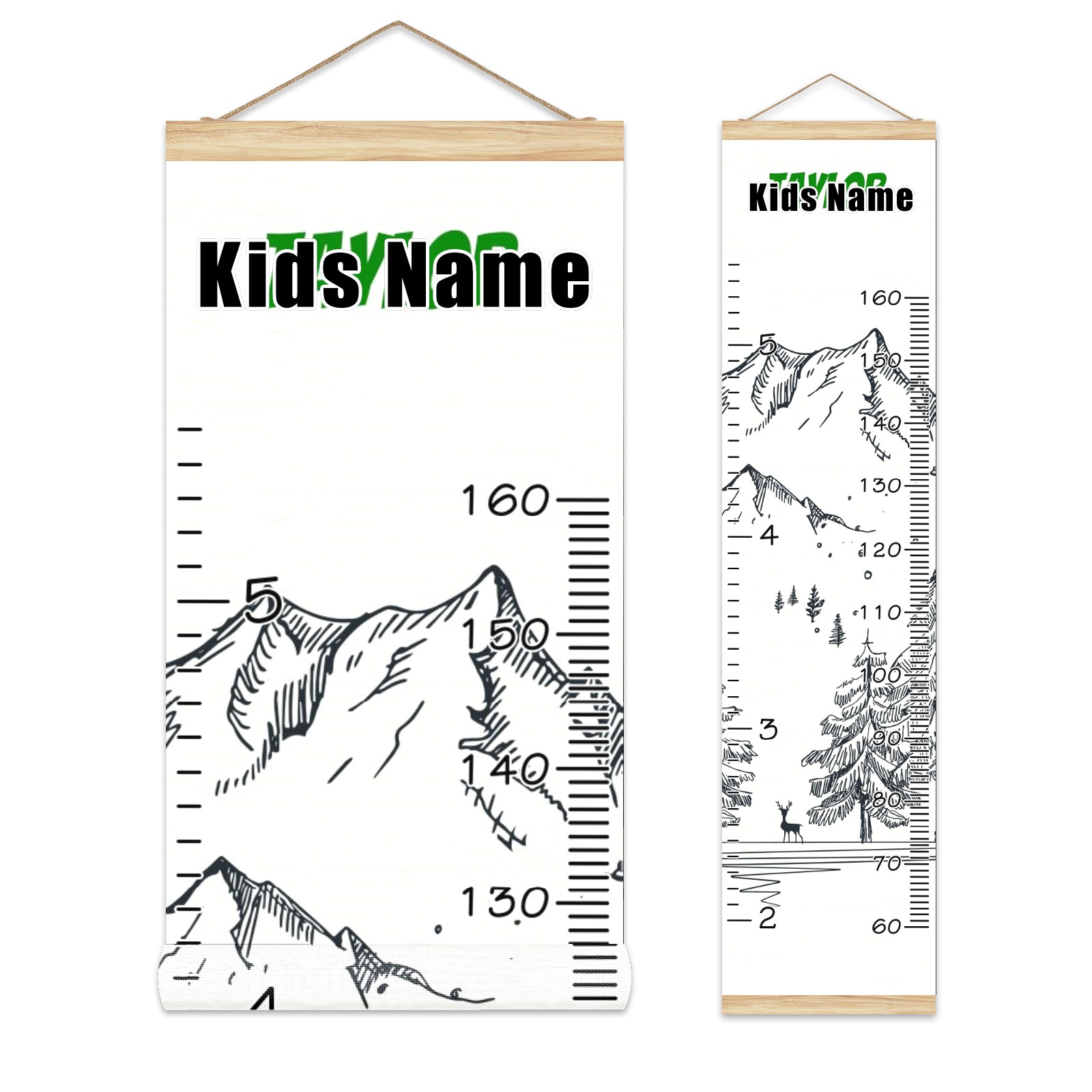 Personalized Kids Name Growth Chart Ruler for Wall Wood Frame Canvas Height Measure Chart 13.4x56 in Hanging Growth Chart Winter Mountain3.11 Boys Girls Room Decor