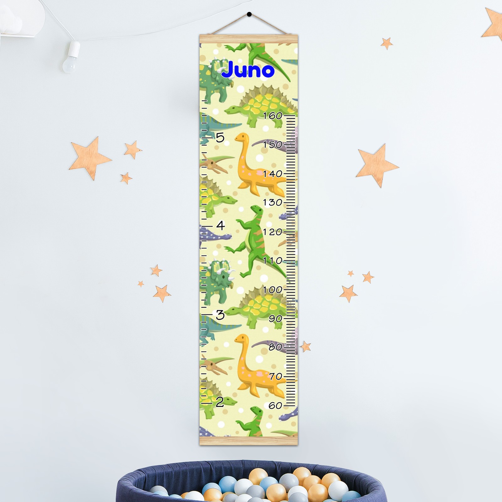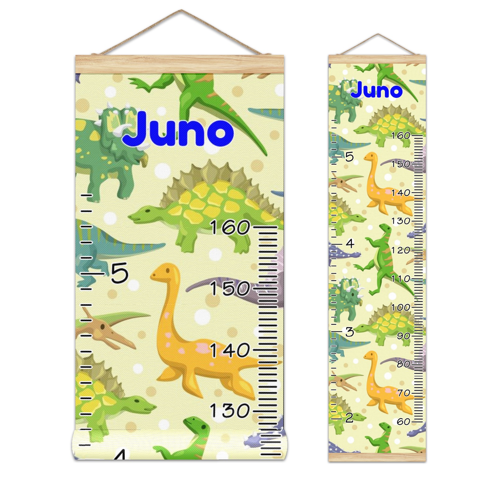 Personalized Kids Name Growth Chart Ruler for Wall Wood Frame Canvas Height Measure Chart 13.4x56 in Hanging Growth Chart Cartoon Dinosaur Animal3.11 Boys Girls Room Decor