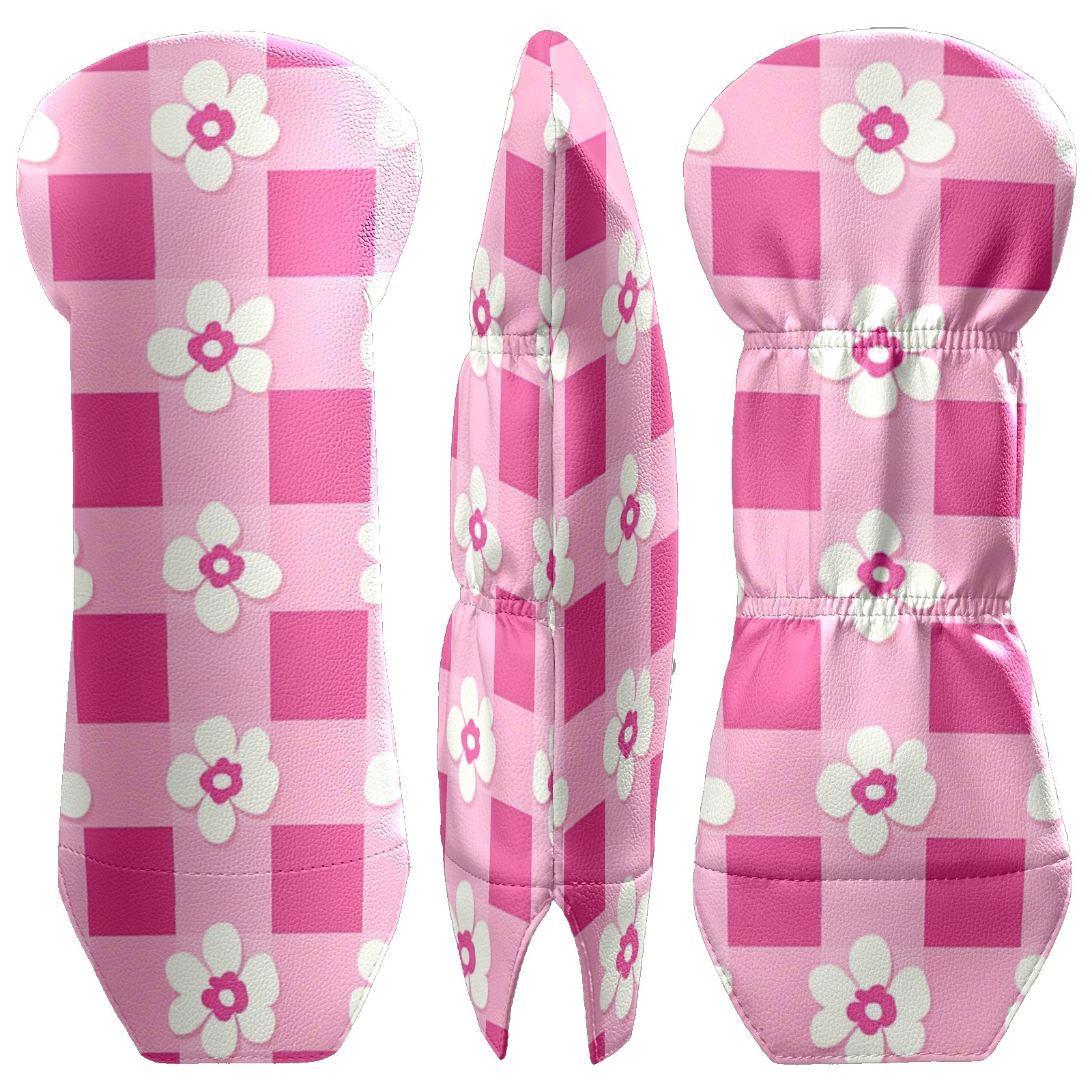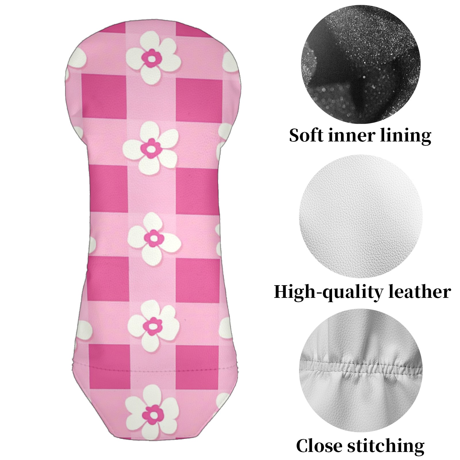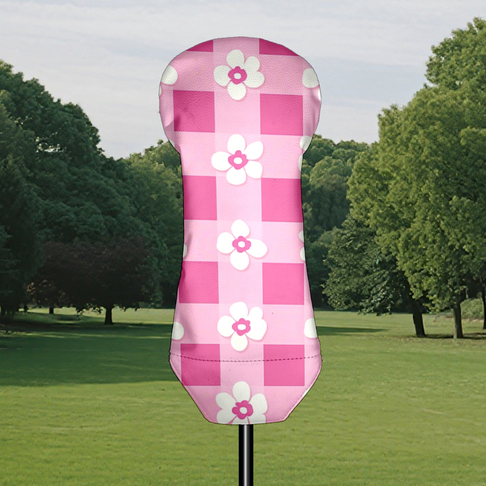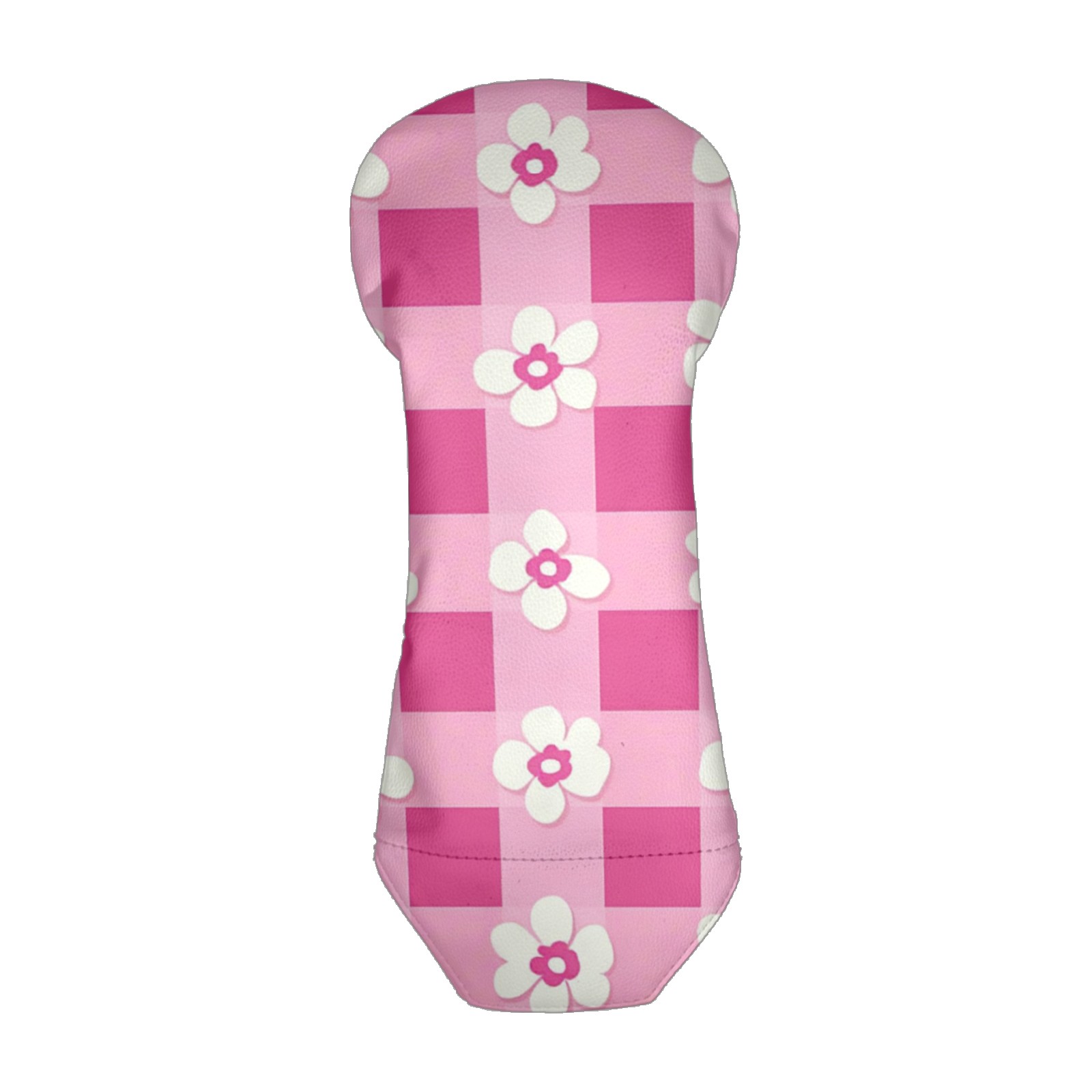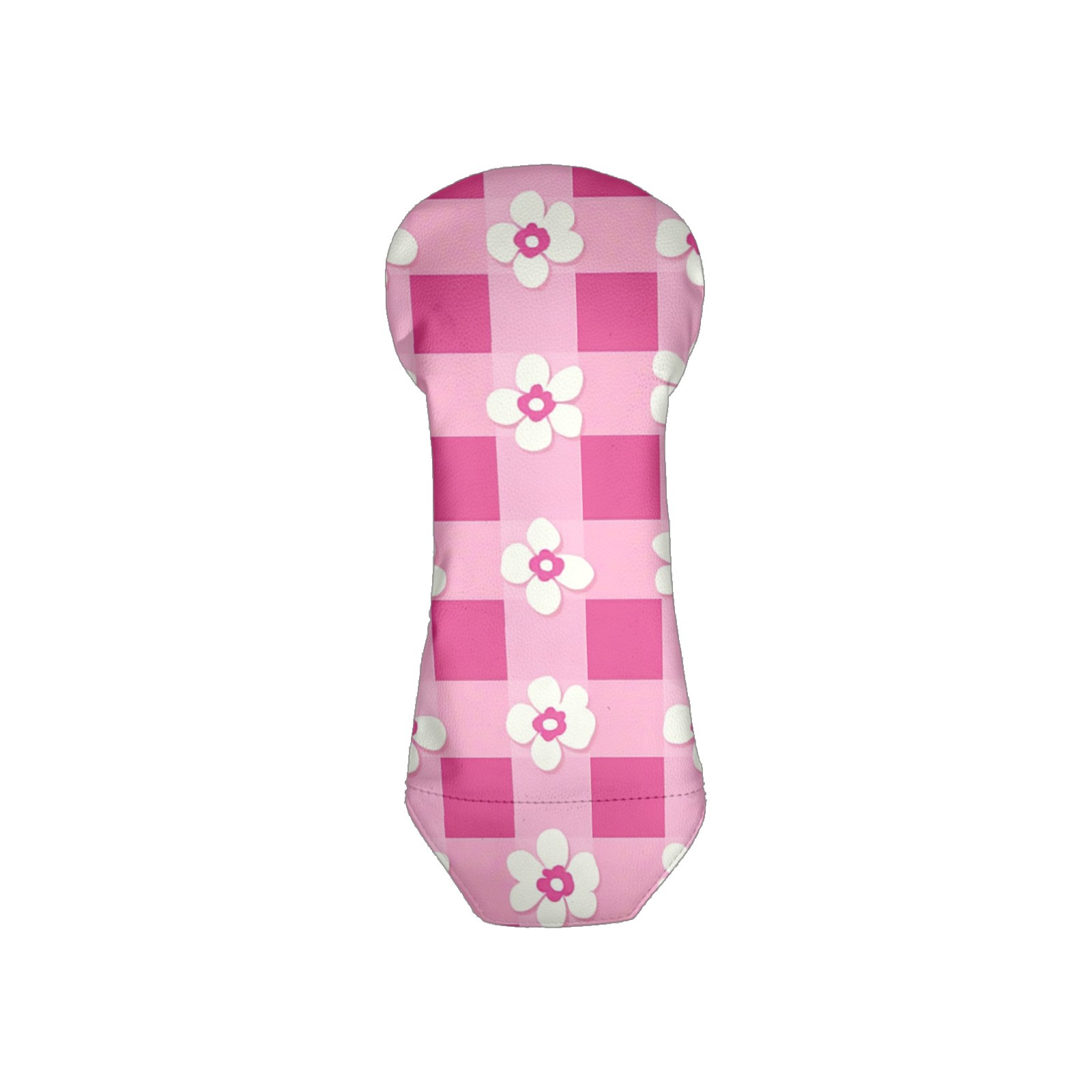 Andemie Golf Headcover Pink Gingham With Flowers Driver Cover Leather Golf Club Head Cover for Woods and Driver, Novelty Golf Gift for Men Women
