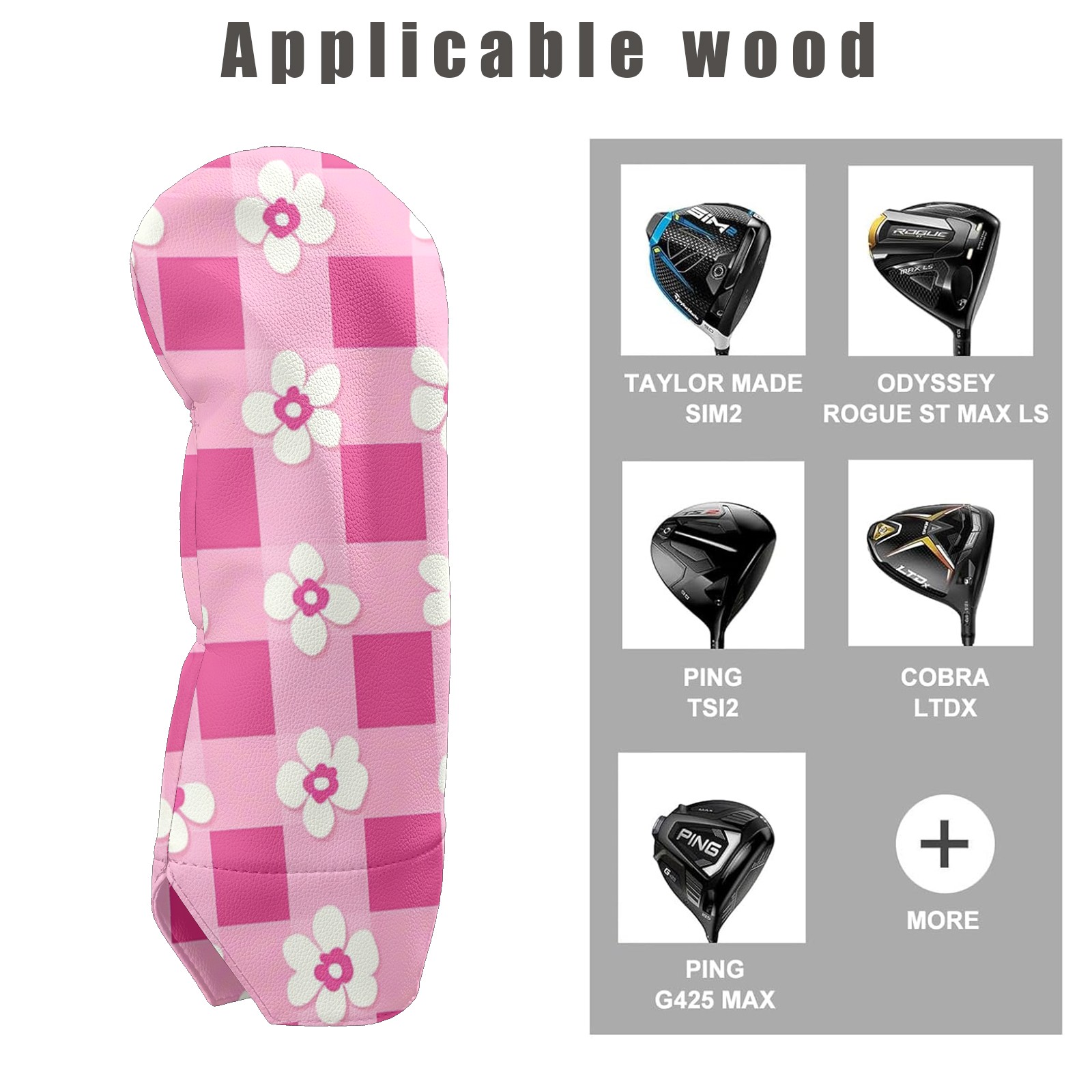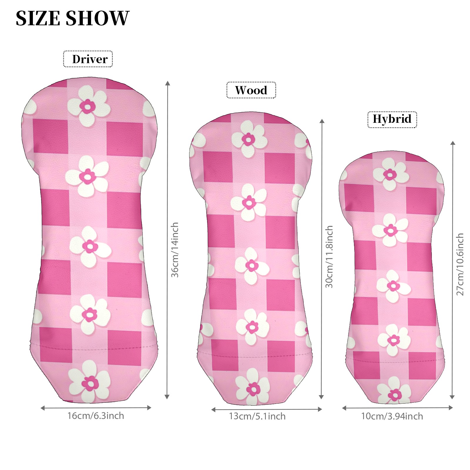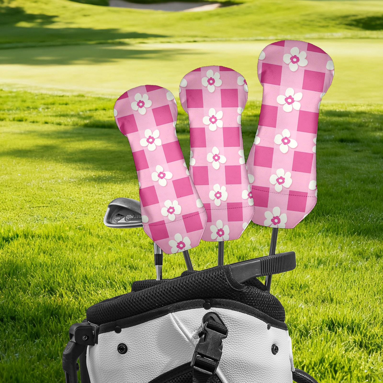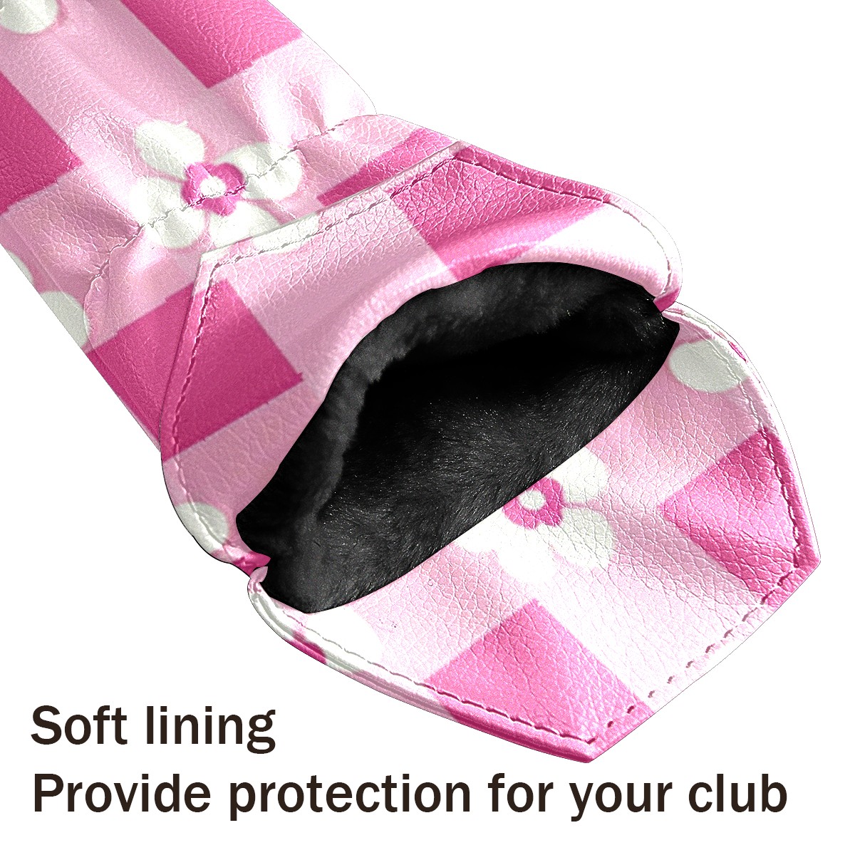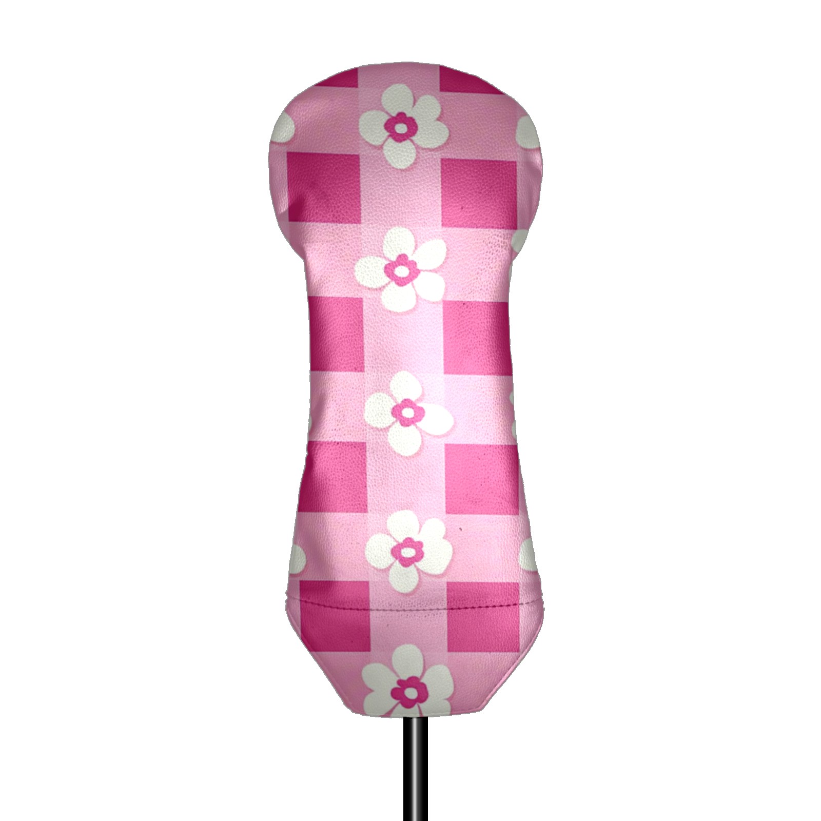 Andemie Golf Headcover Pink Gingham With Flowers Driver Cover Leather Golf Club Head Cover for Woods and Driver, Novelty Golf Gift for Men Women