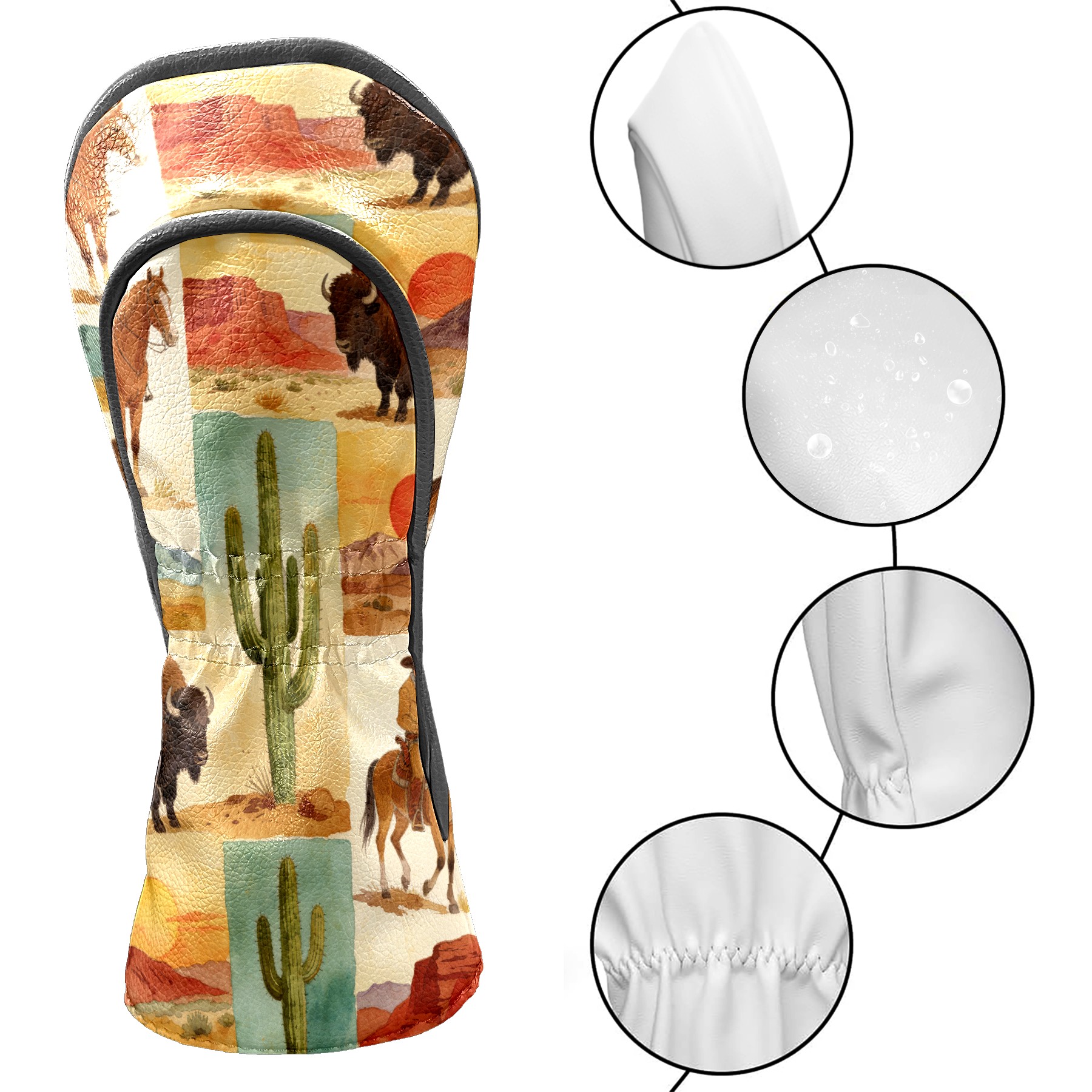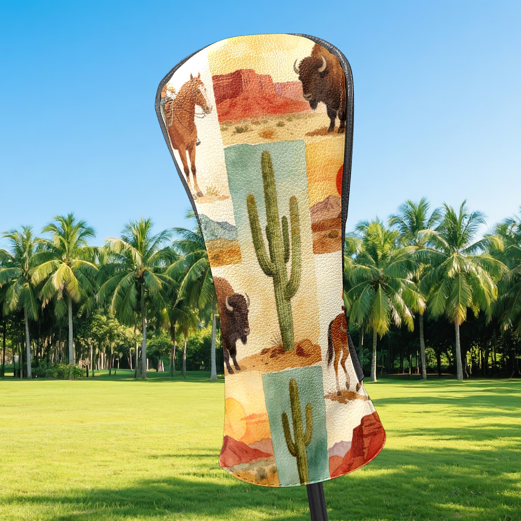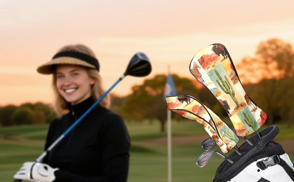 Golf Driver Head Cover Leather Driver Fairway Headcover, Premium Golf Club Covers with Plush Lining Girls Womens Mens Head Cover for Golf Clubs (Cowboy Desert)