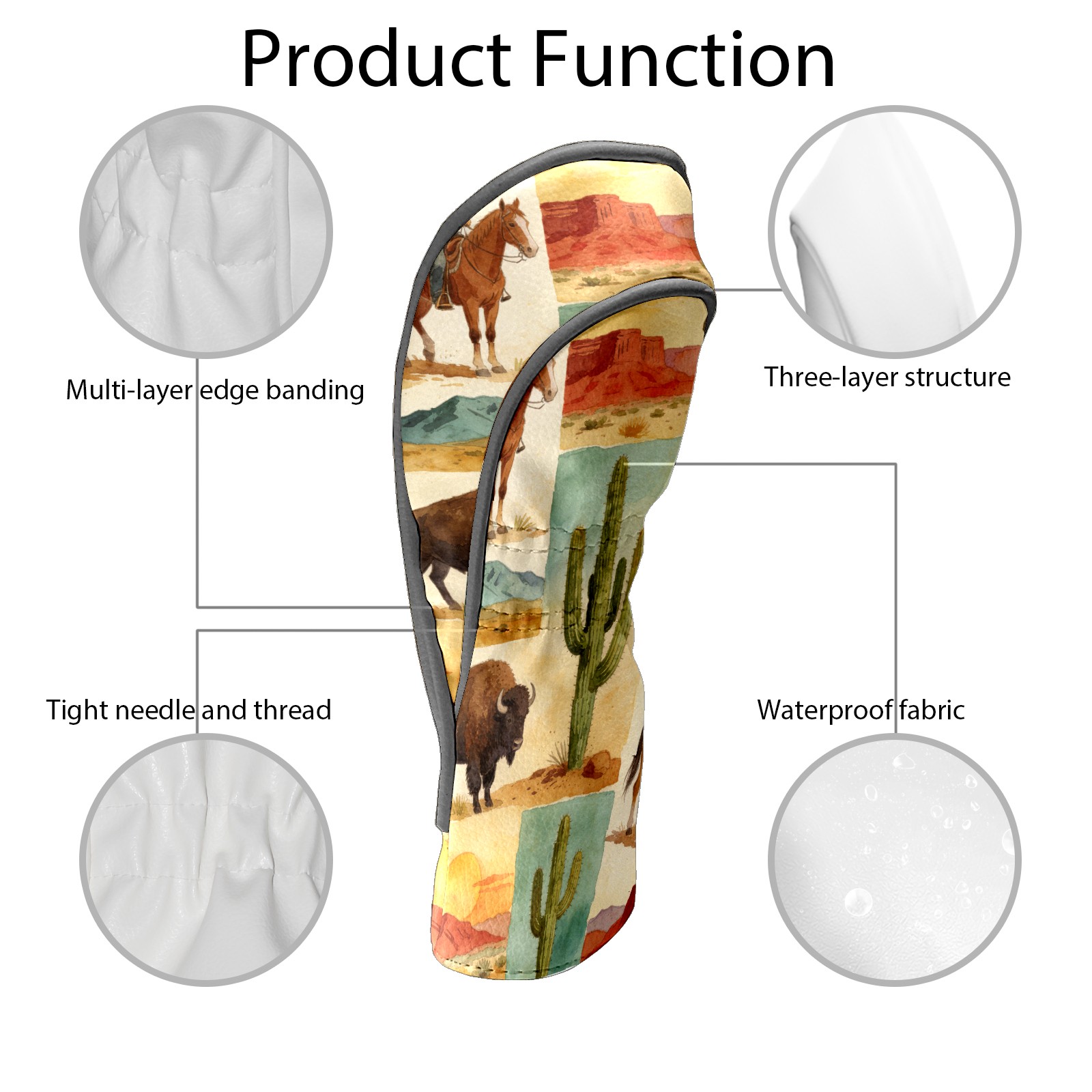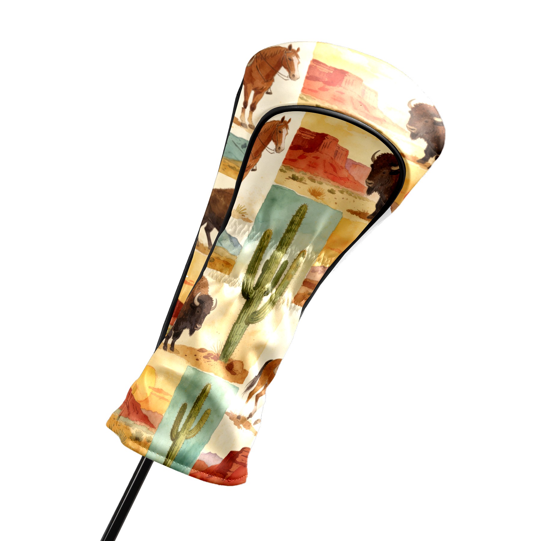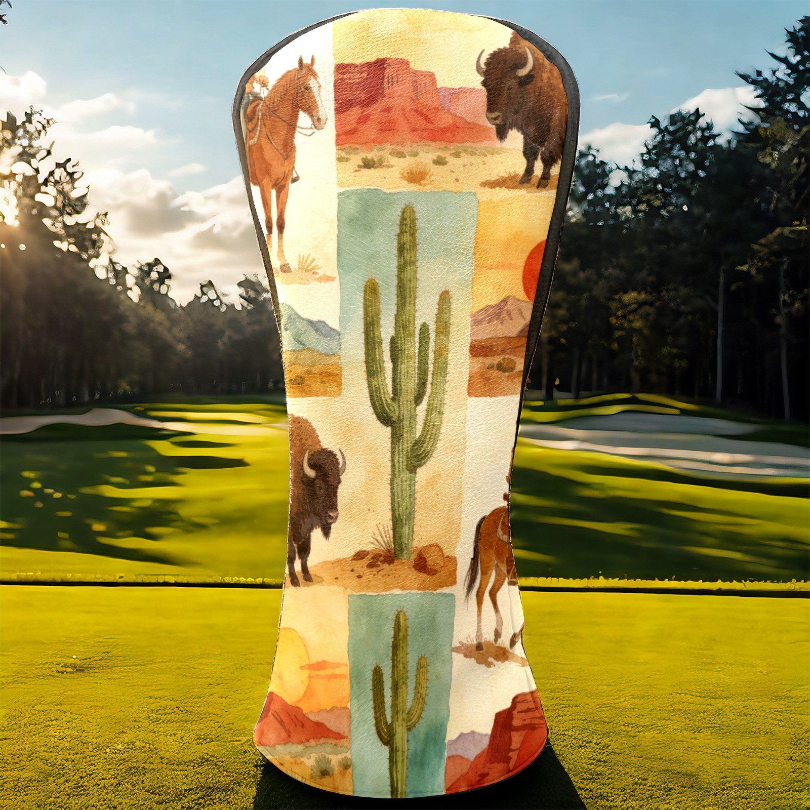 Golf Driver Head Cover Leather Driver Fairway Headcover, Premium Golf Club Covers with Plush Lining Girls Womens Mens Head Cover for Golf Clubs (Cowboy Desert)
