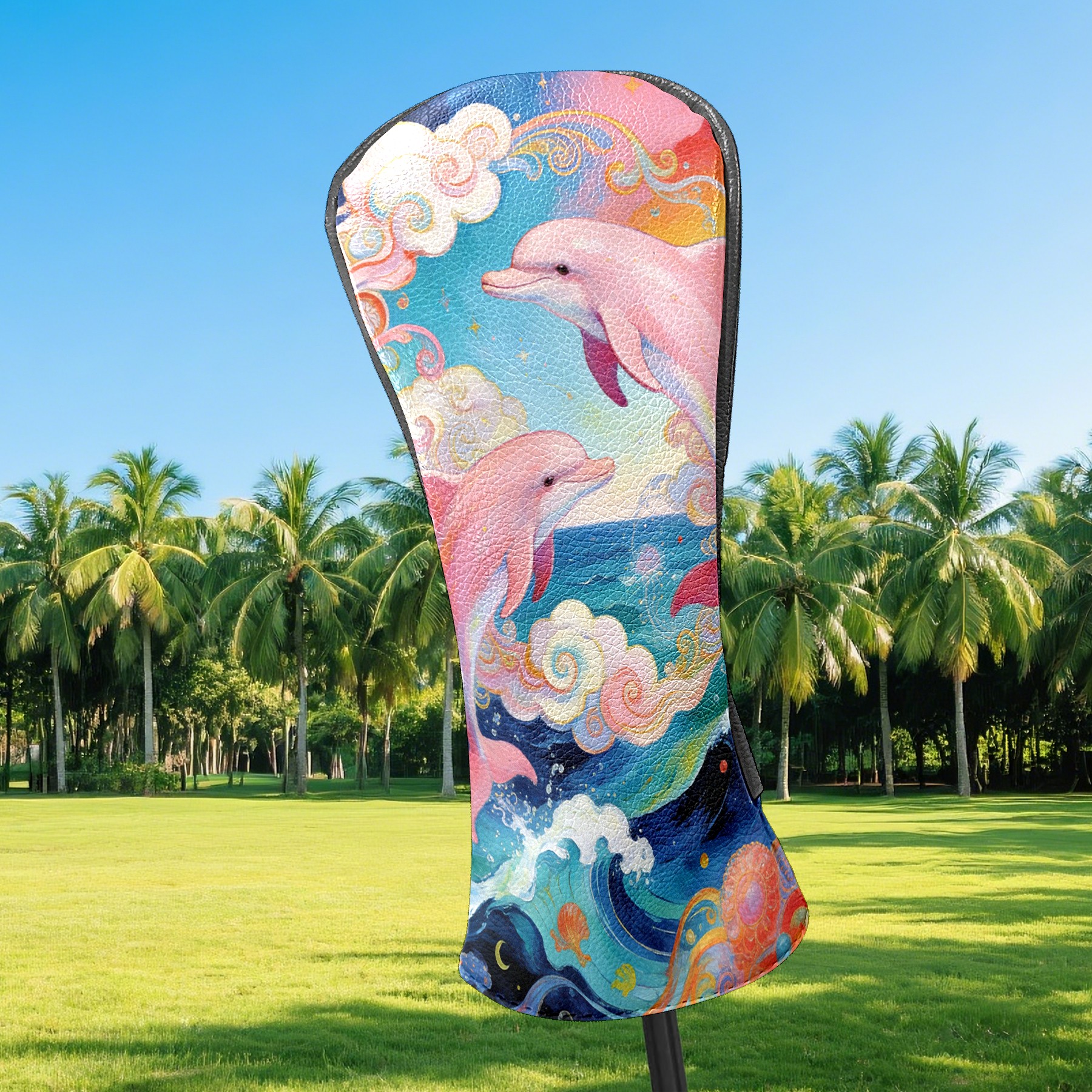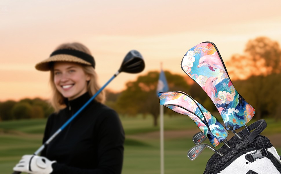 Golf Driver Head Cover Leather Driver Fairway Headcover, Premium Golf Club Covers with Plush Lining Girls Womens Mens Head Cover for Golf Clubs (图案设计 英文2 (1))