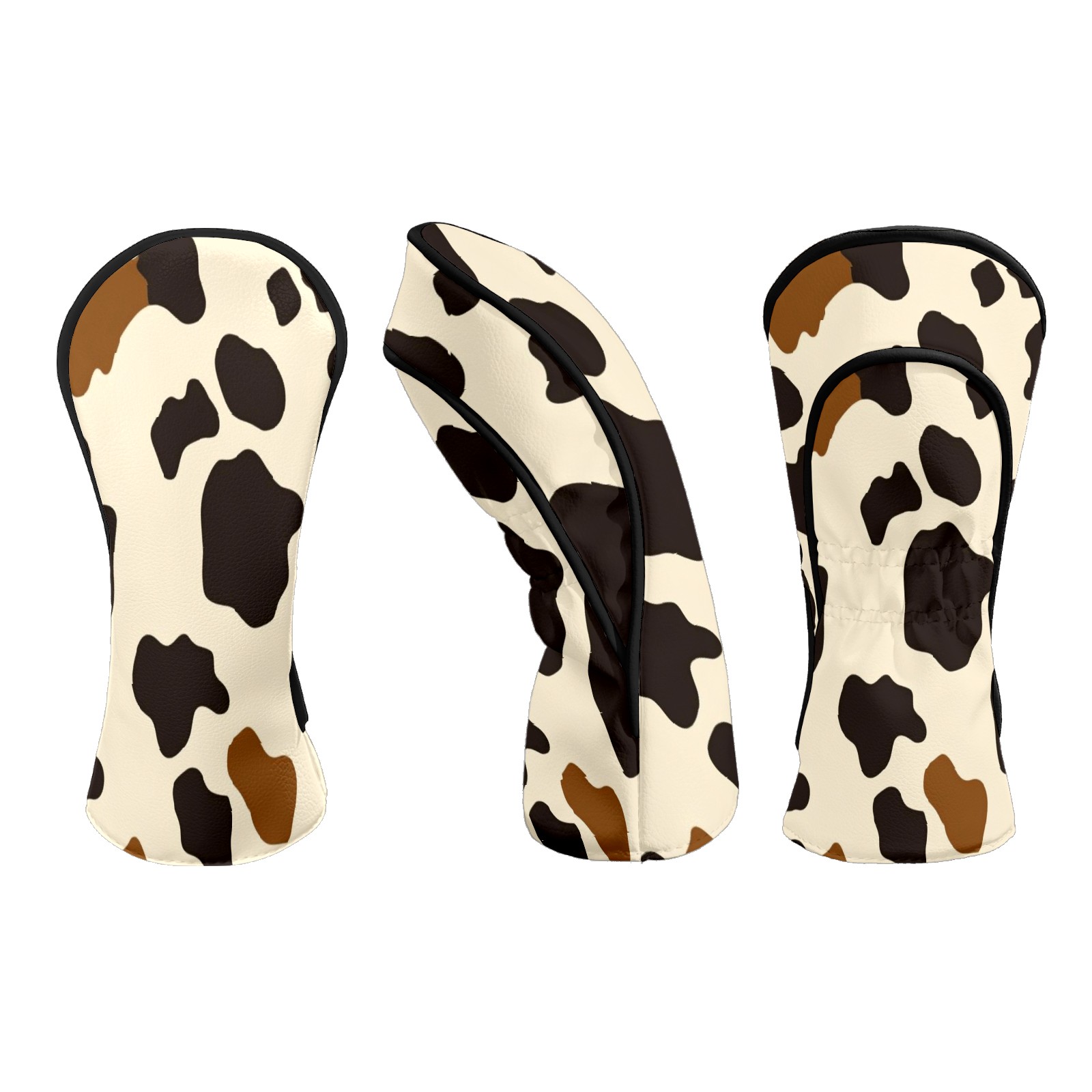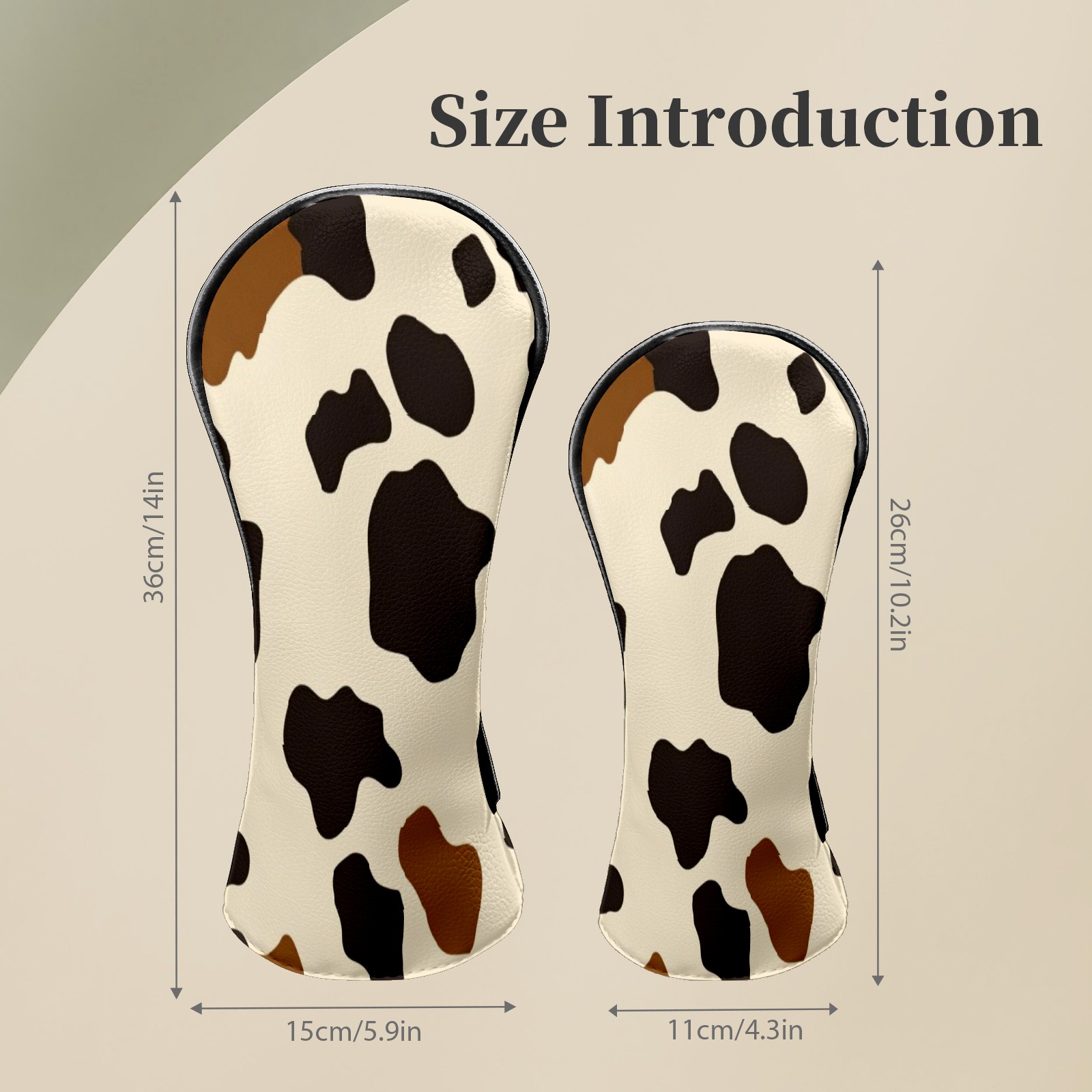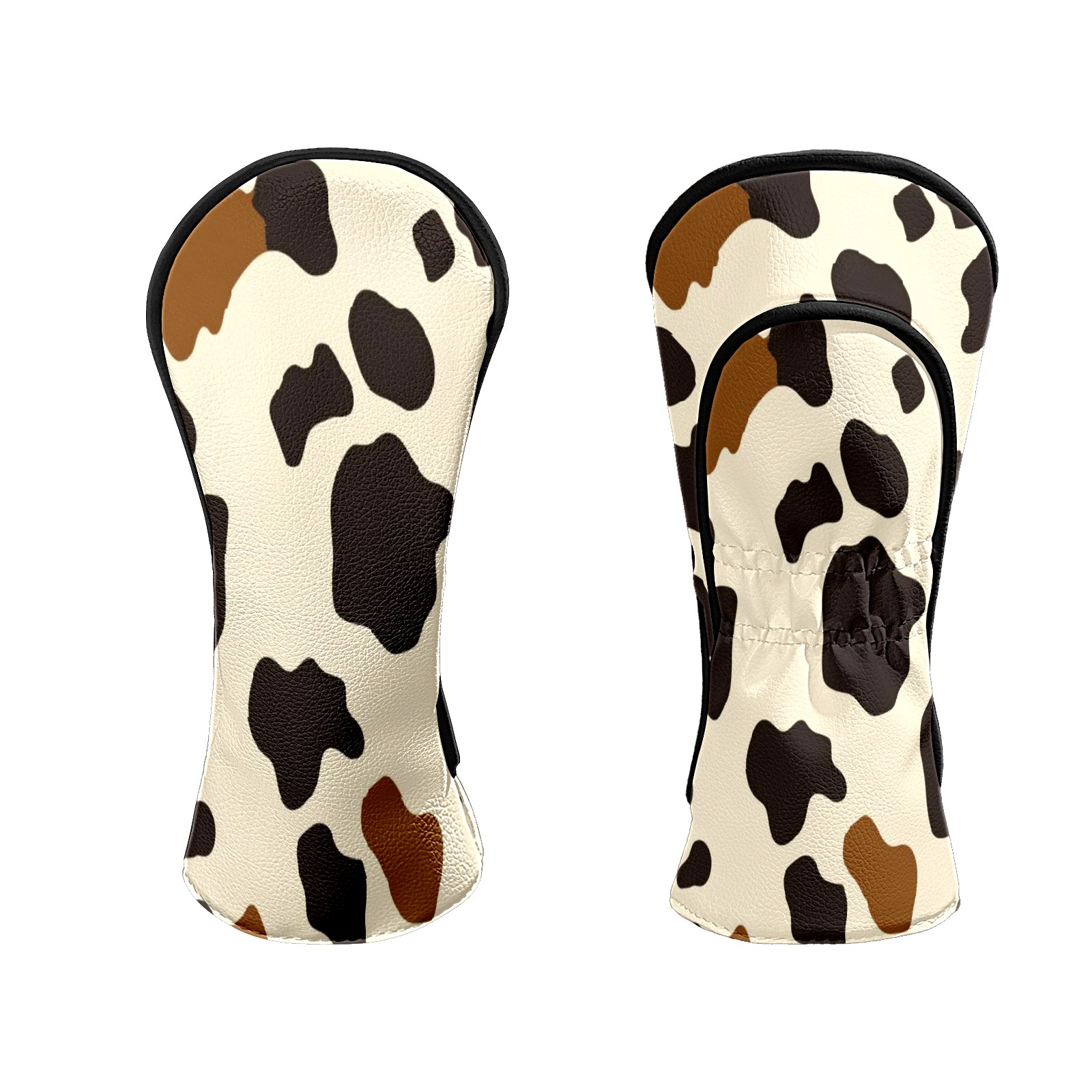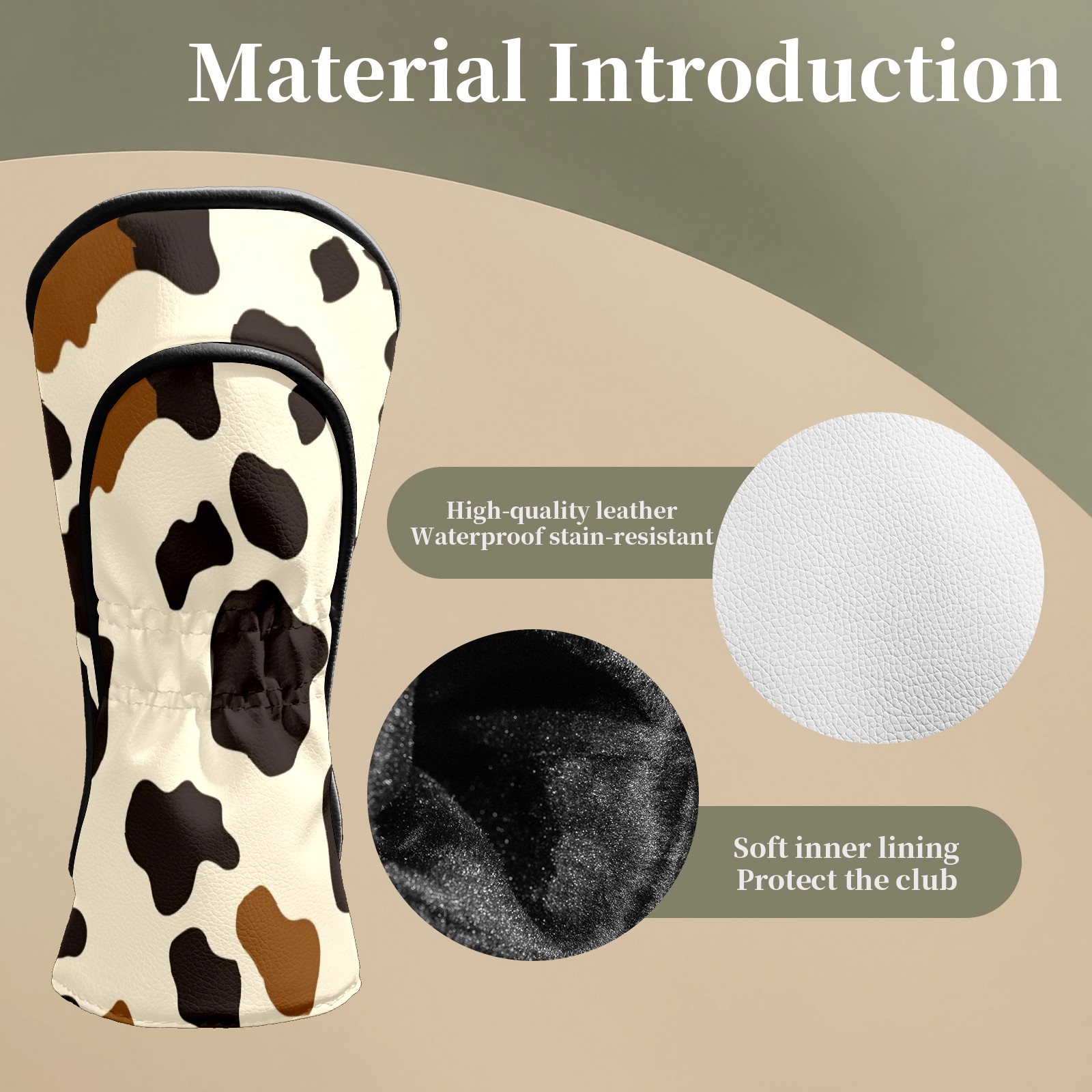 Golf Club Head Covers - Premium Leather Driver Fairway Wood Headcover, Soft Plush Lining Golf Headcover Fits Driver Hybrid for Men & Women Golfers (Cow Print Pattern)