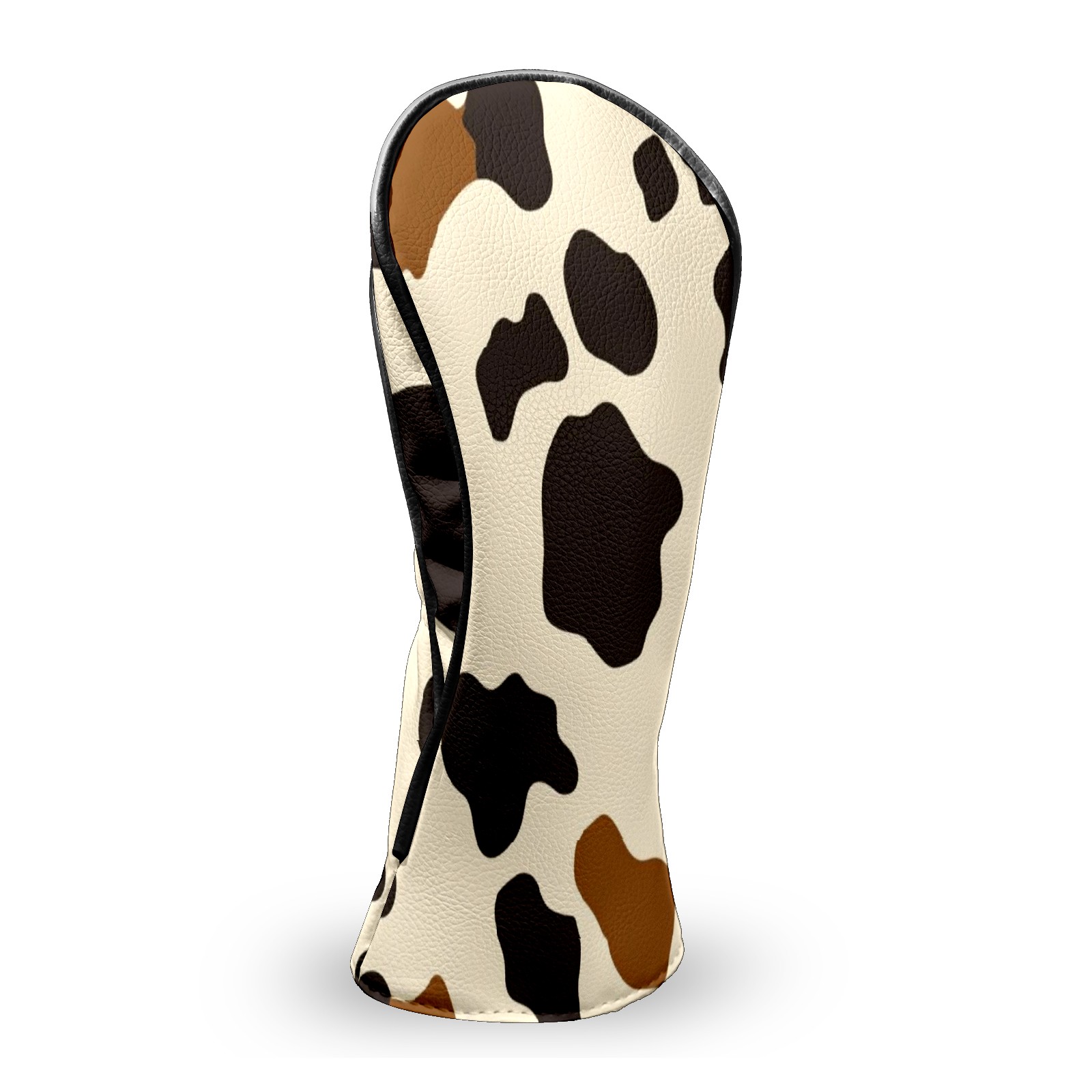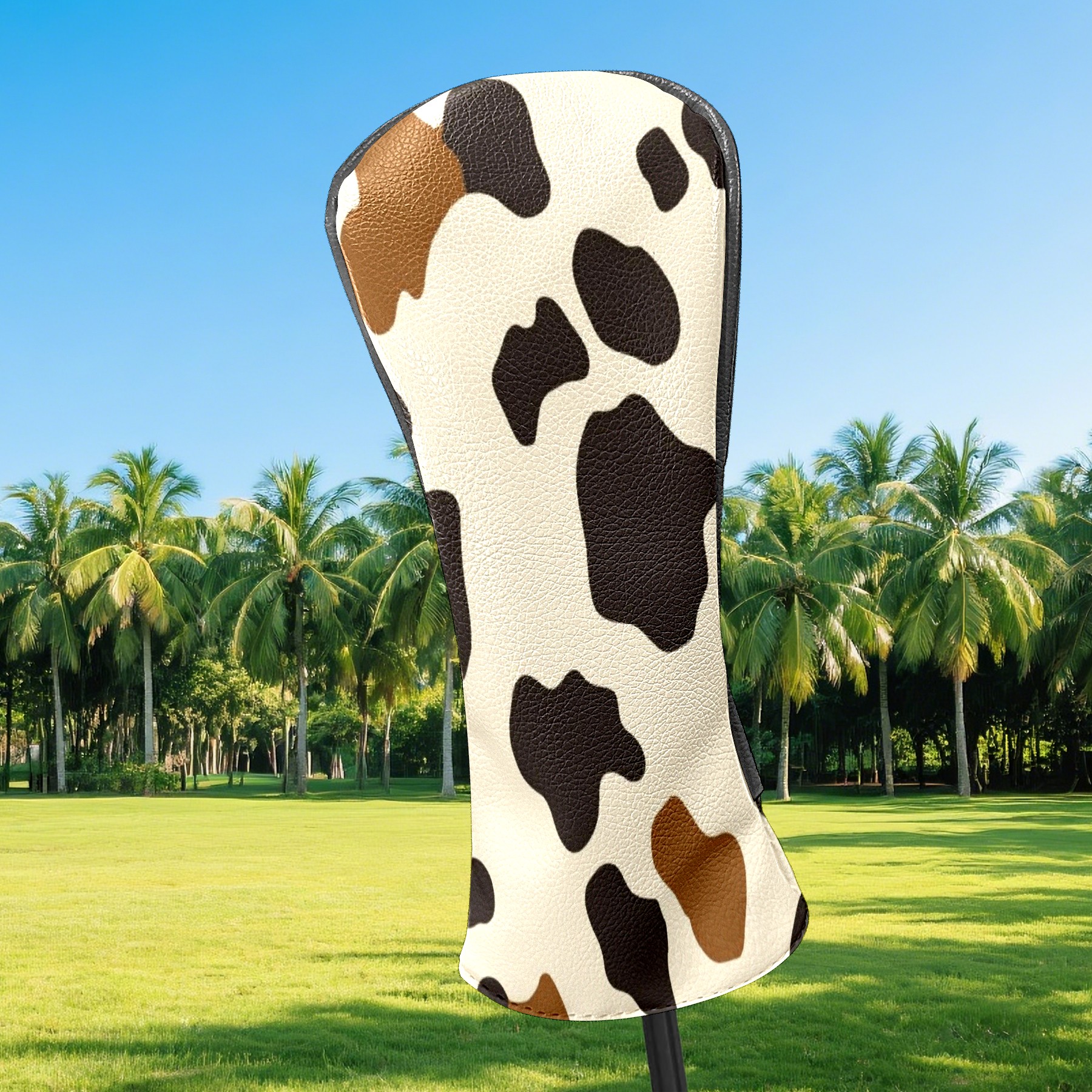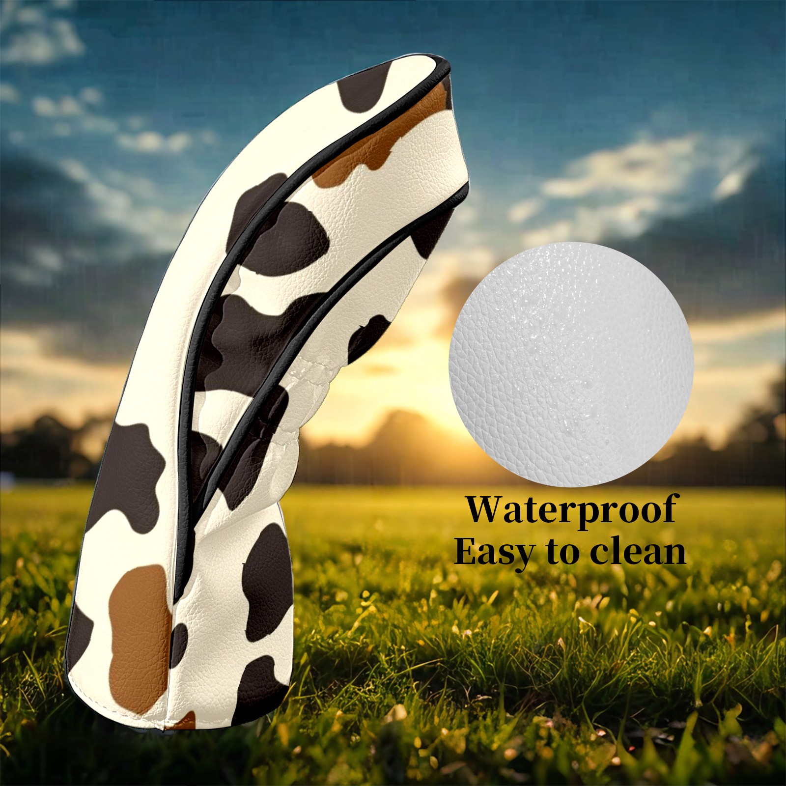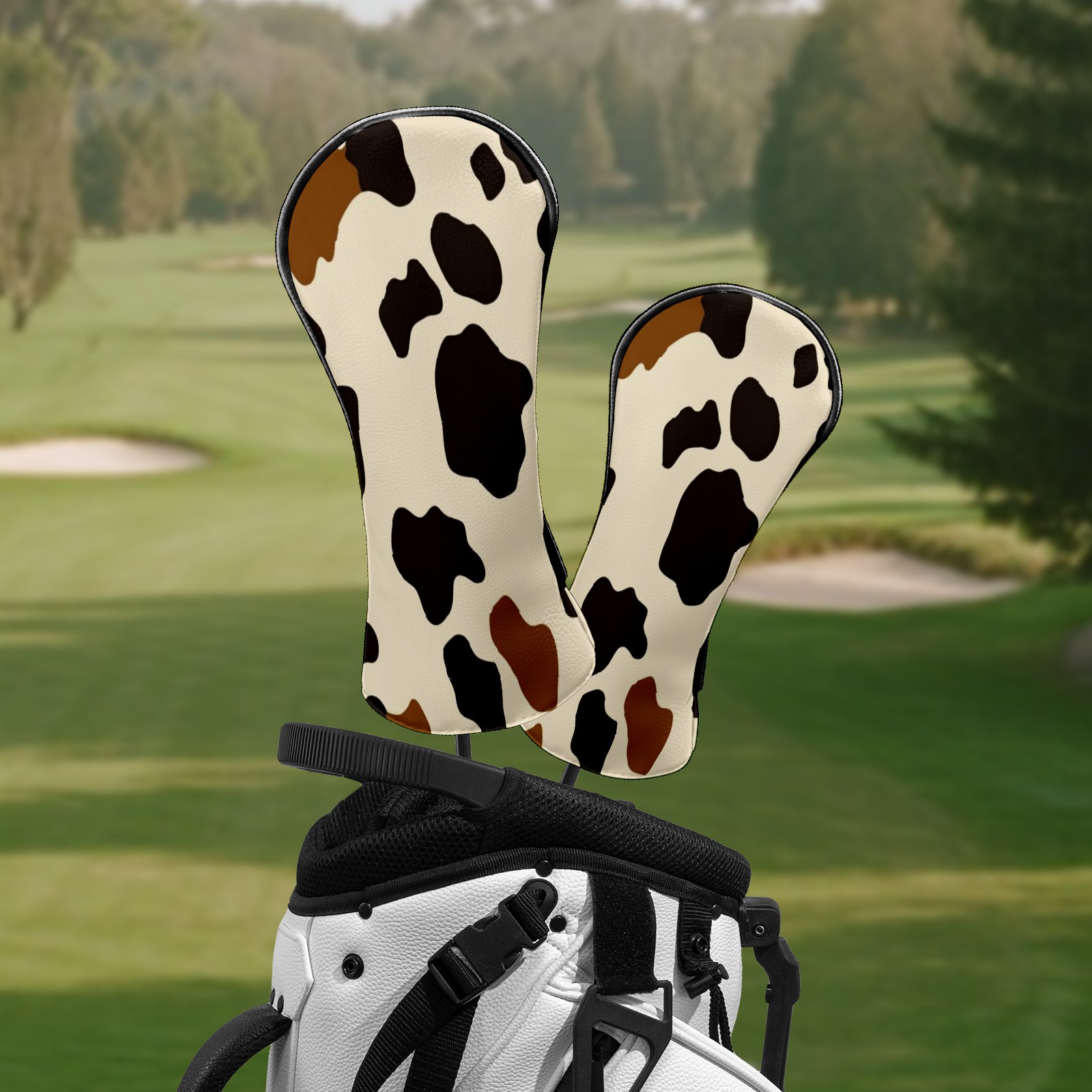 Golf Club Head Covers - Premium Leather Driver Fairway Wood Headcover, Soft Plush Lining Golf Headcover Fits Driver Hybrid for Men & Women Golfers (Cow Print Pattern)