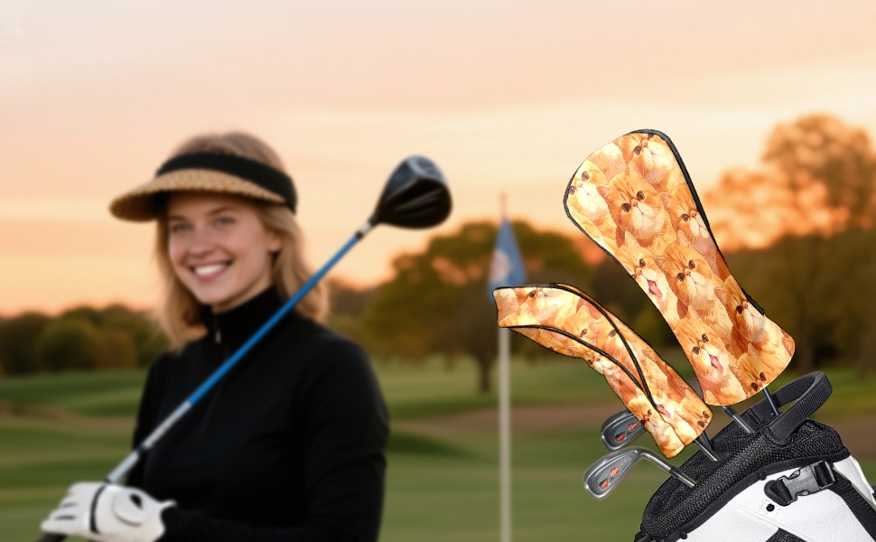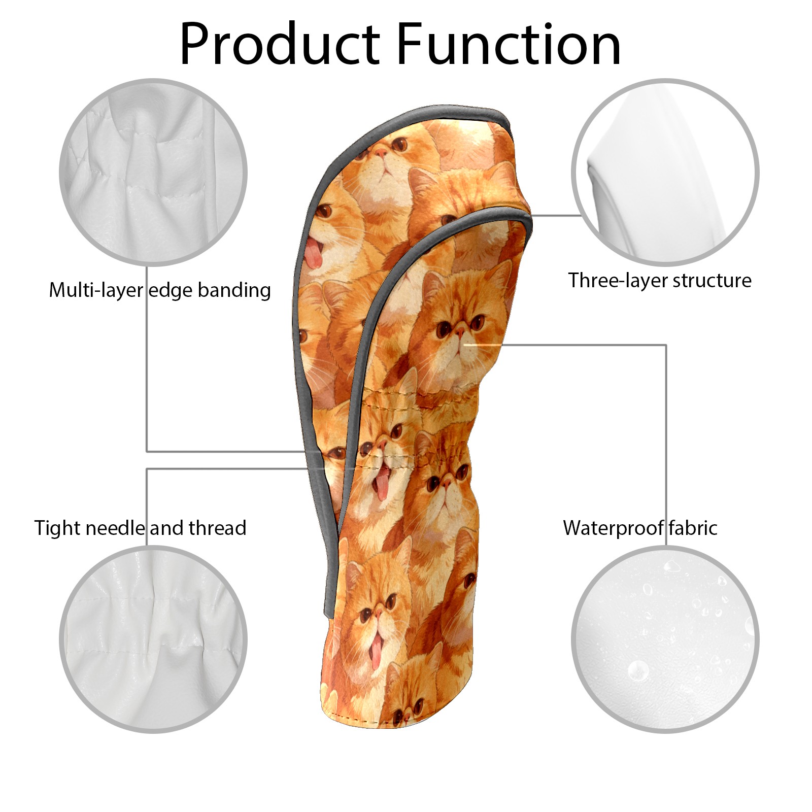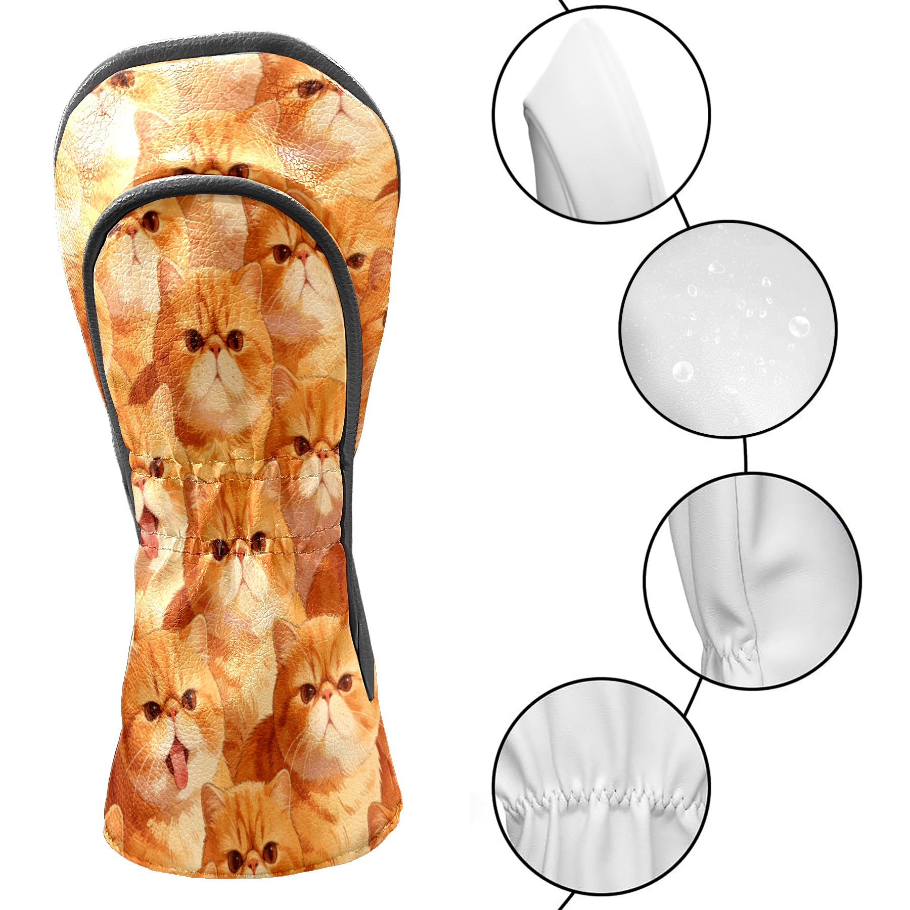 Golf Club Covers Cute Cats Driver Headcover, Leather Golf Club Head Covers for Driver Fairway Woods Waterproof Golf Headcovers with Anti-Scratch Lining for Men Women