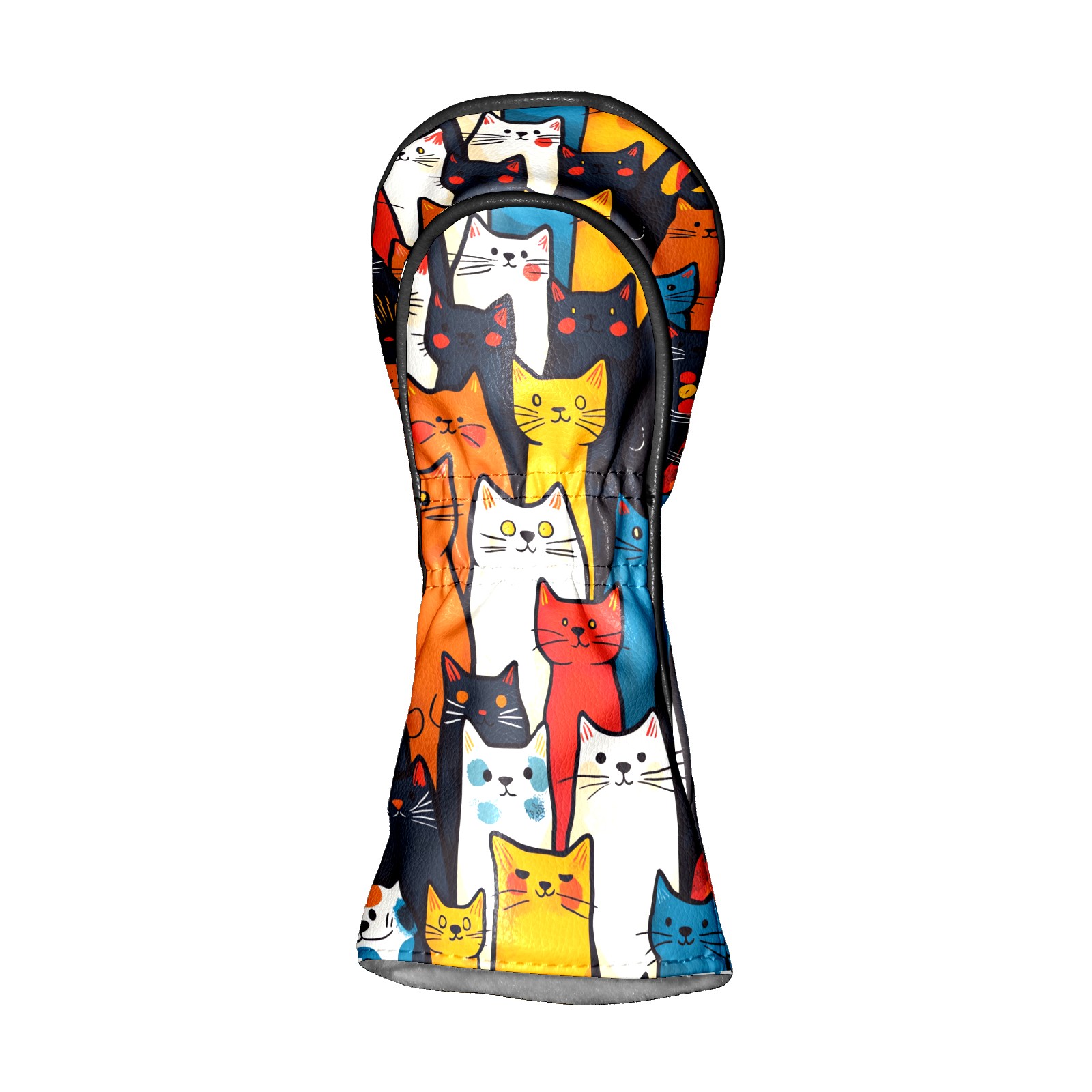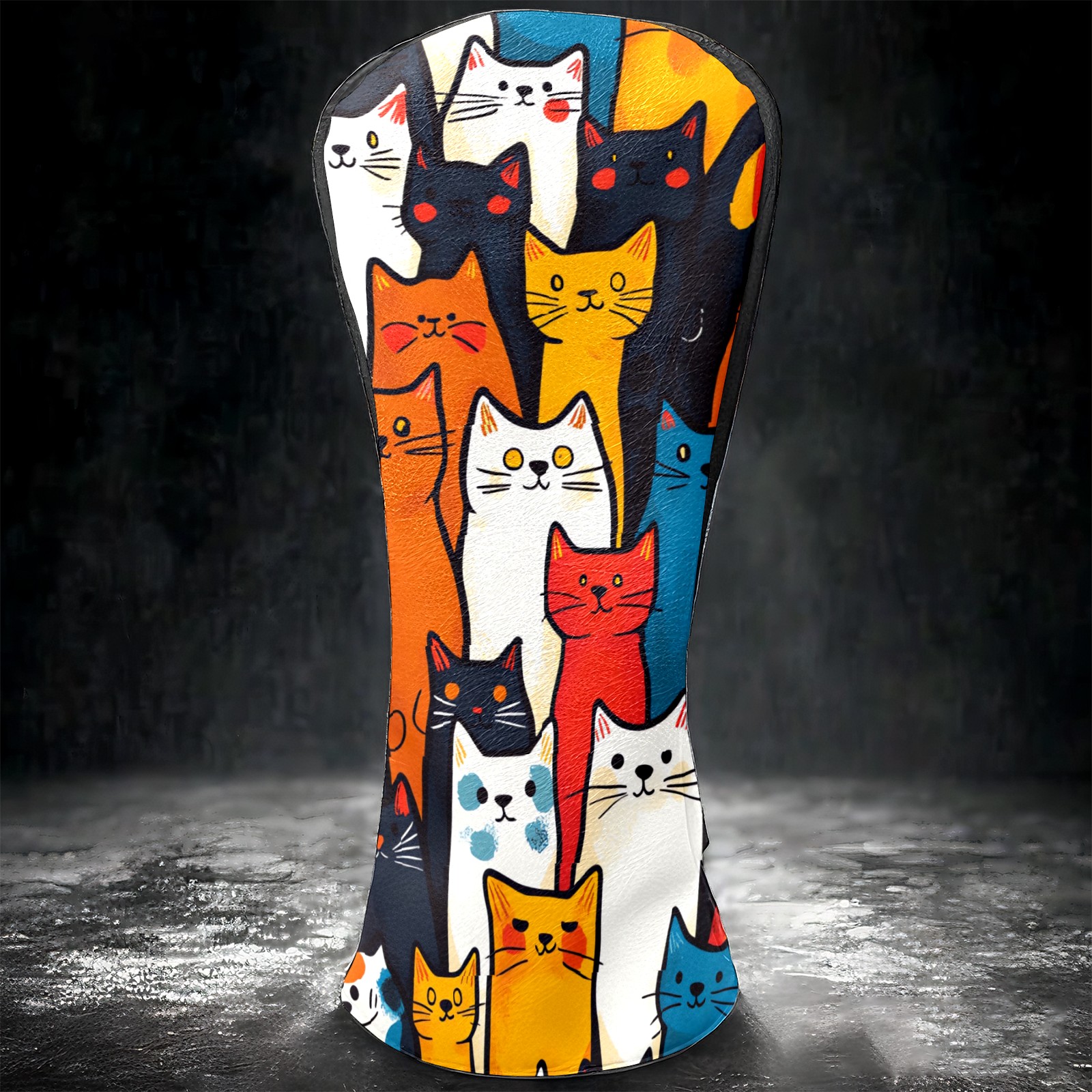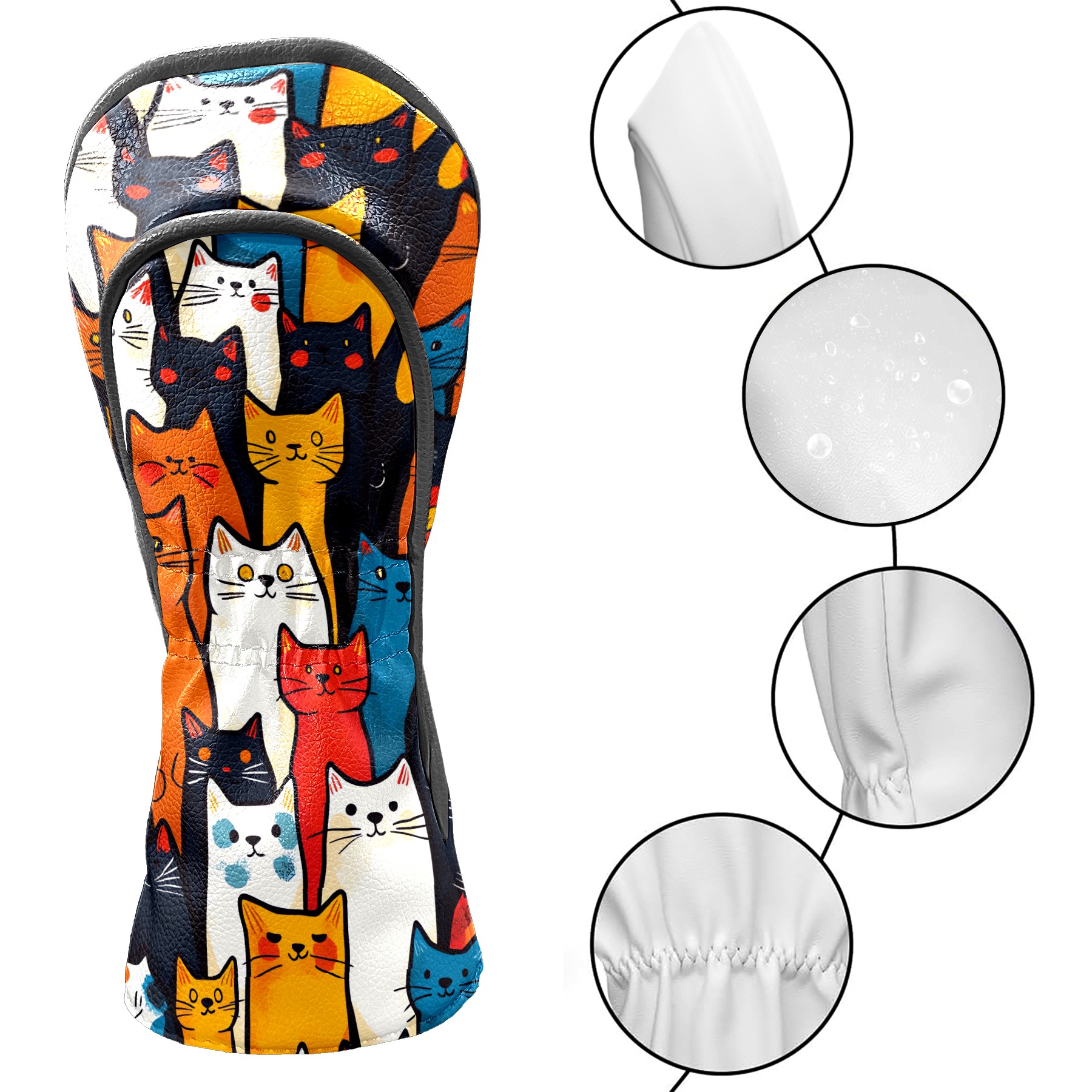 Golf Club Covers Simple Line Cat (1) Driver Headcover, Leather Golf Club Head Covers for Driver Fairway Woods Waterproof Golf Headcovers with Anti-Scratch Lining for Men Women