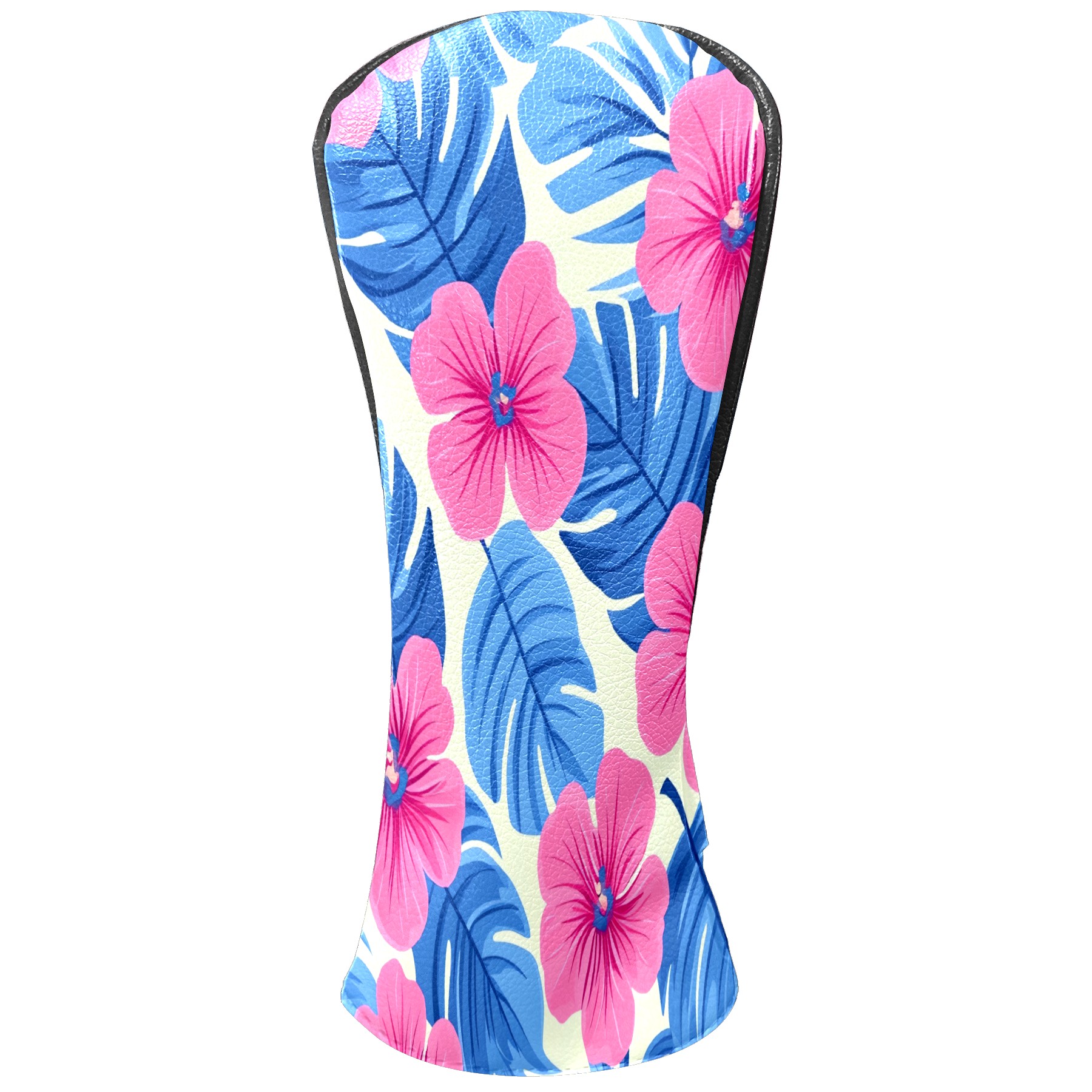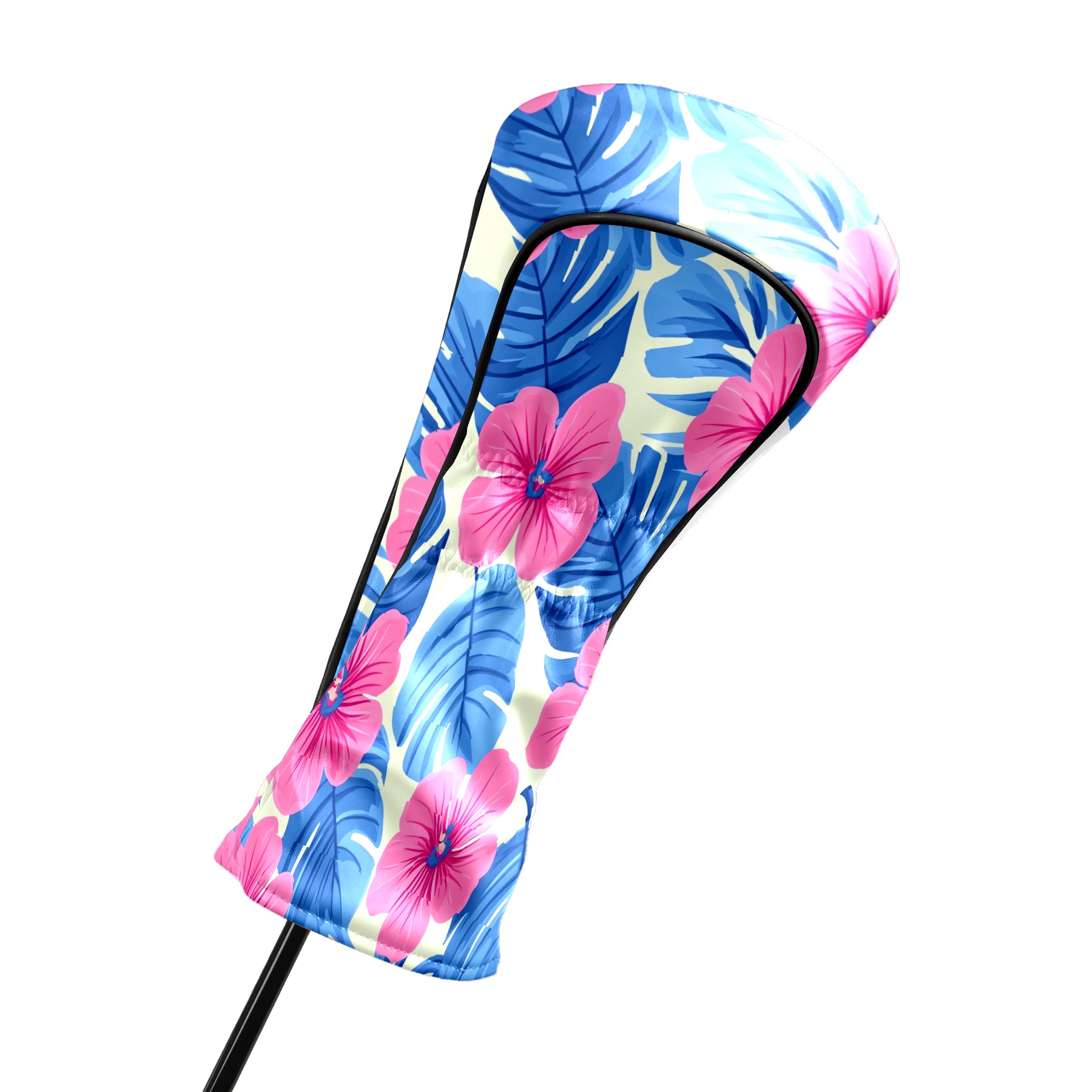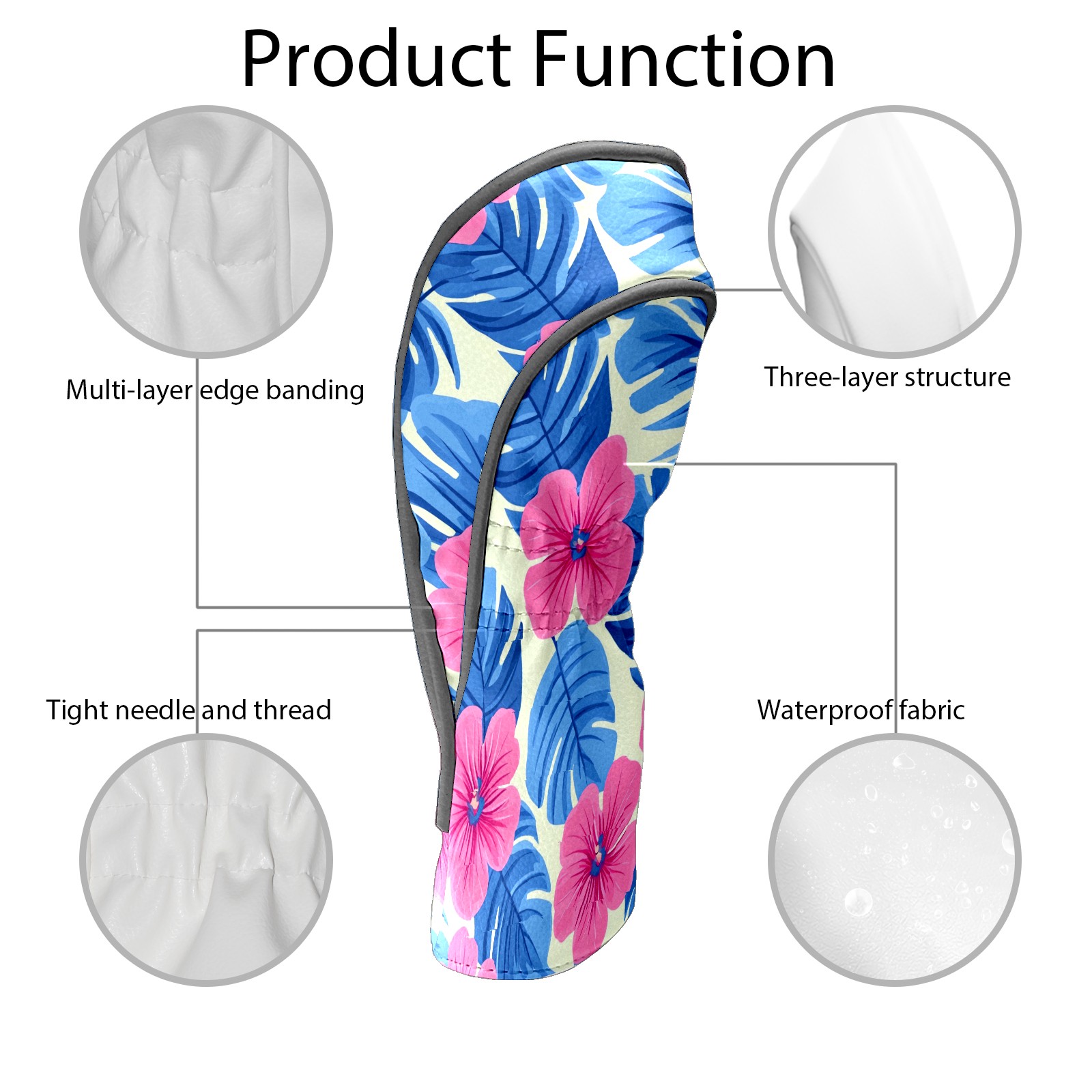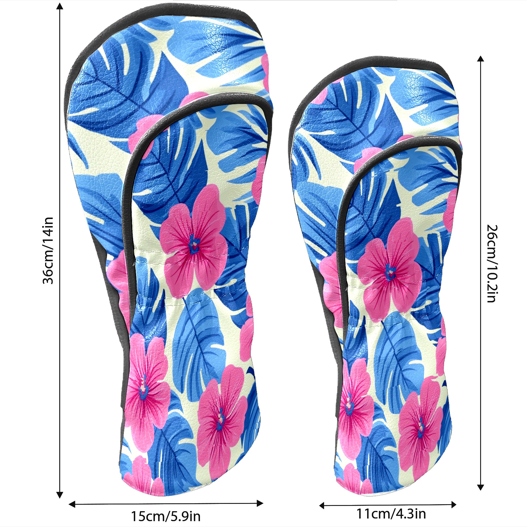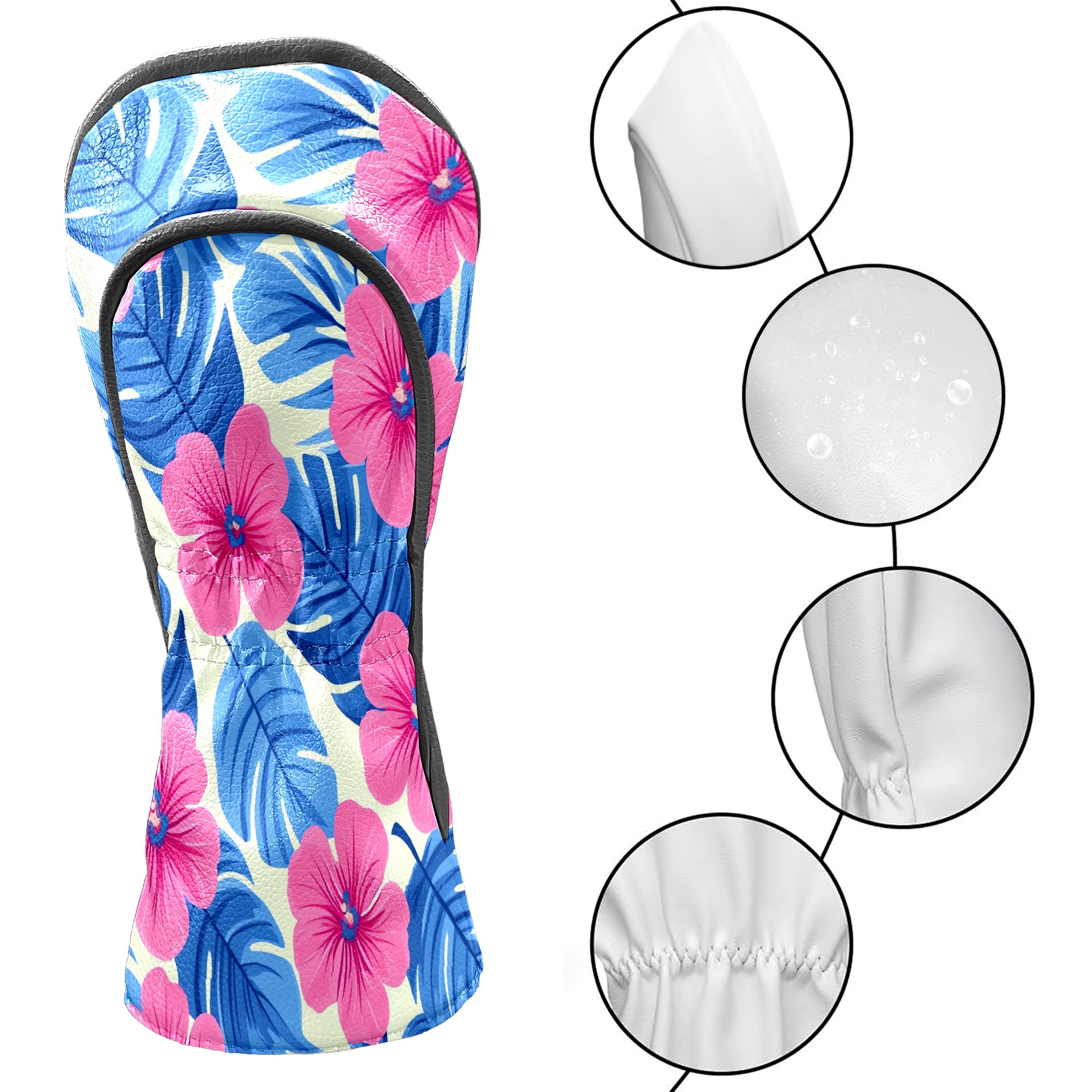 Golf Club Covers Premium Leather Driver Headcover, Golf Head Covers for Woods and Driver Waterproof Golf Headcovers with Anti-Scratch Lining for Women Men (Pink Flowers And Blue Leaves (1))