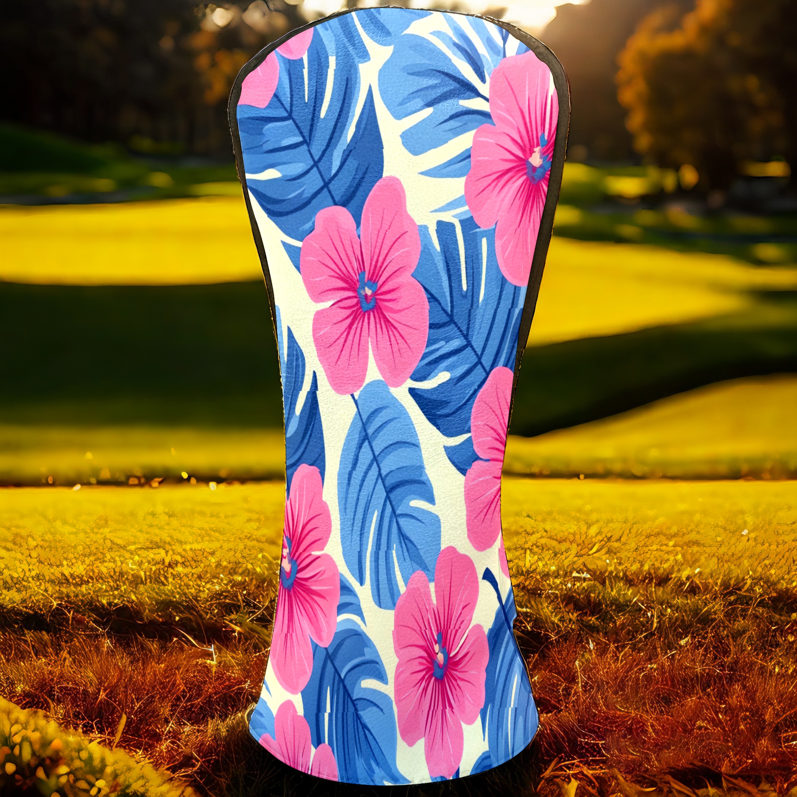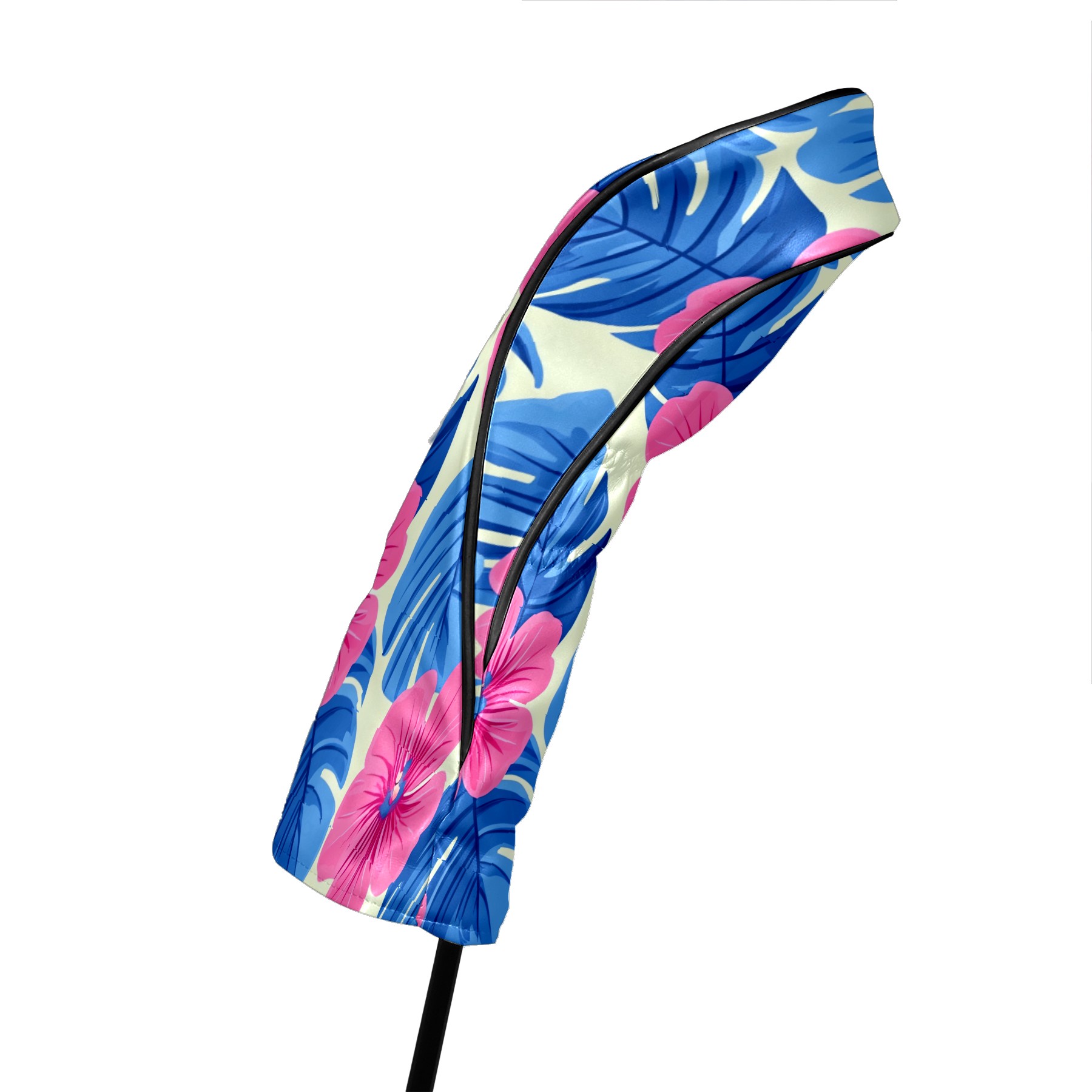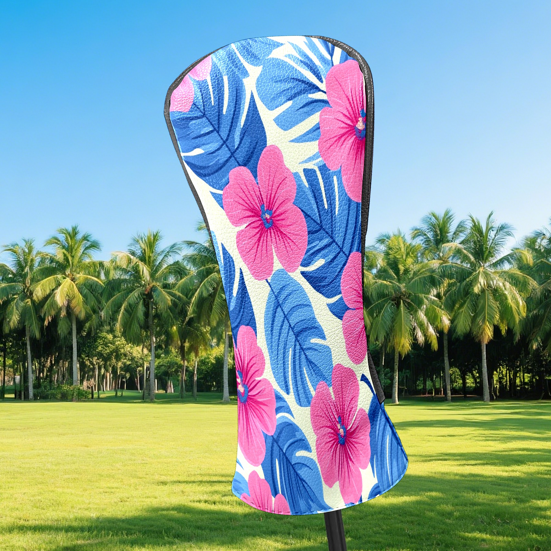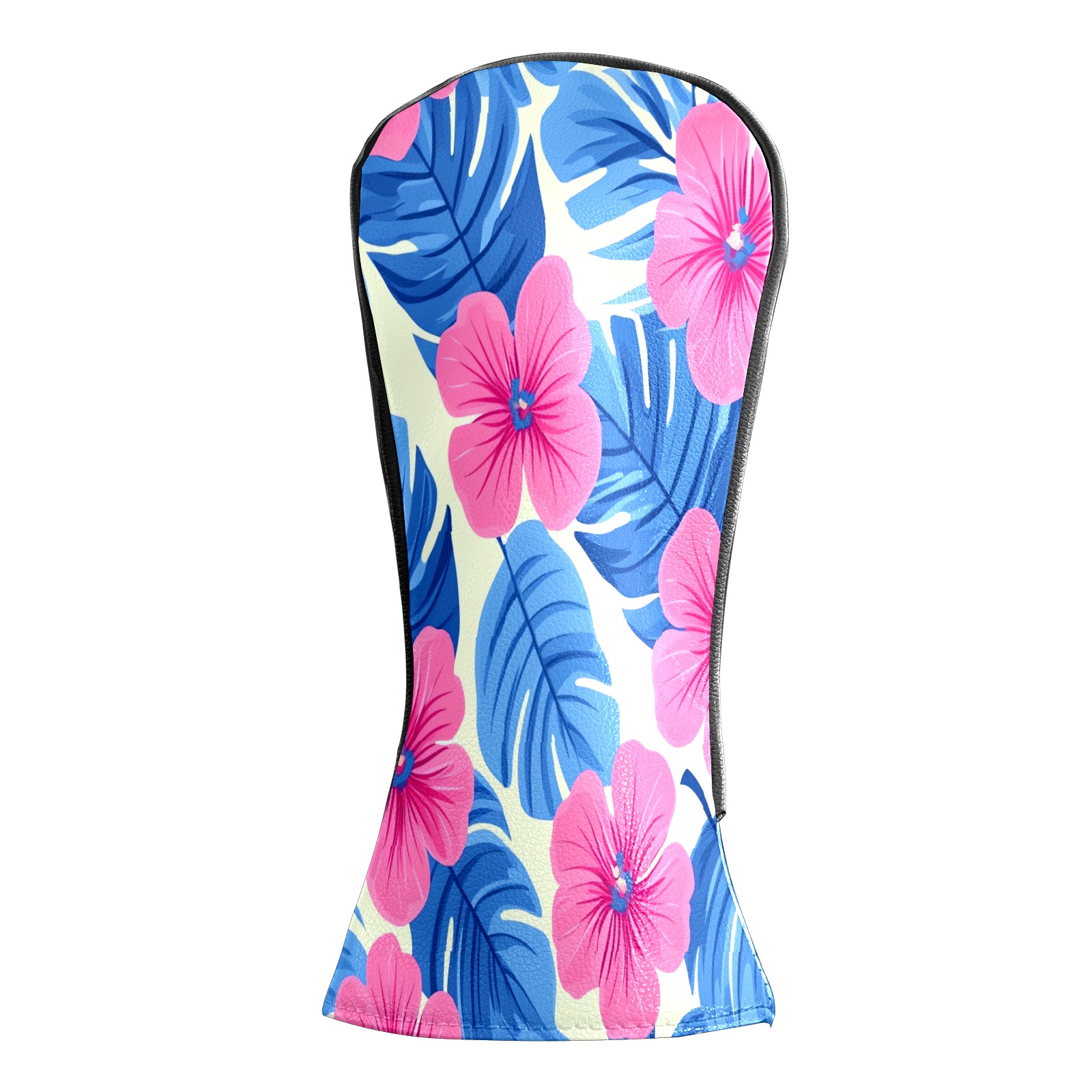 Golf Club Covers Premium Leather Driver Headcover, Golf Head Covers for Woods and Driver Waterproof Golf Headcovers with Anti-Scratch Lining for Women Men (Pink Flowers And Blue Leaves (1))