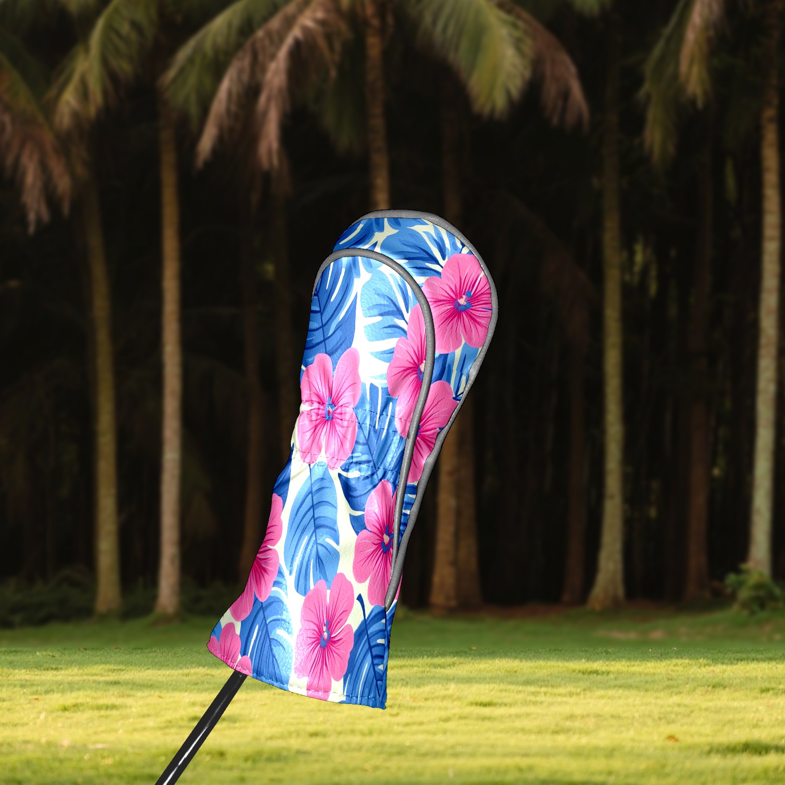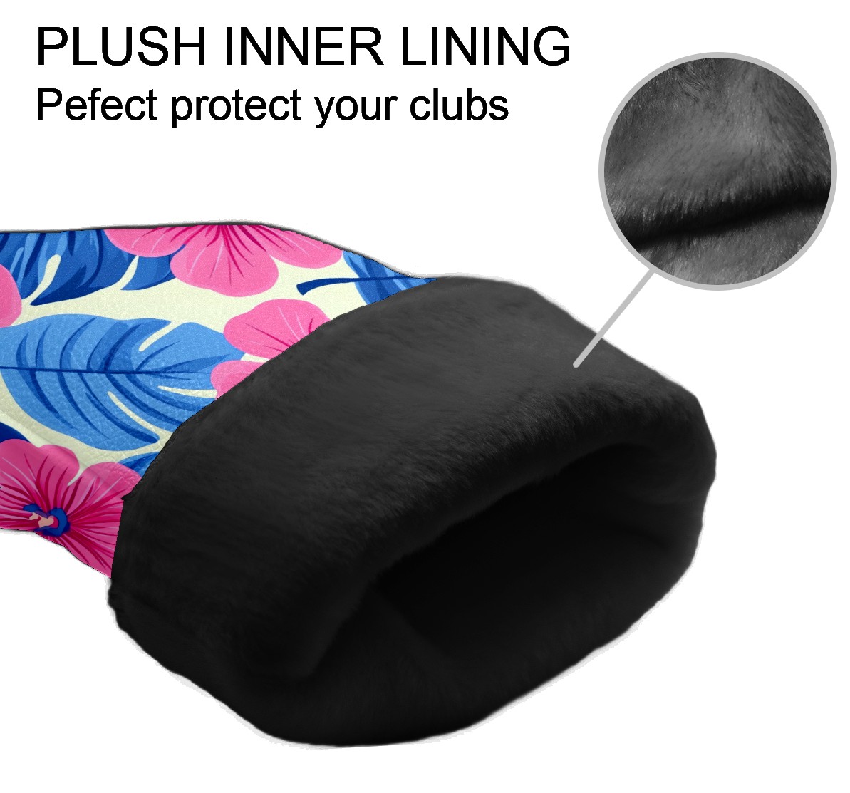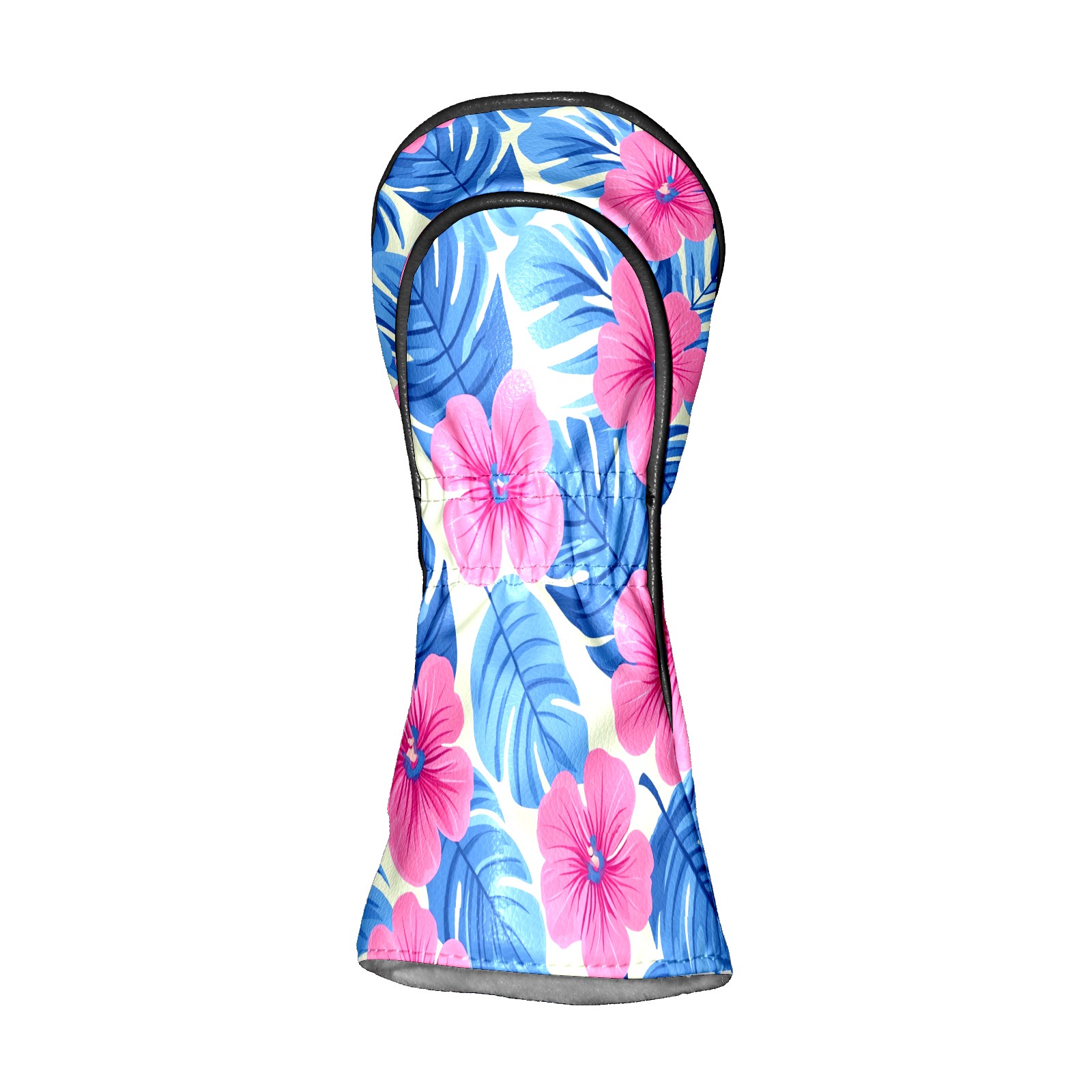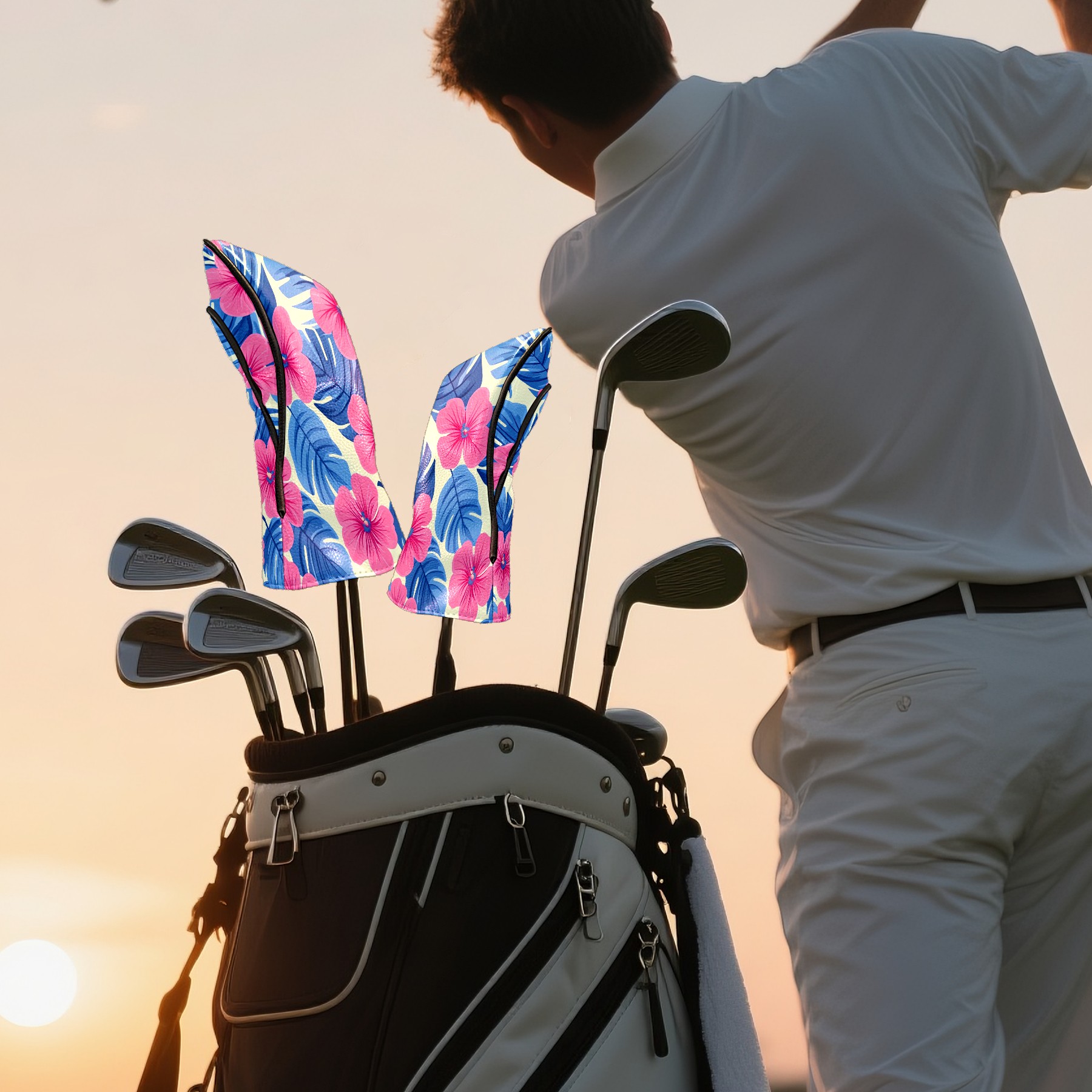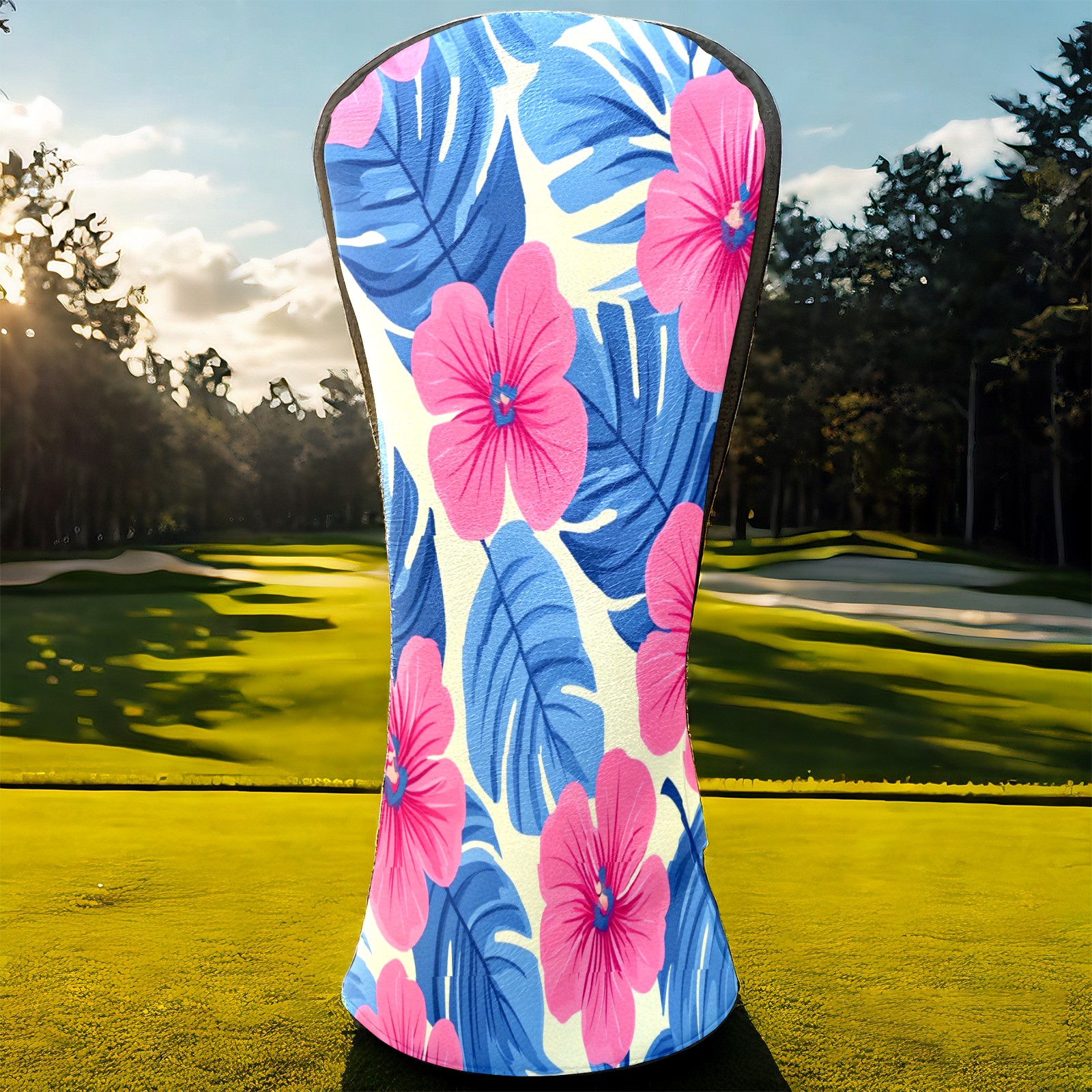 Golf Club Covers Premium Leather Driver Headcover, Golf Head Covers for Woods and Driver Waterproof Golf Headcovers with Anti-Scratch Lining for Women Men (Pink Flowers And Blue Leaves (1))