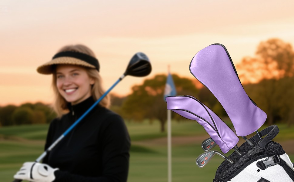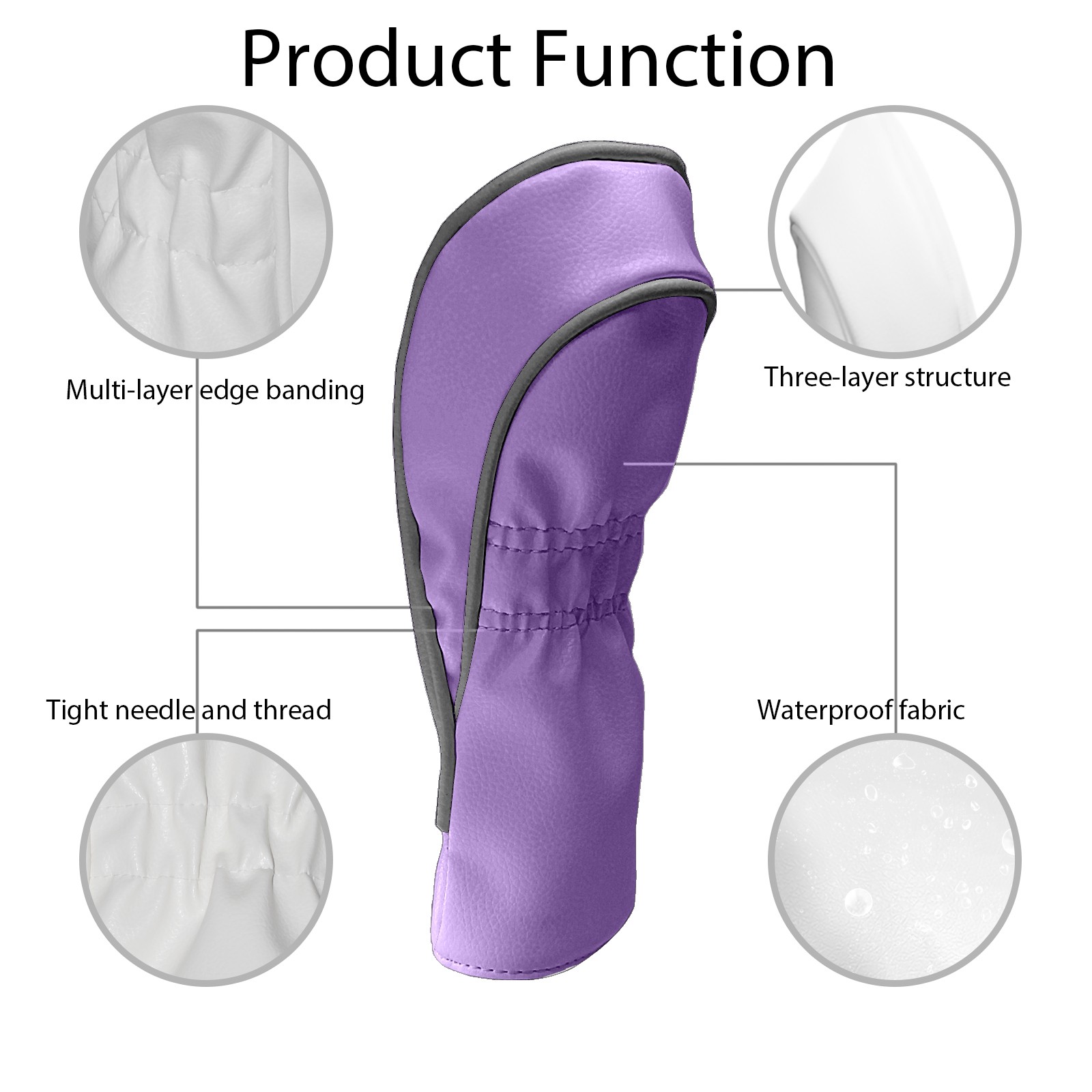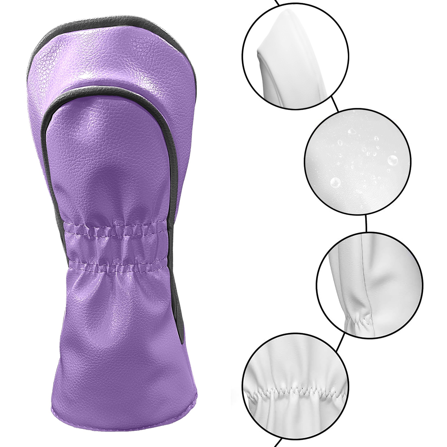 Golf Head Covers Leather Driver Head Cover, Premium Golf Club Covers with Anti-Scratch Lining for Women Men 1/3/5 Wood Cover for Golf Clubs (Lavender Purple Pure Color)