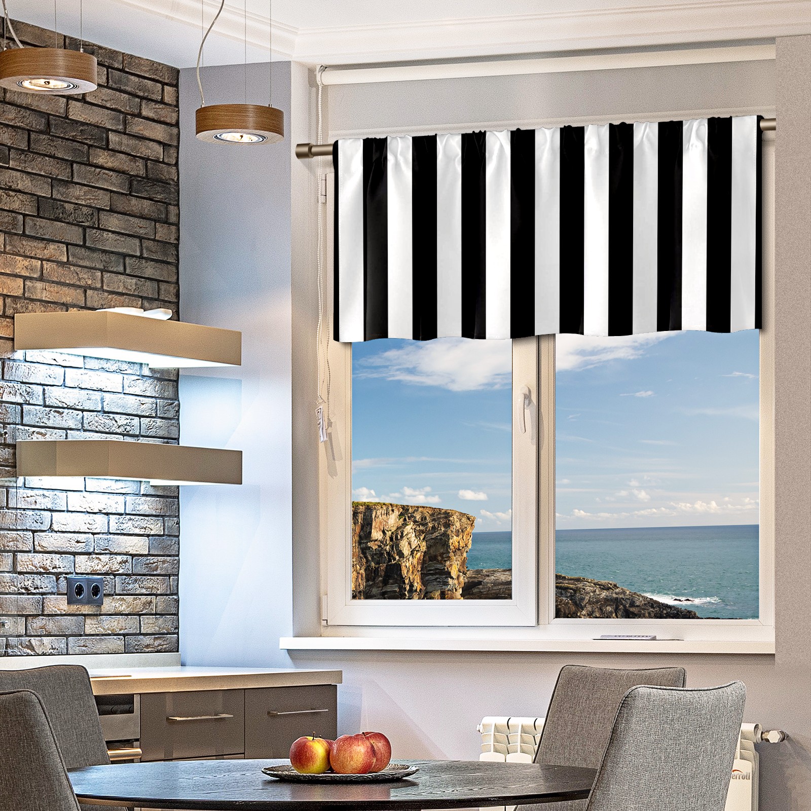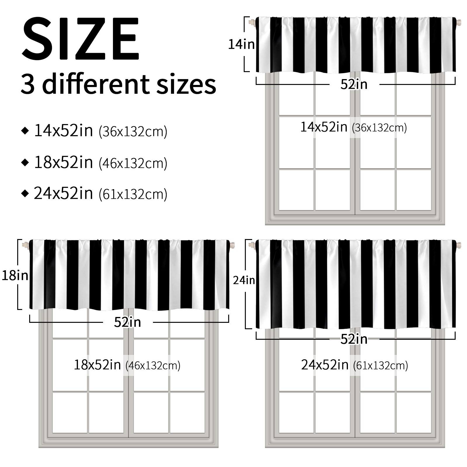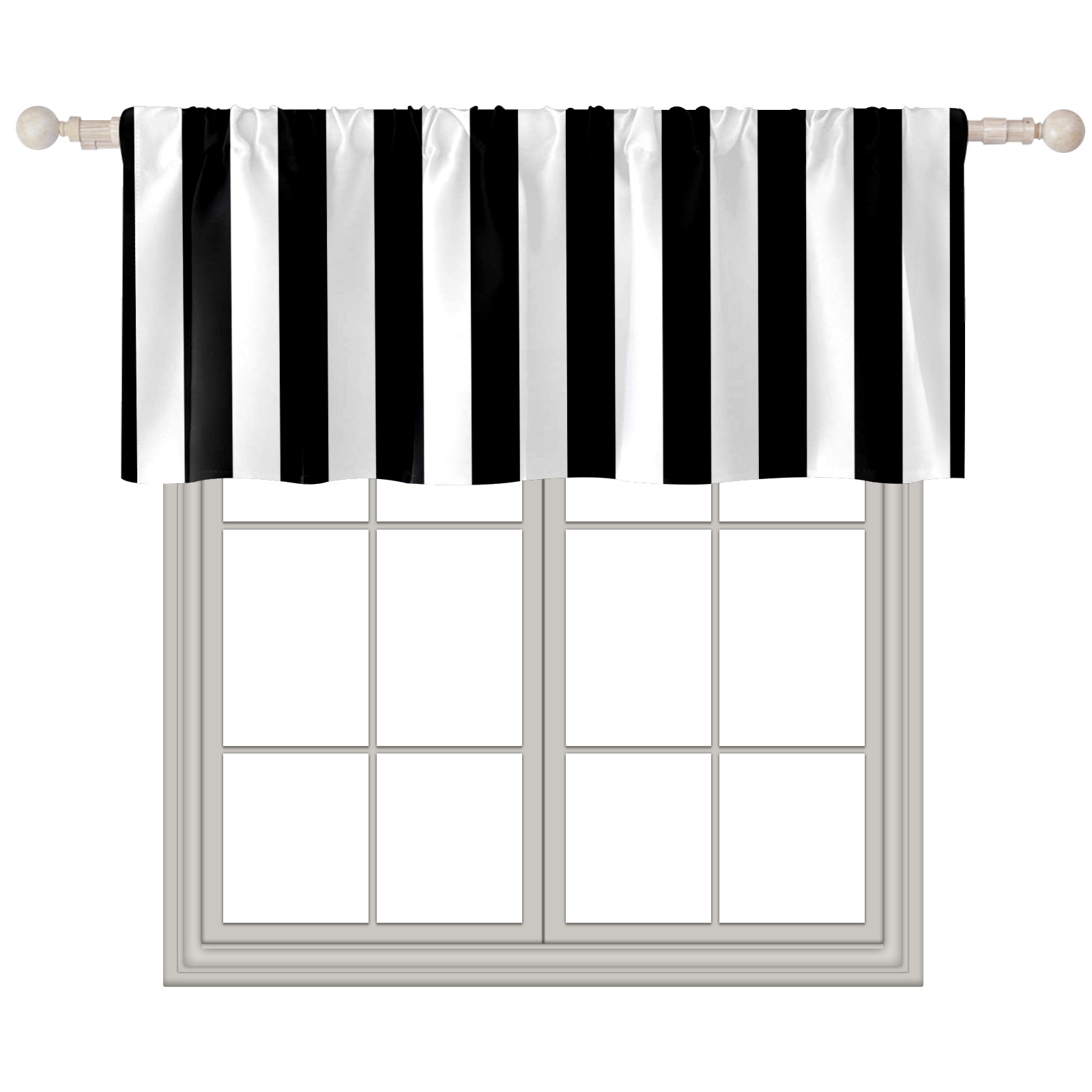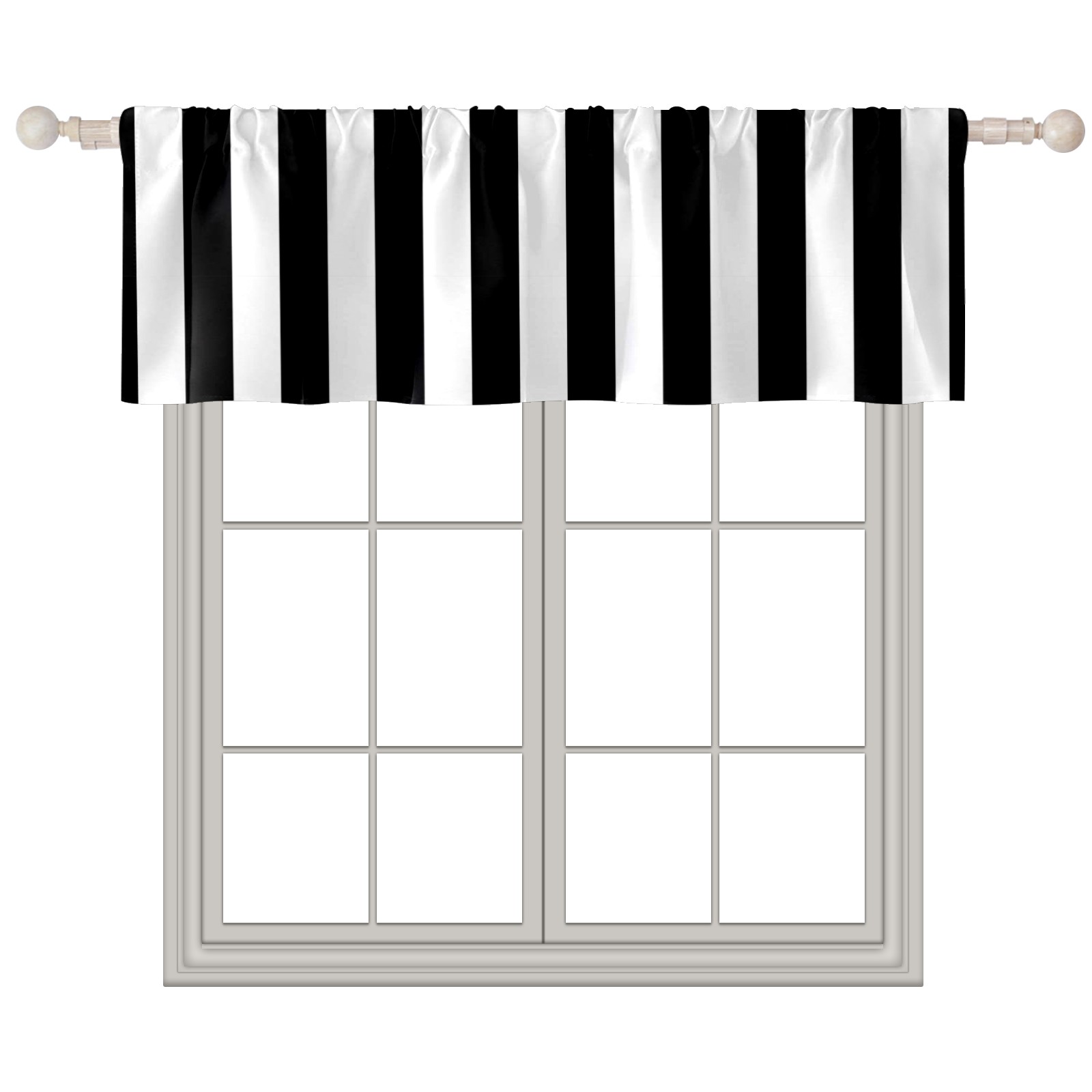 FCZ Kitchen Curtain Valance for Window White Black Simple Stripes Valances Rod Pocket Window Treatment Curtain for Bathroom Living Room Bedroom Window Deco Curtain Toppers Valances 52" W x 14" L