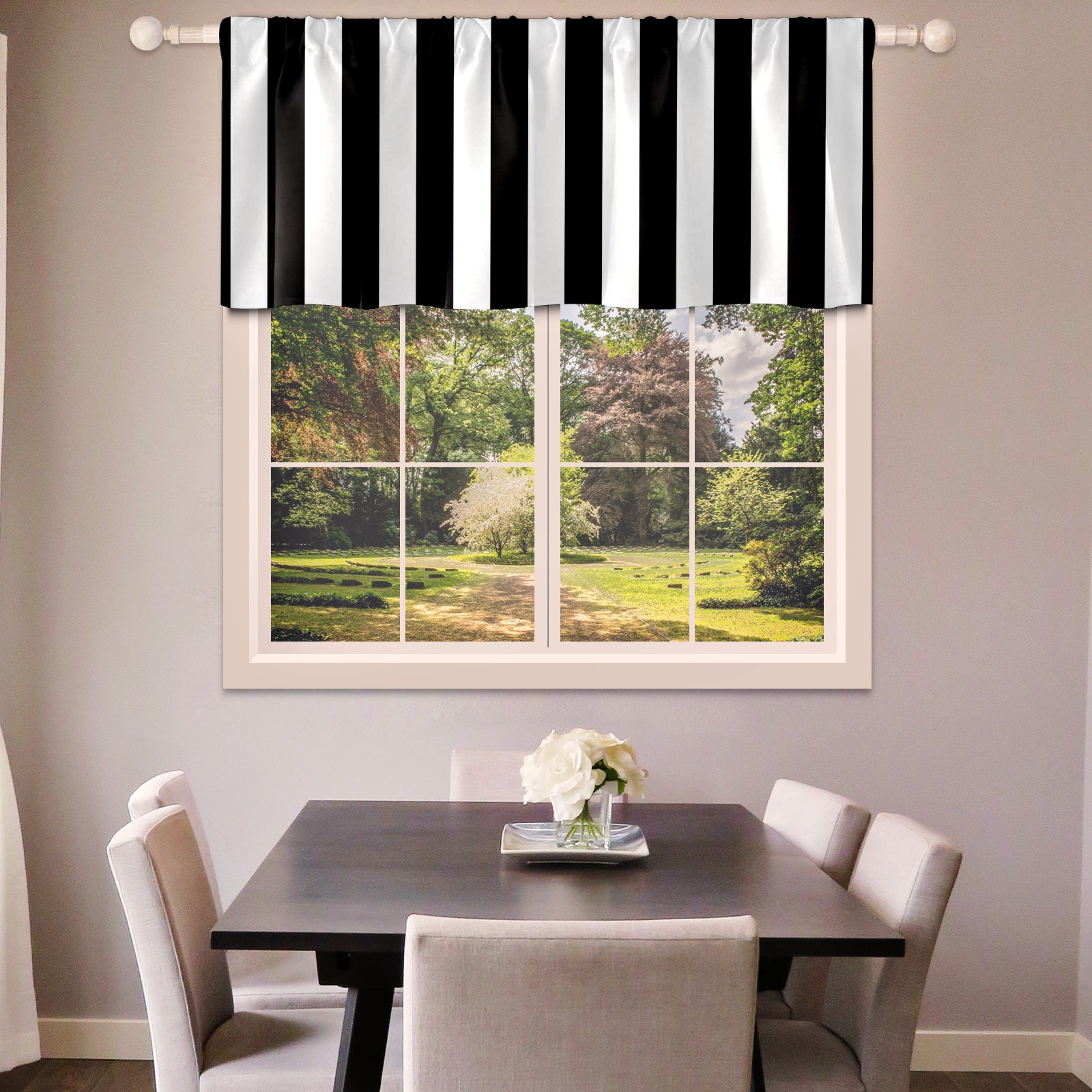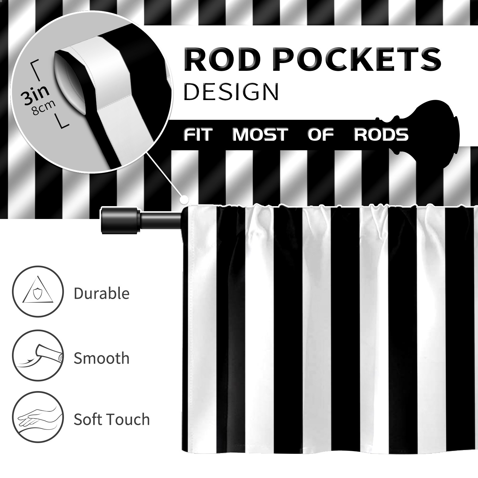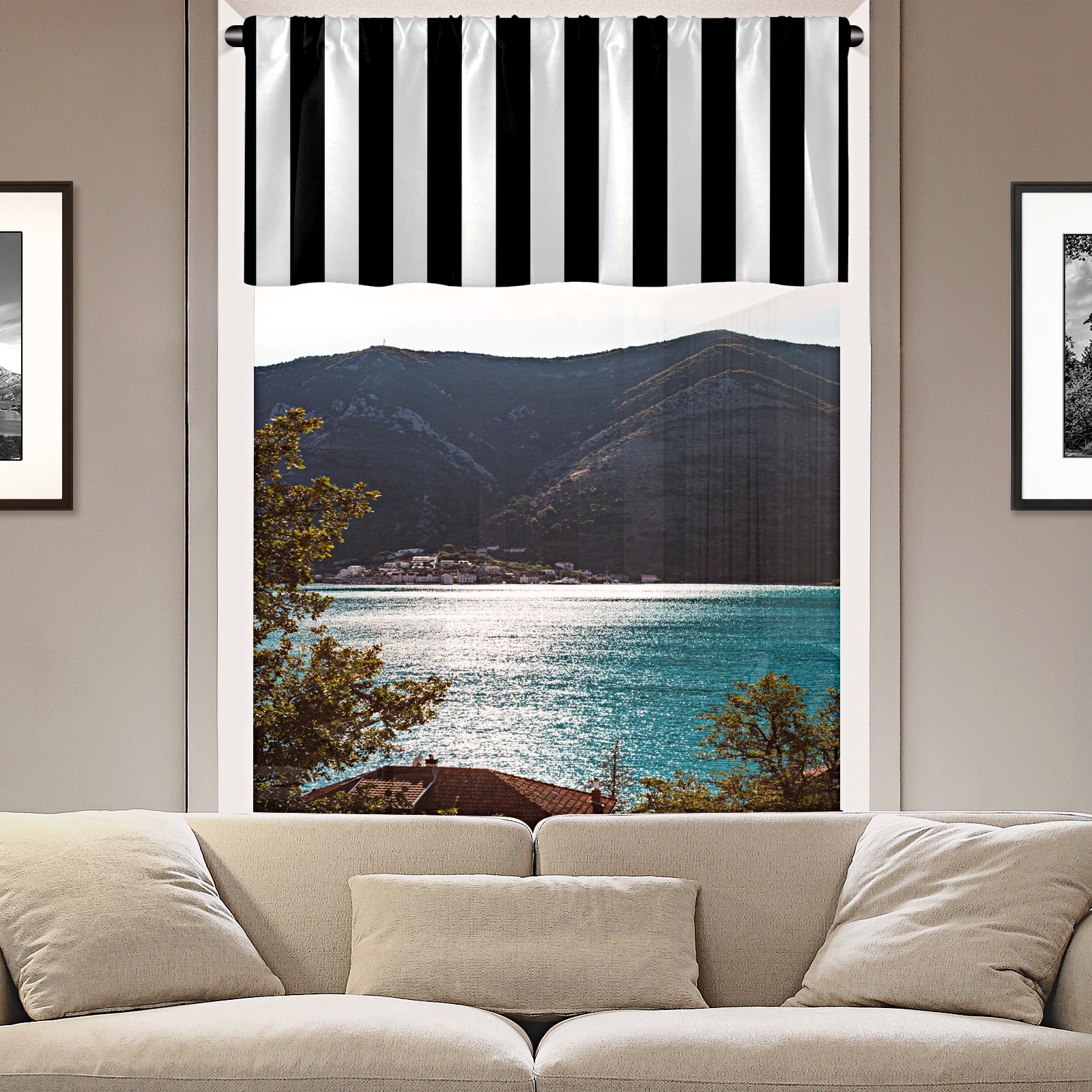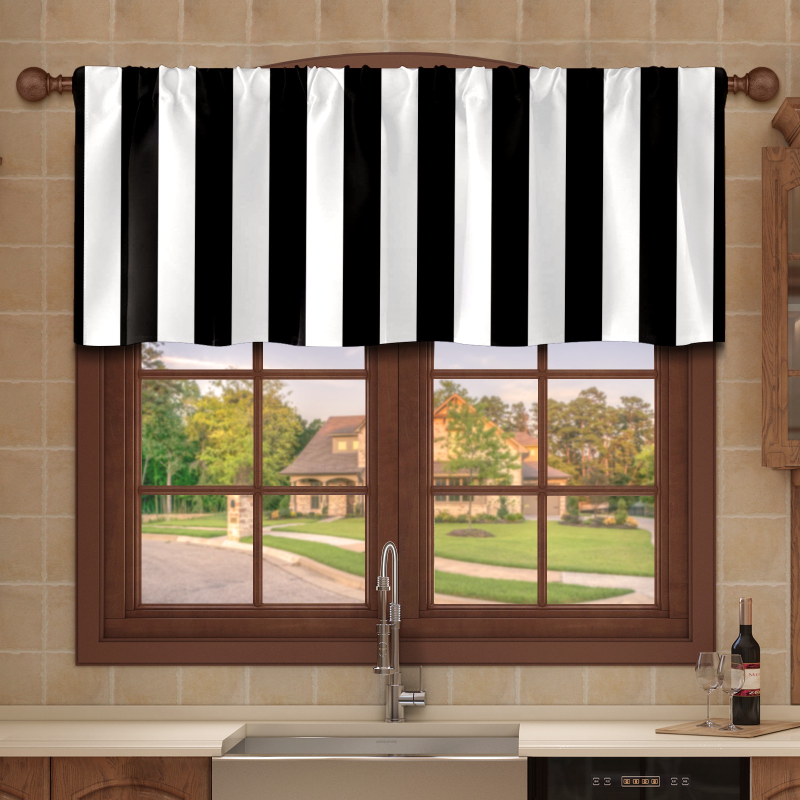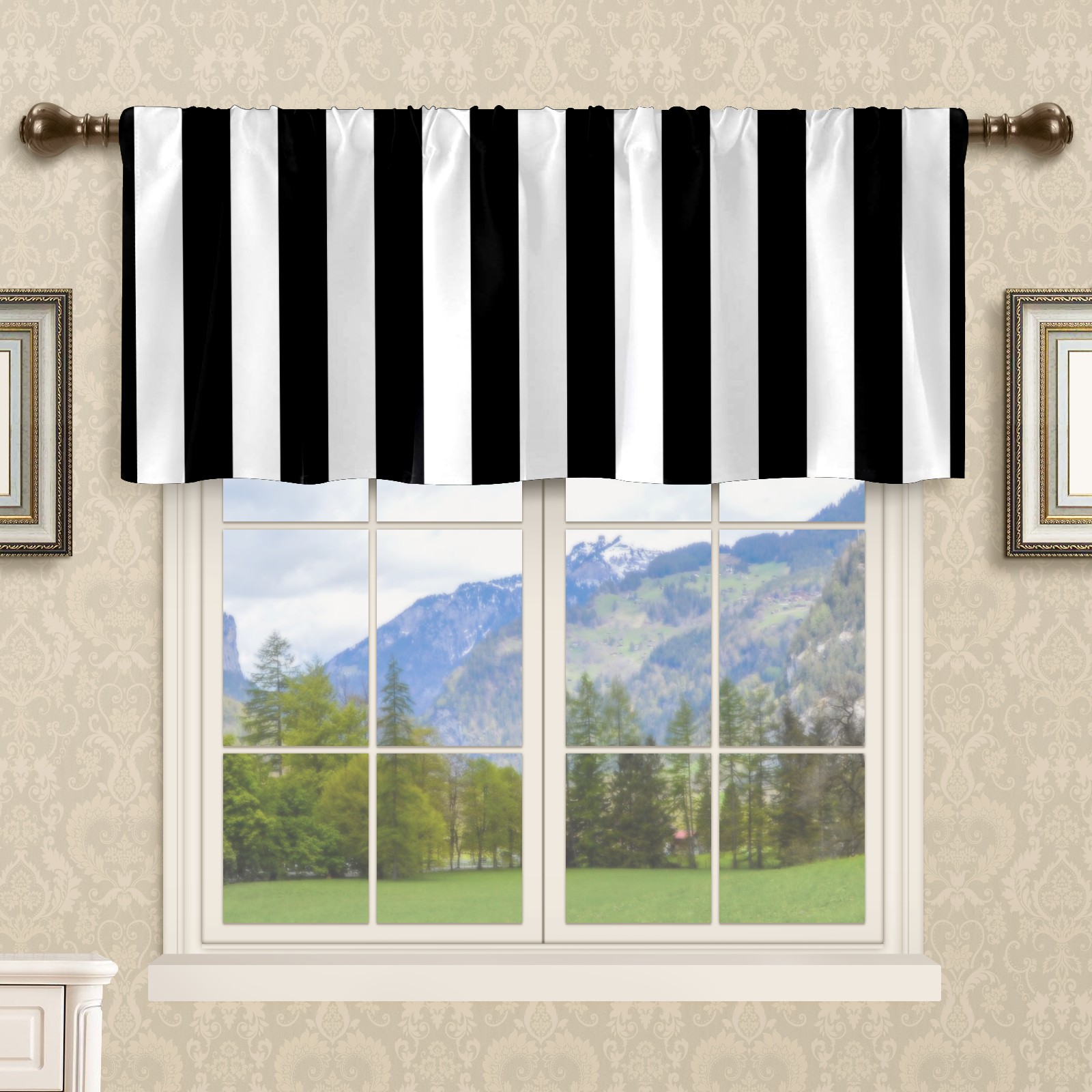 FCZ Kitchen Curtain Valance for Window White Black Simple Stripes Valances Rod Pocket Window Treatment Curtain for Bathroom Living Room Bedroom Window Deco Curtain Toppers Valances 52" W x 14" L
