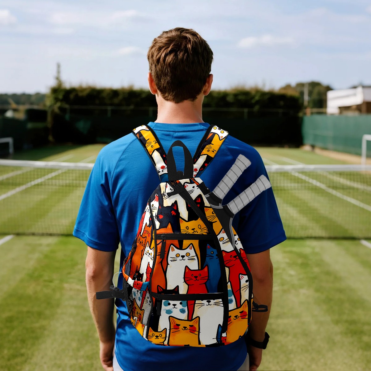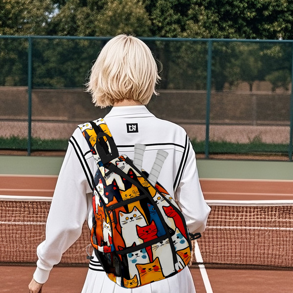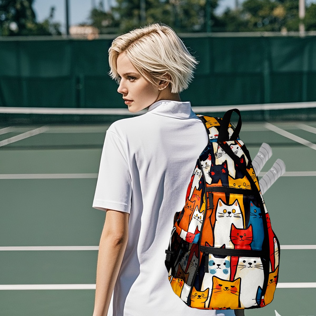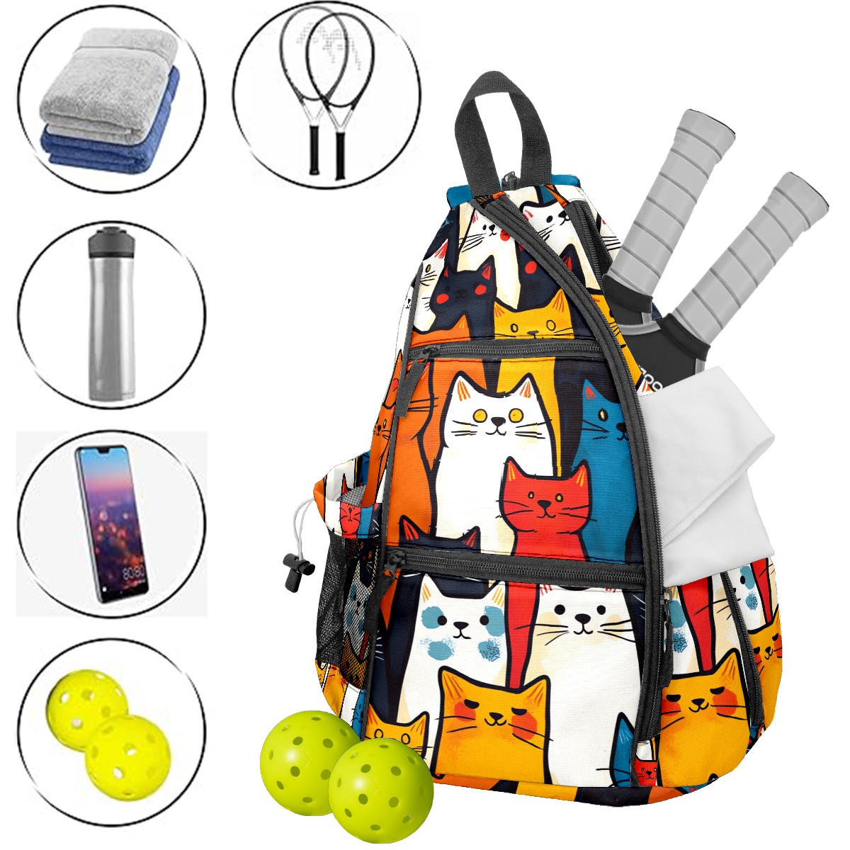 Pickleball Bag Simple Line Cat (1) Pickle Ball Backpack for Women Men Premium Lightweight Crossbody Sling Bag Sports Backpack for Pickleball Paddle Tennis