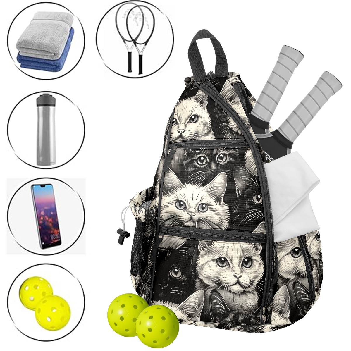 <p>ADJUSTABLE & VERSATILE</p> <p>Convertible Shoulder Strap: Wear it on either shoulder and adjust the length for maximum comfort. Perfect for left- or right-handed players!</p> <p>SPACIOUS & ORGANIZED</p> <p>5 Multi-Functional Pockets + Water Bottle Holder</p> <p>Fits 2-4 pickleball paddles + balls (or 2+ table tennis sets)</p> <p>Hidden anti-theft pocket for cash, keys, or cards – keep valuables secure</p> <p>Dimensions: 14"W × 6"D × 18"H – Compact yet roomy.</p>