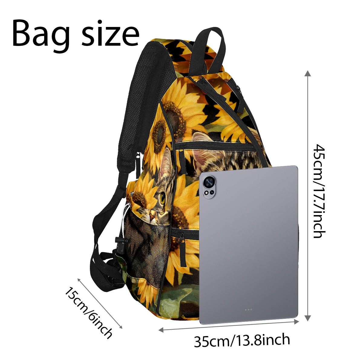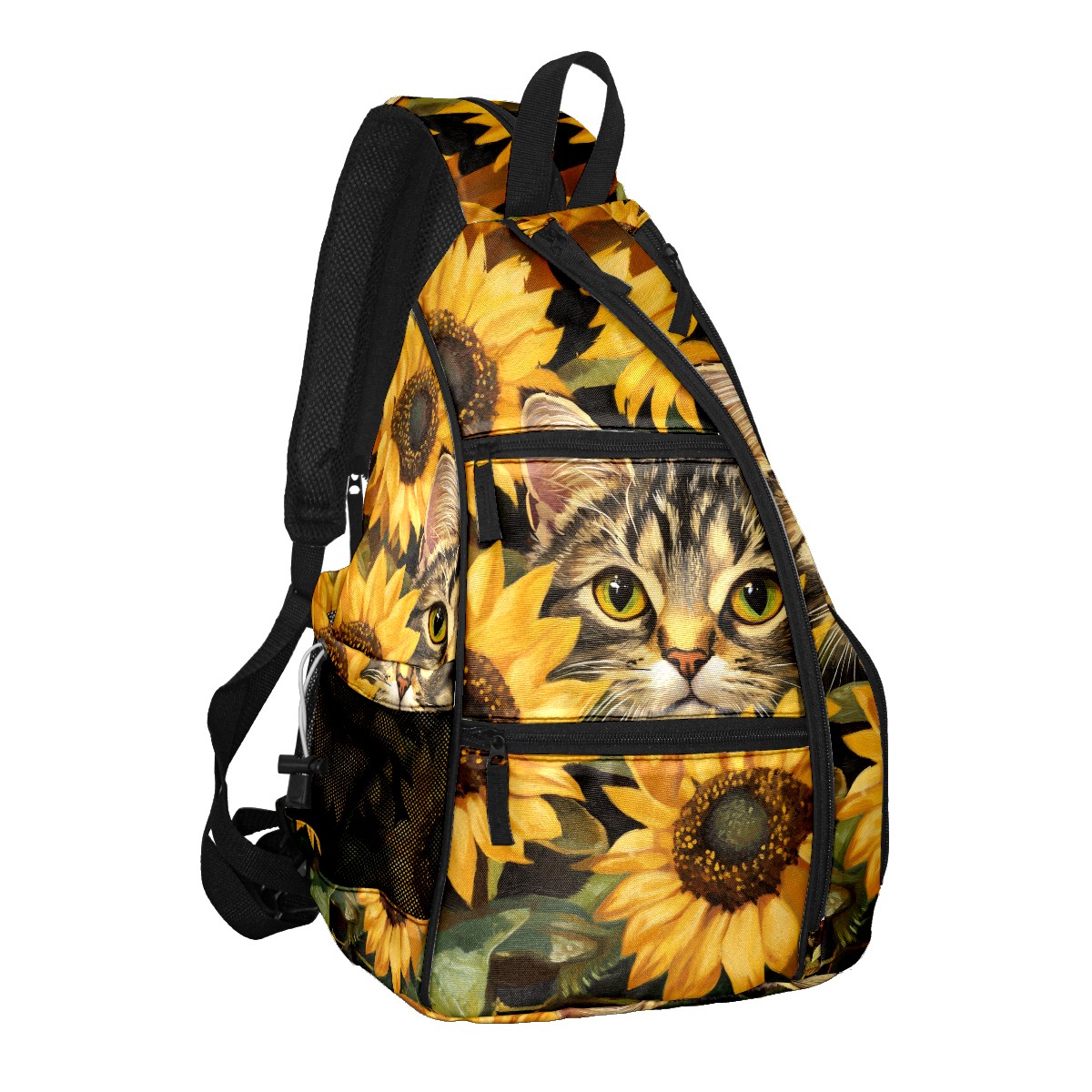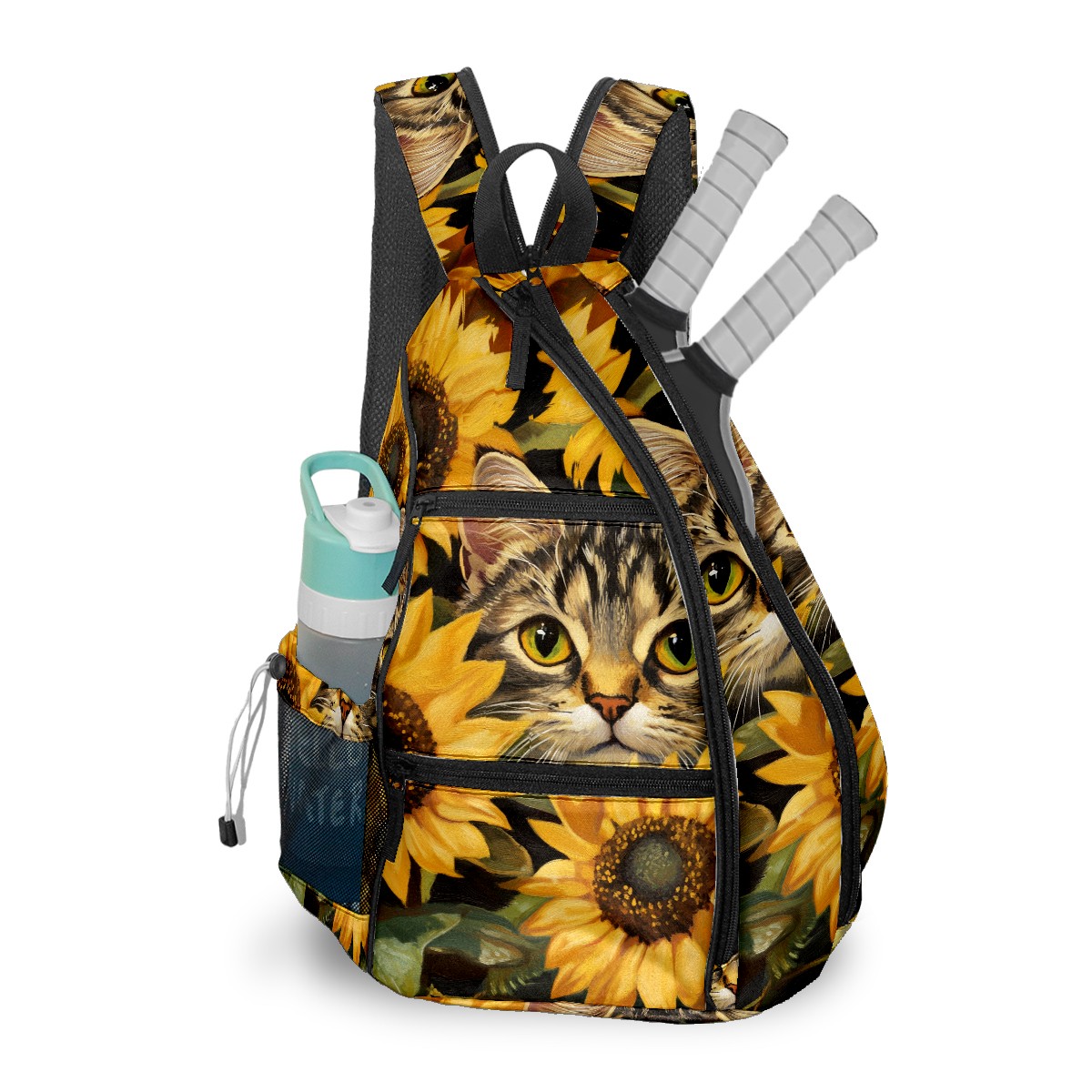 Pickleball Bag Cat Sunflowers Pickle Ball Backpack for Women Men Premium Lightweight Crossbody Sling Bag Sports Backpack for Pickleball Paddle Tennis