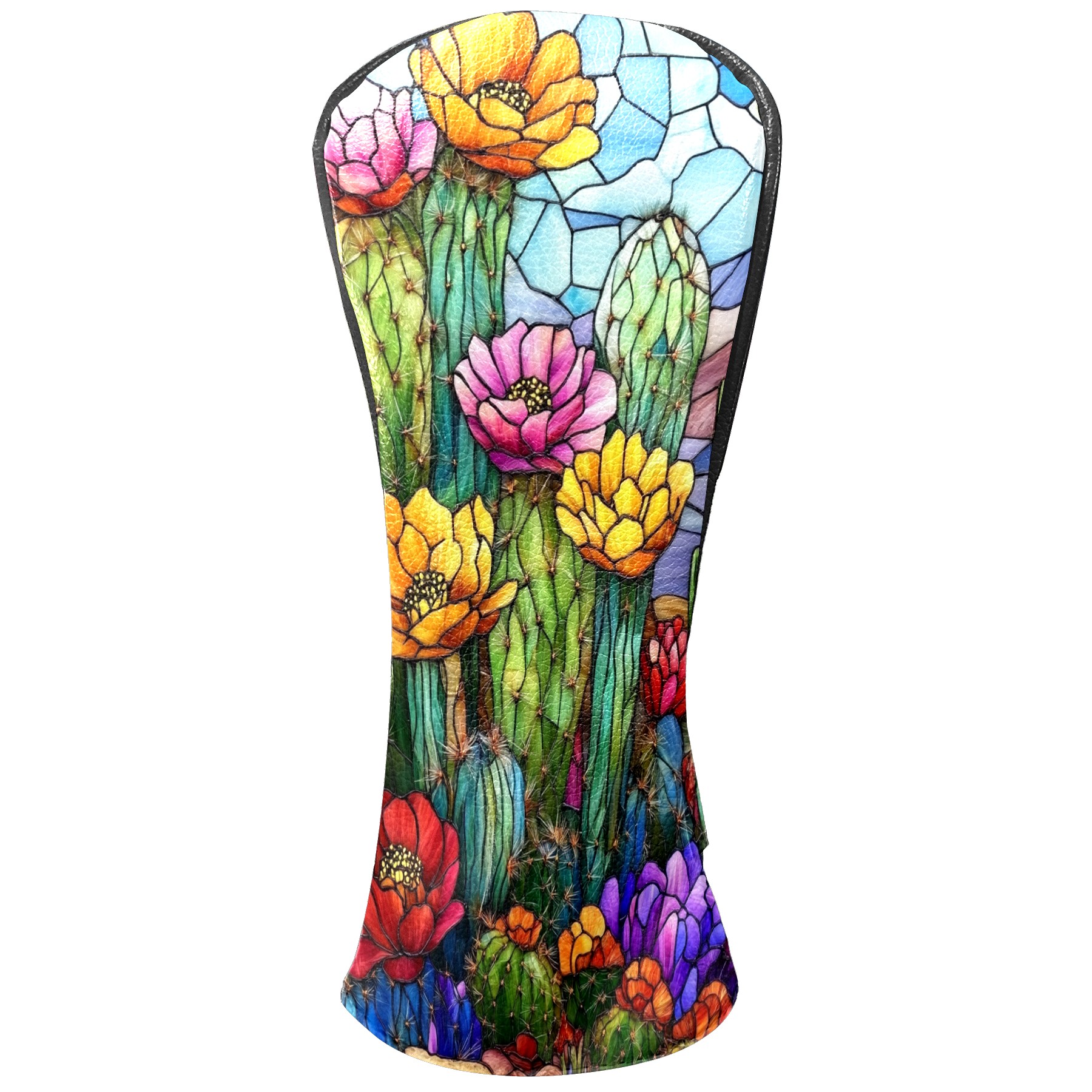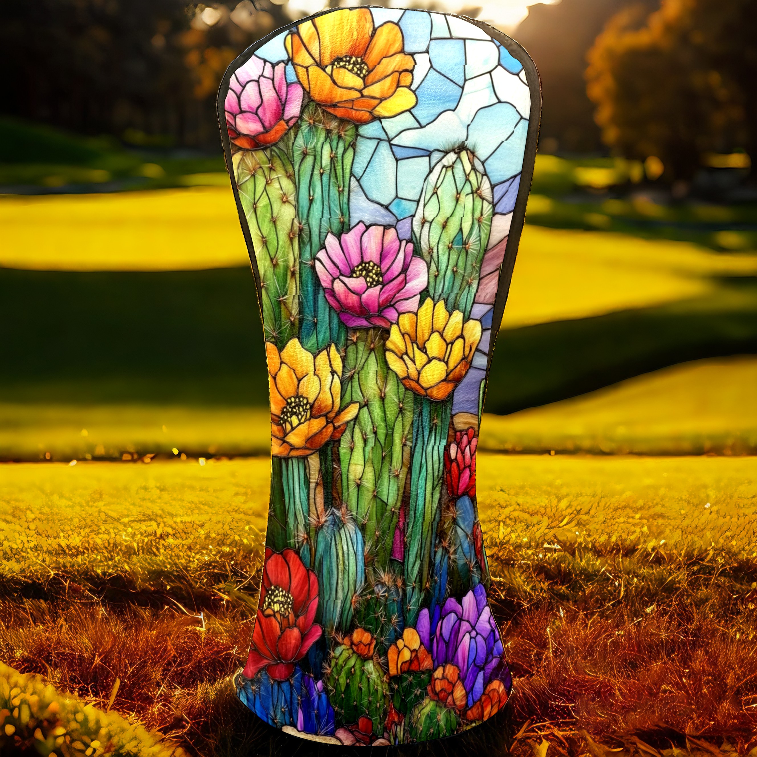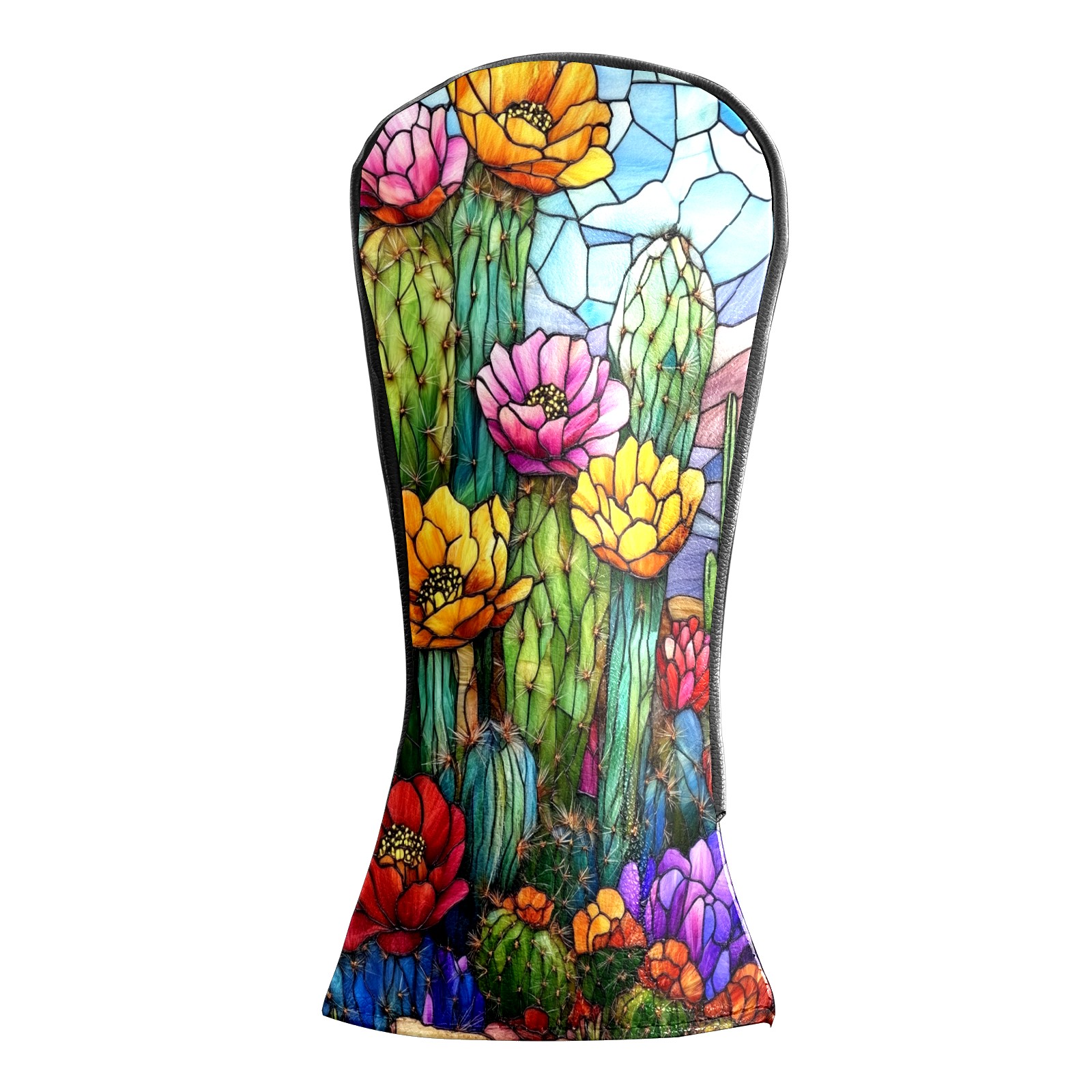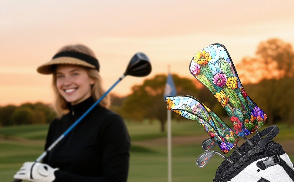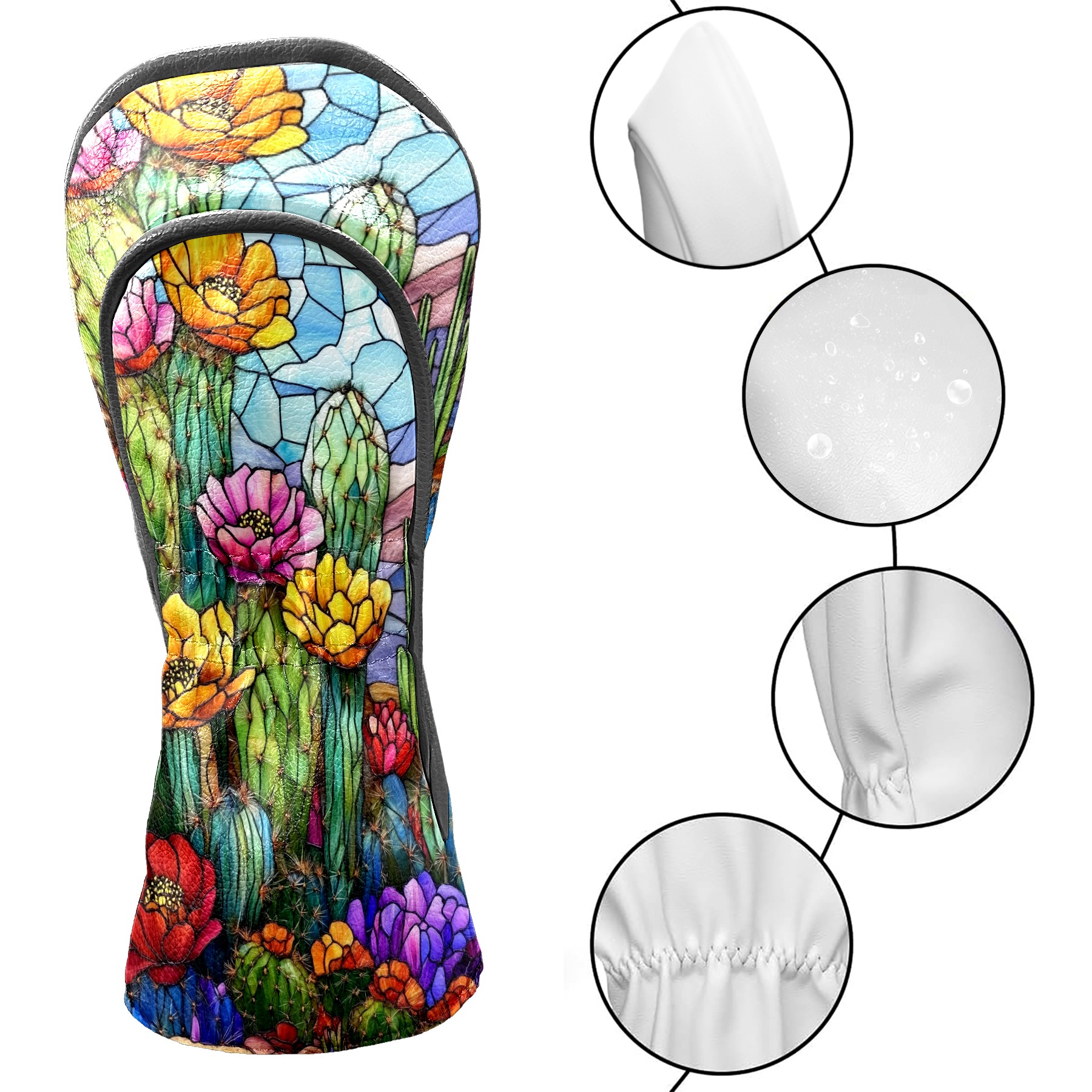 Golf Head Covers Leather Driver Head Cover, Premium Golf Club Covers with Anti-Scratch Lining for Women Men 1/3/5 Wood Cover for Golf Clubs (Stained Glass Cactus)