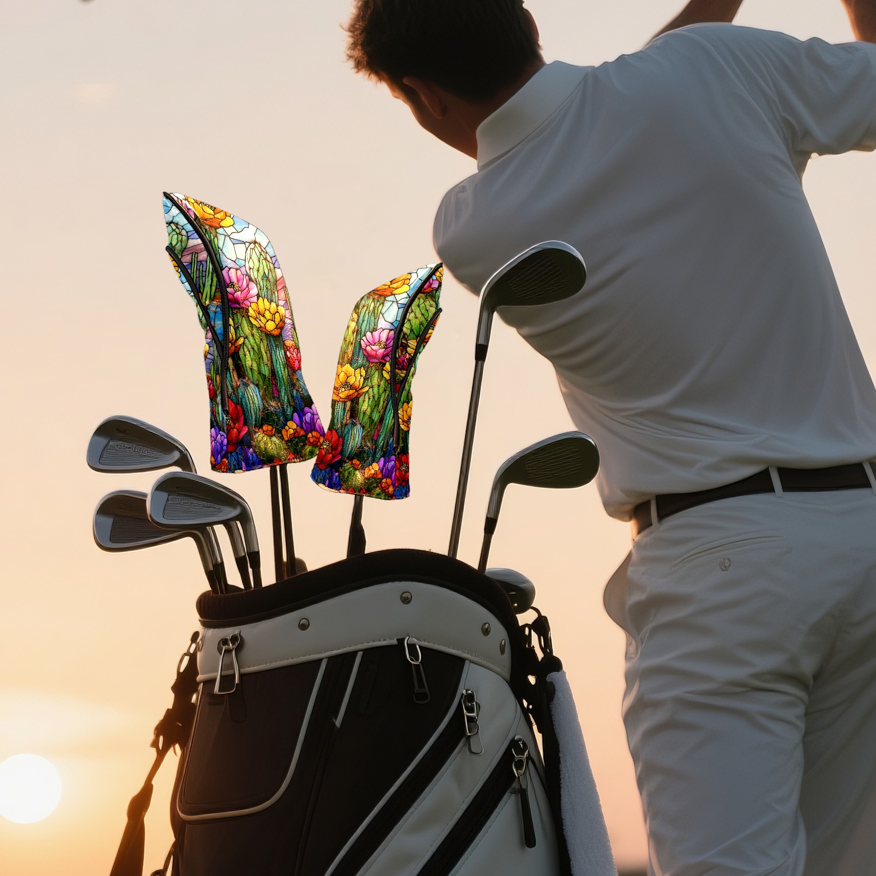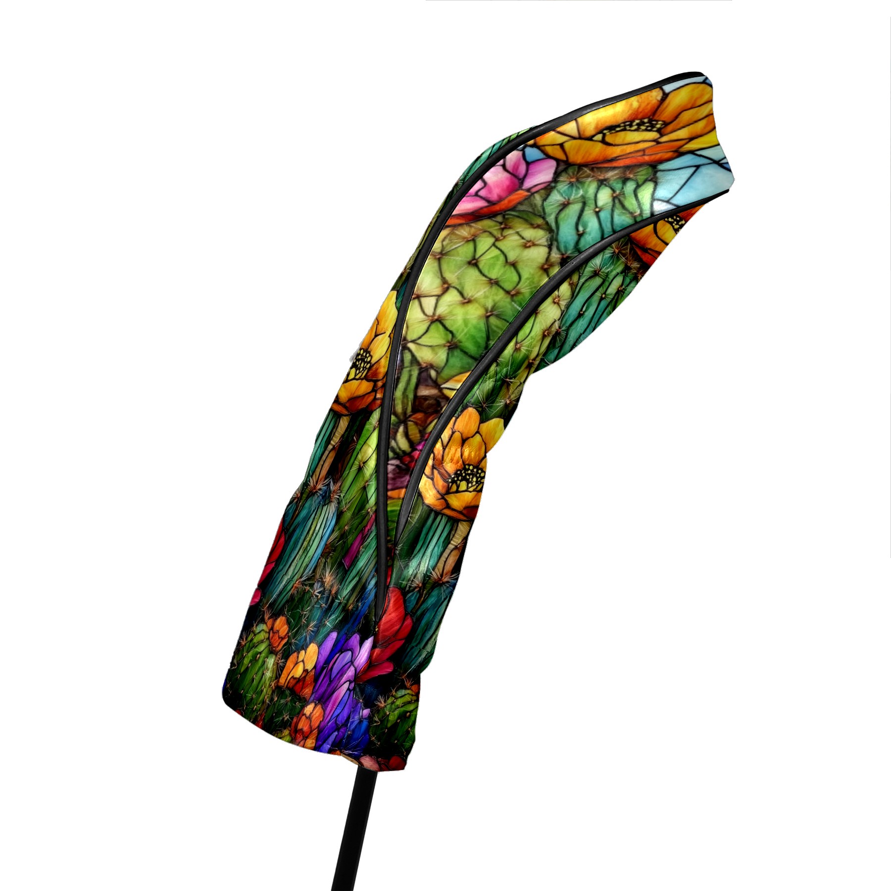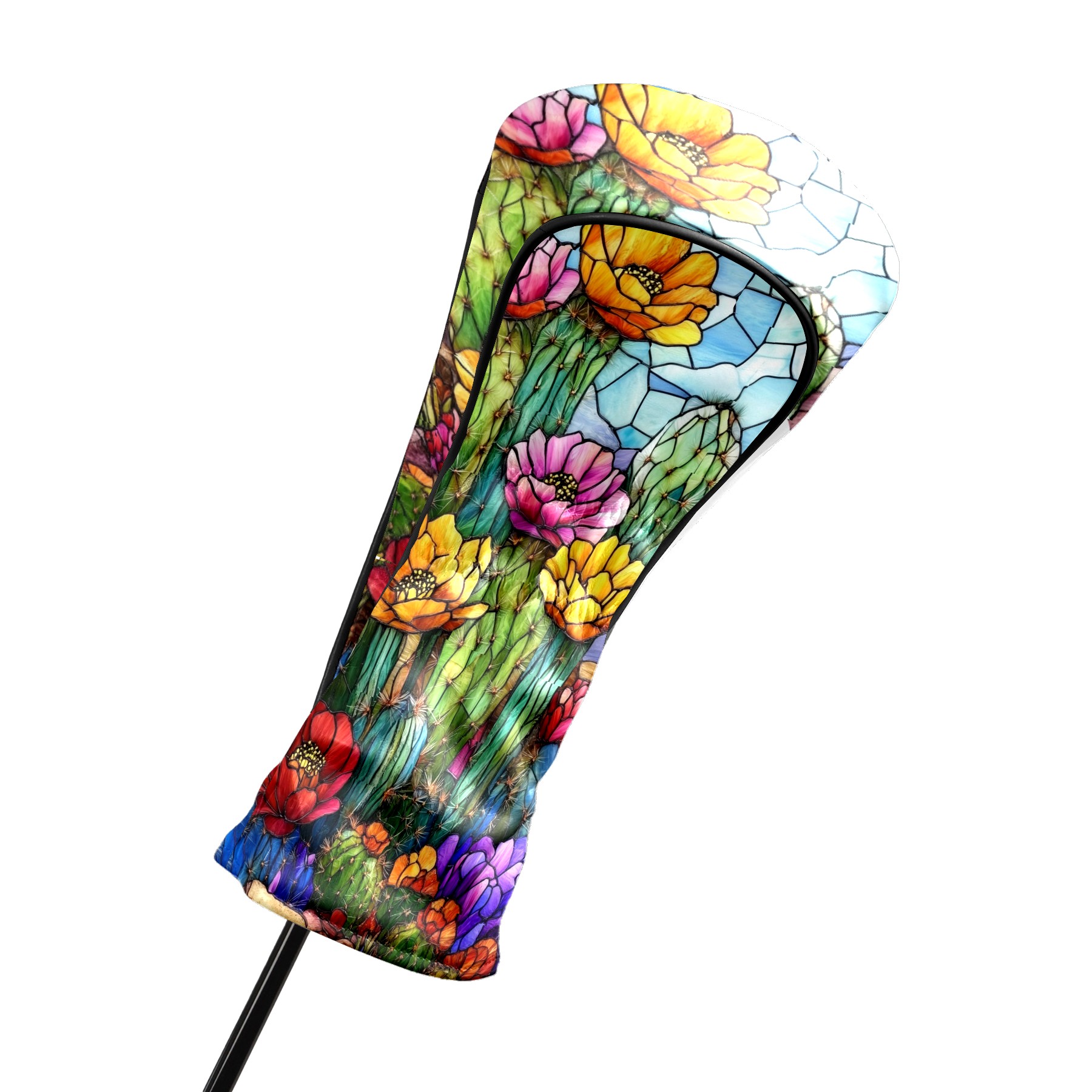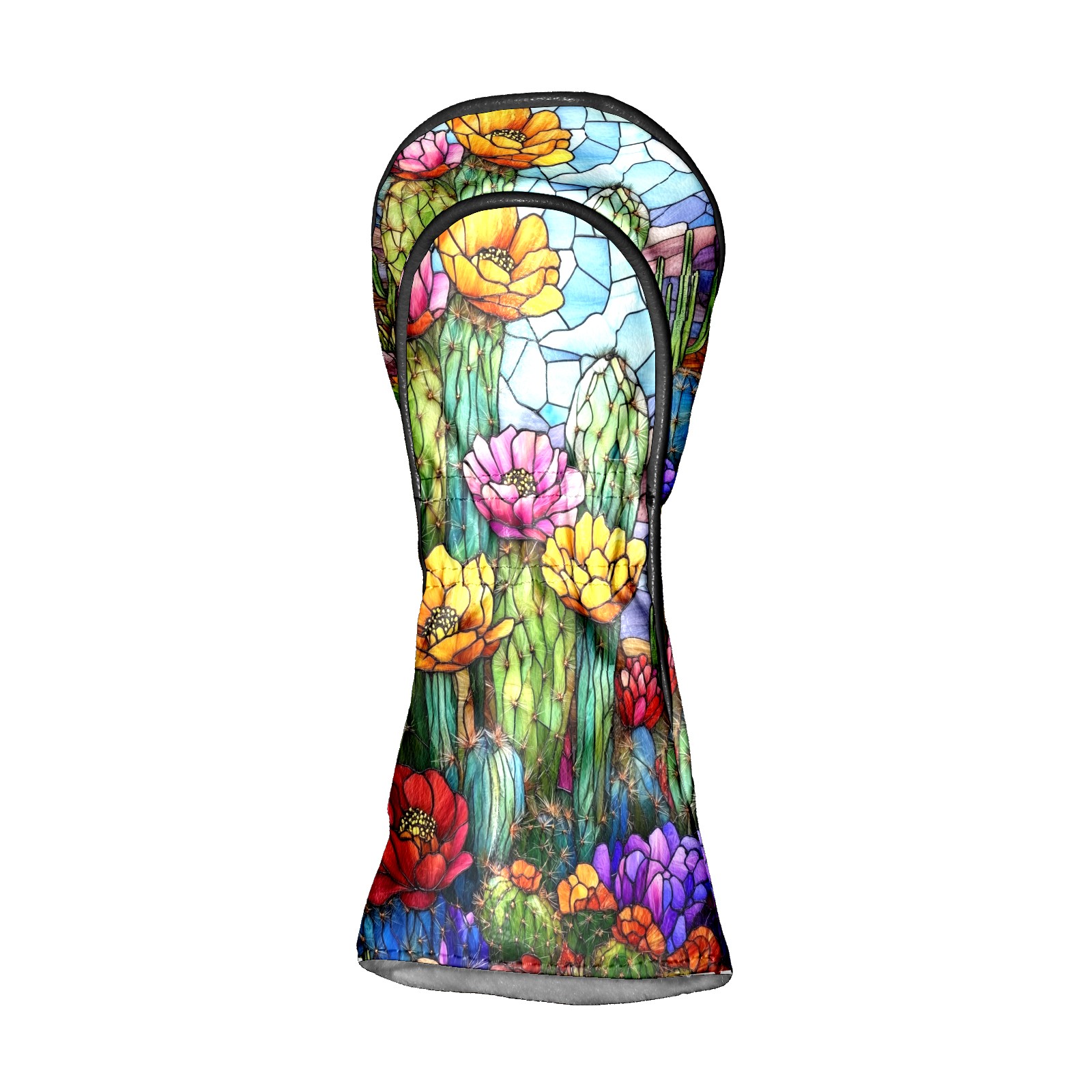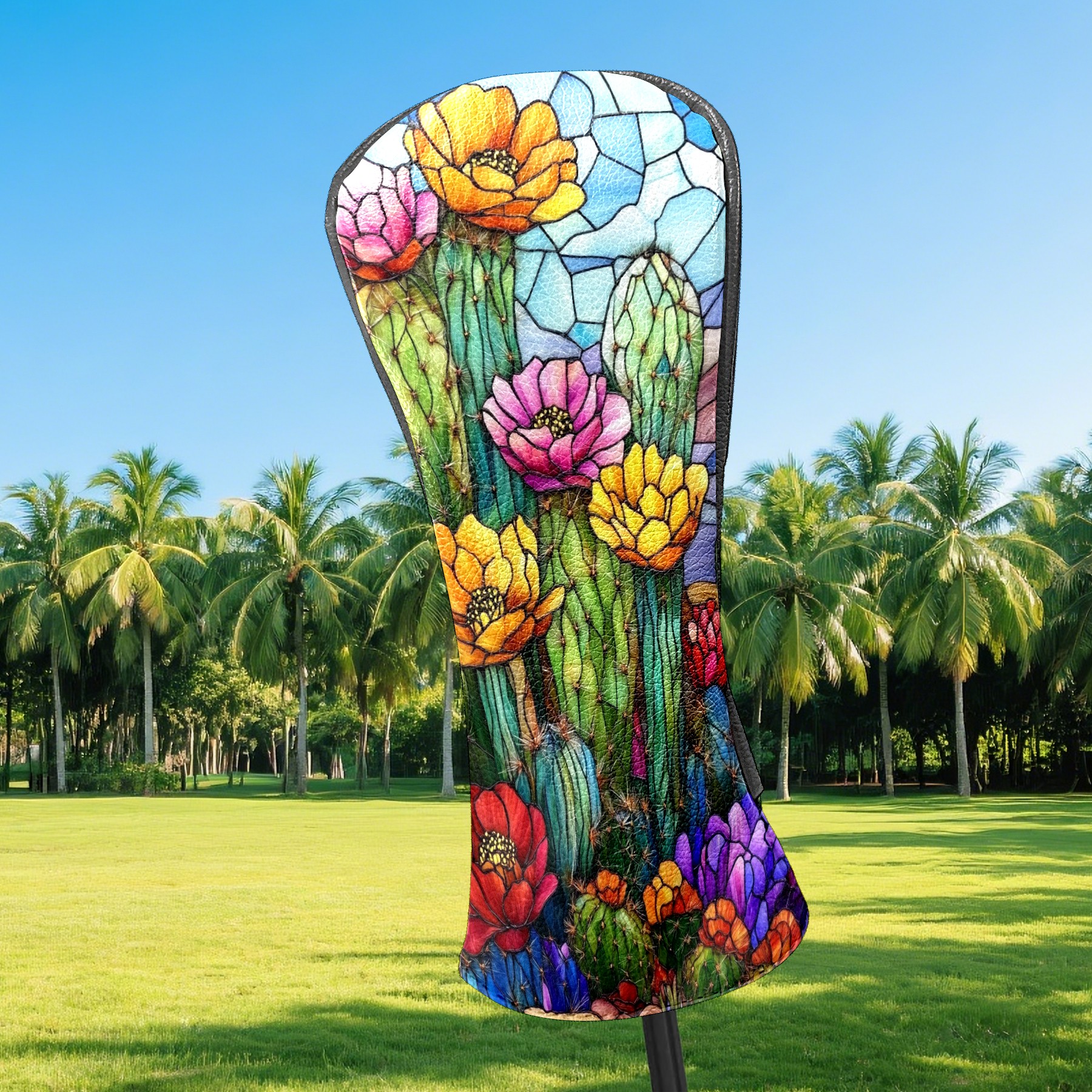 Golf Head Covers Leather Driver Head Cover, Premium Golf Club Covers with Anti-Scratch Lining for Women Men 1/3/5 Wood Cover for Golf Clubs (Stained Glass Cactus)