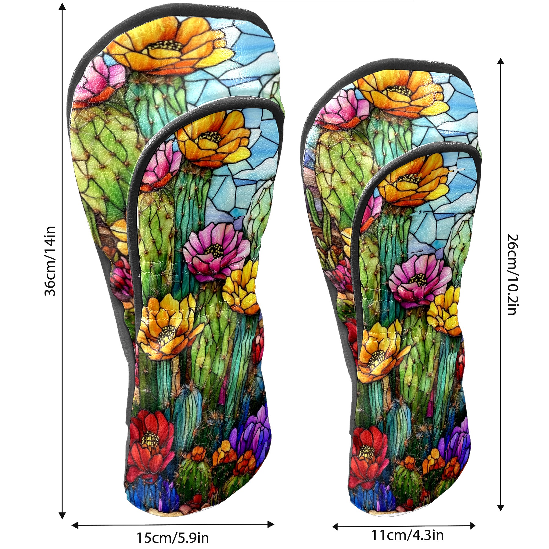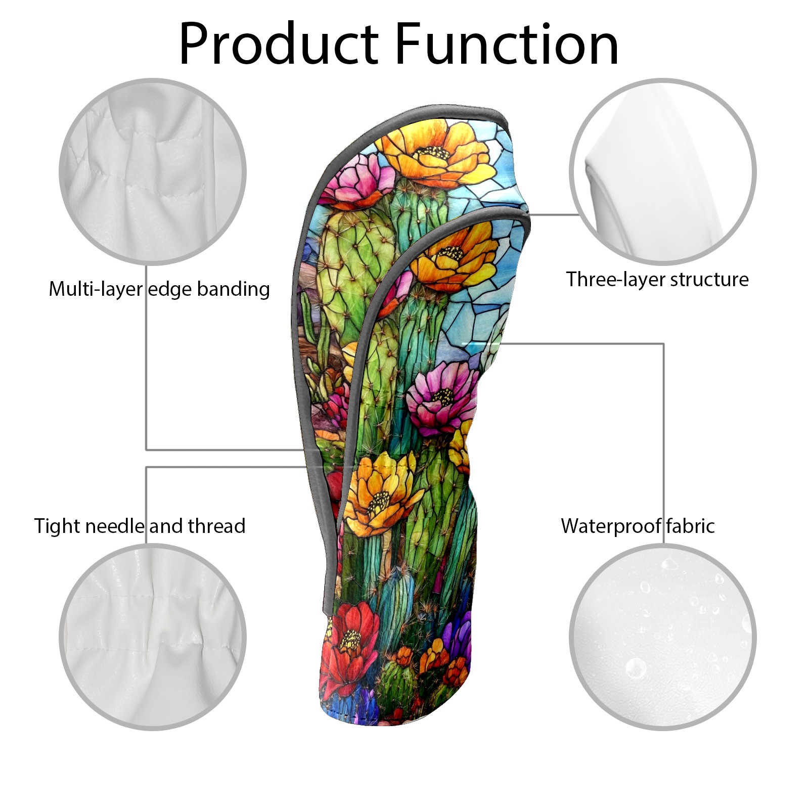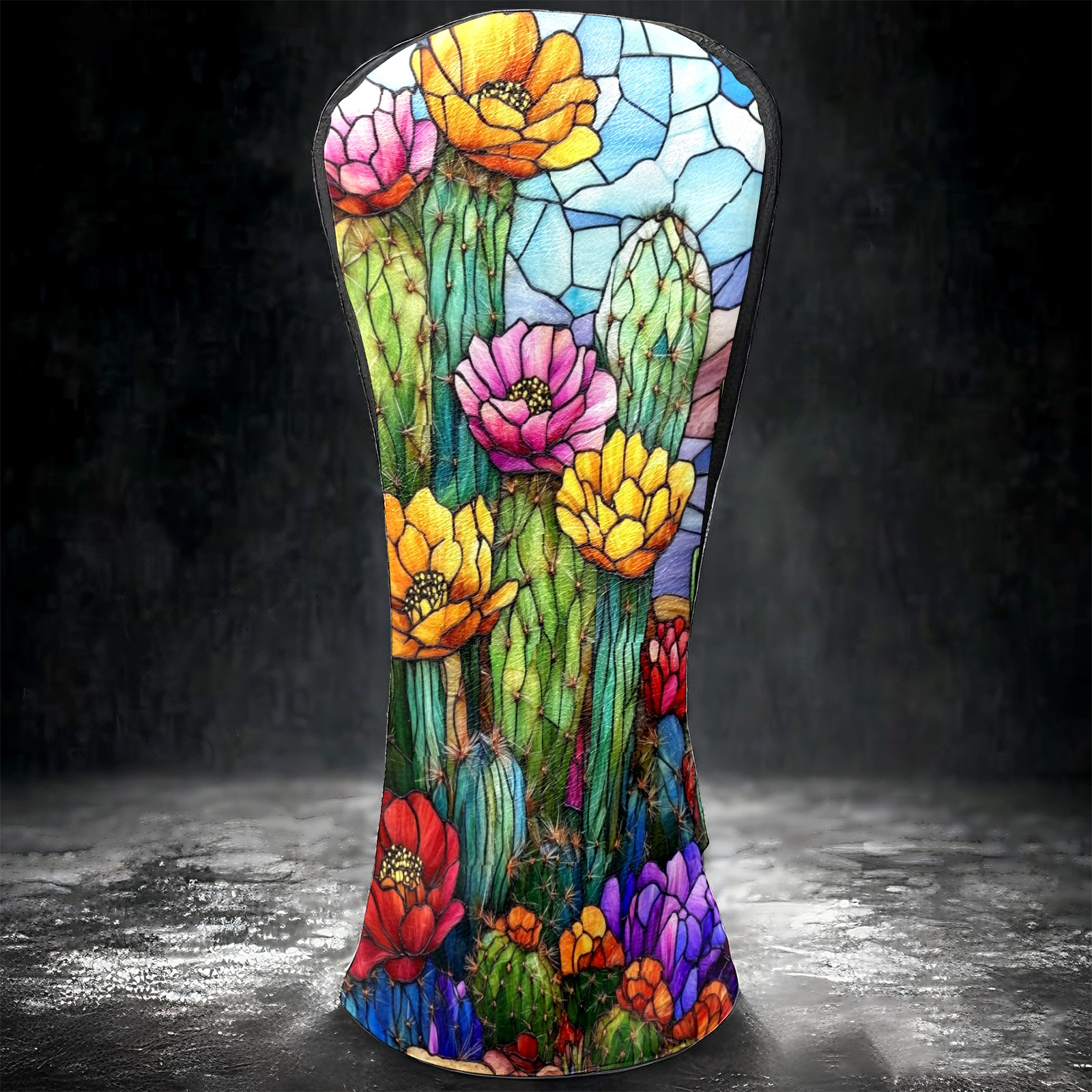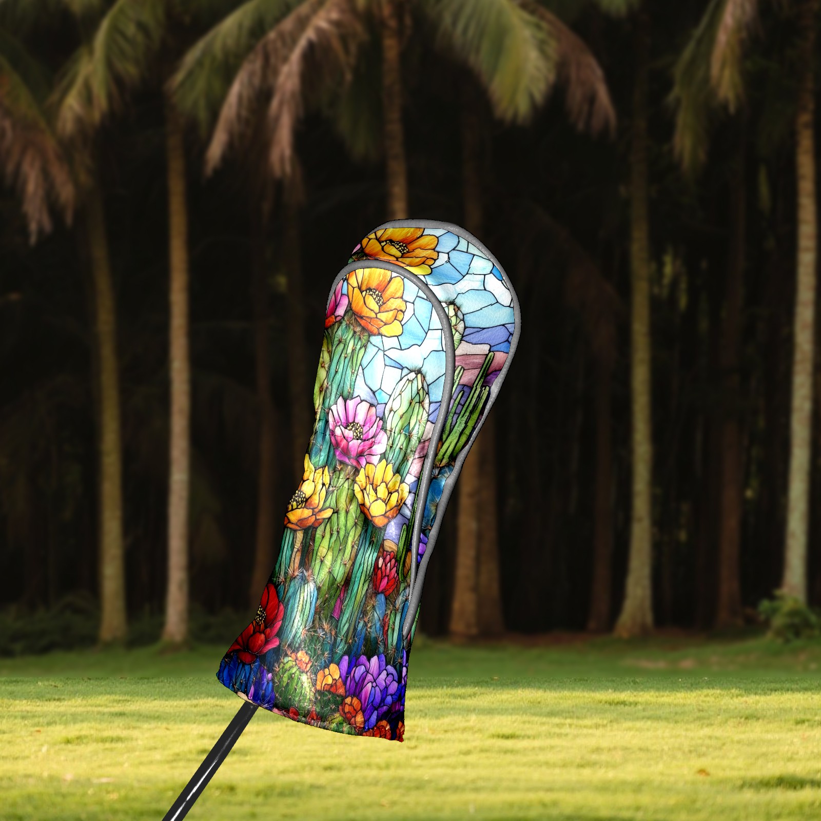 Golf Head Covers Leather Driver Head Cover, Premium Golf Club Covers with Anti-Scratch Lining for Women Men 1/3/5 Wood Cover for Golf Clubs (Stained Glass Cactus)