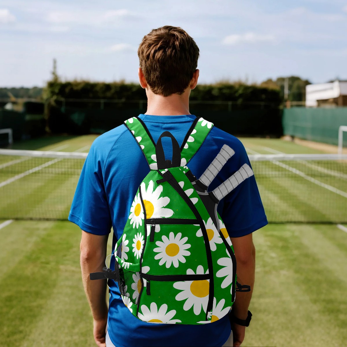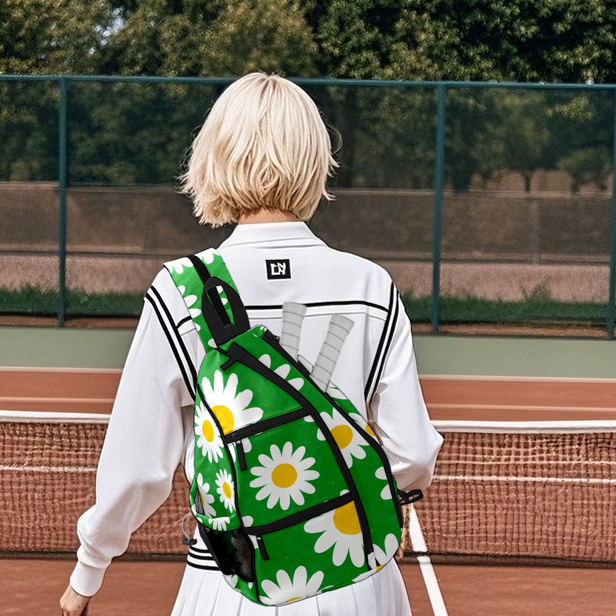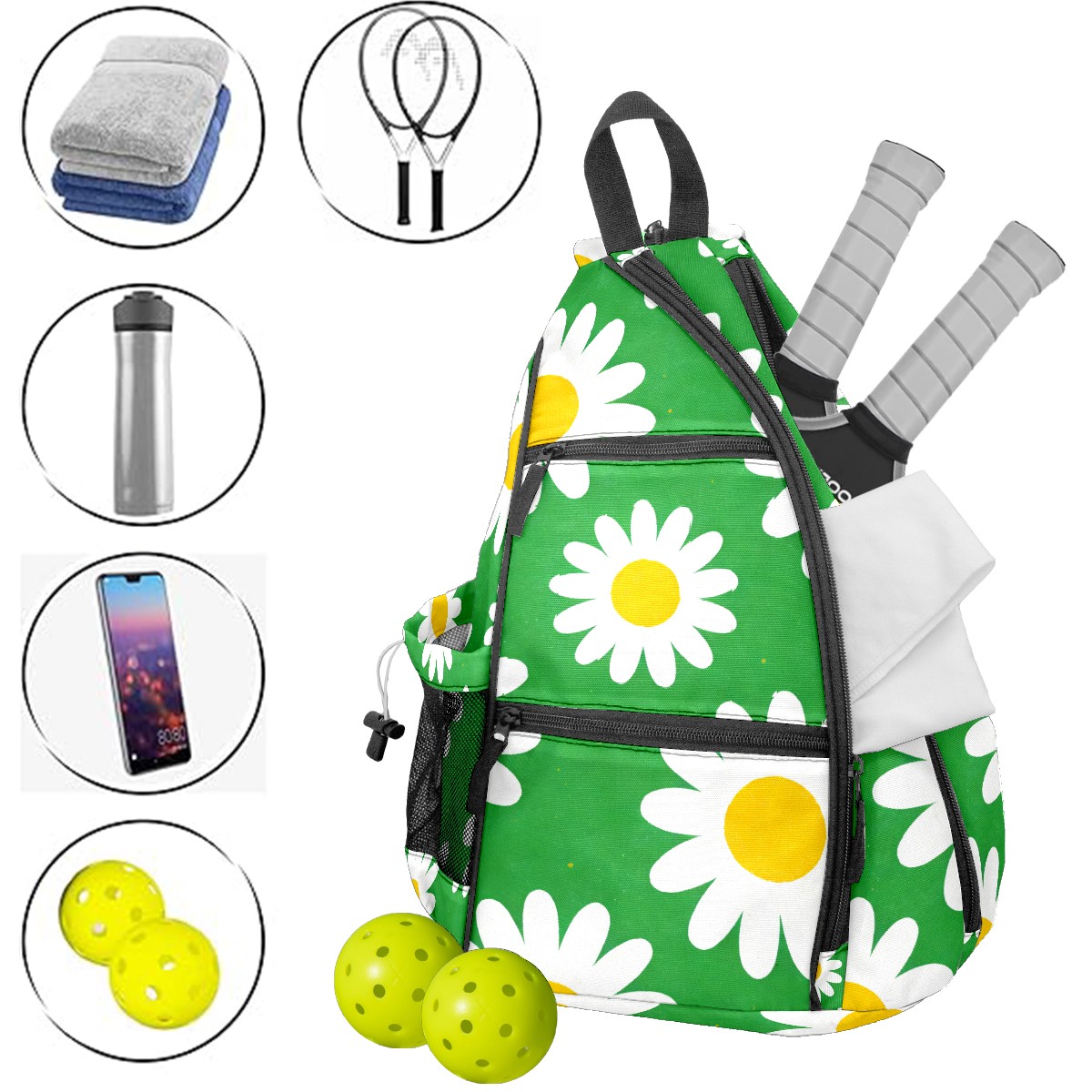 Pickleball Bag Daisy Green Pickle Ball Backpack for Women Men Premium Lightweight Crossbody Sling Bag Sports Backpack for Pickleball Paddle Tennis