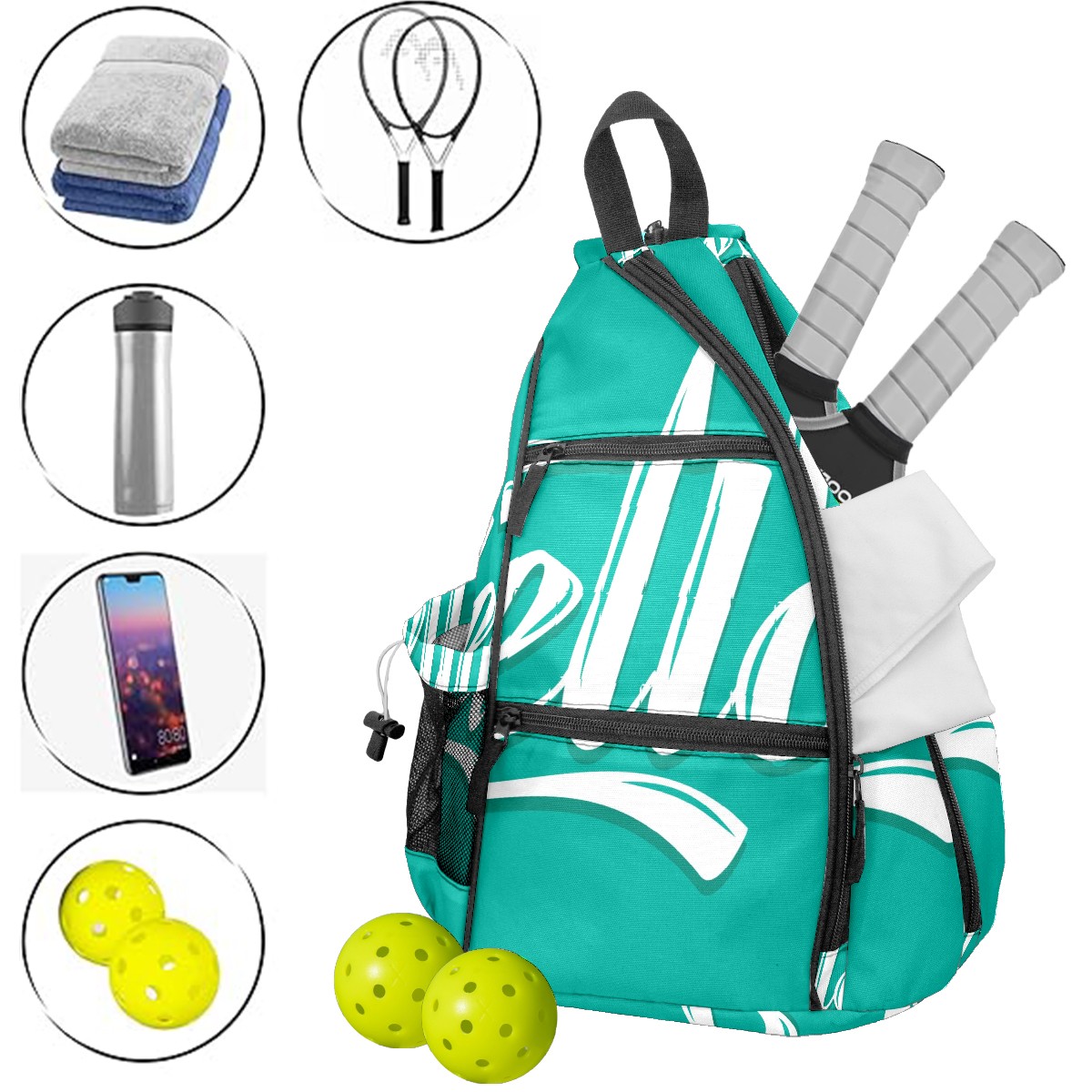 Pickleball Bag Mint Green Pickle Ball Backpack for Women Men Premium Lightweight Crossbody Sling Bag Sports Backpack for Pickleball Paddle Tennis