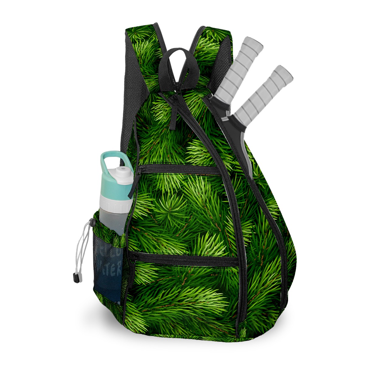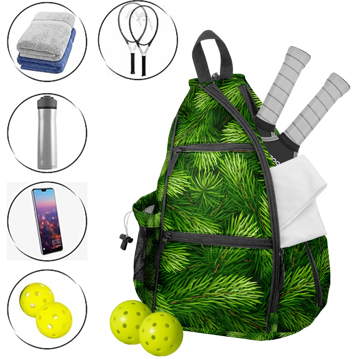 Pickleball Bag Christmas Green Fir Tree Pickle Ball Backpack for Women Men Premium Lightweight Crossbody Sling Bag Sports Backpack for Pickleball Paddle Tennis