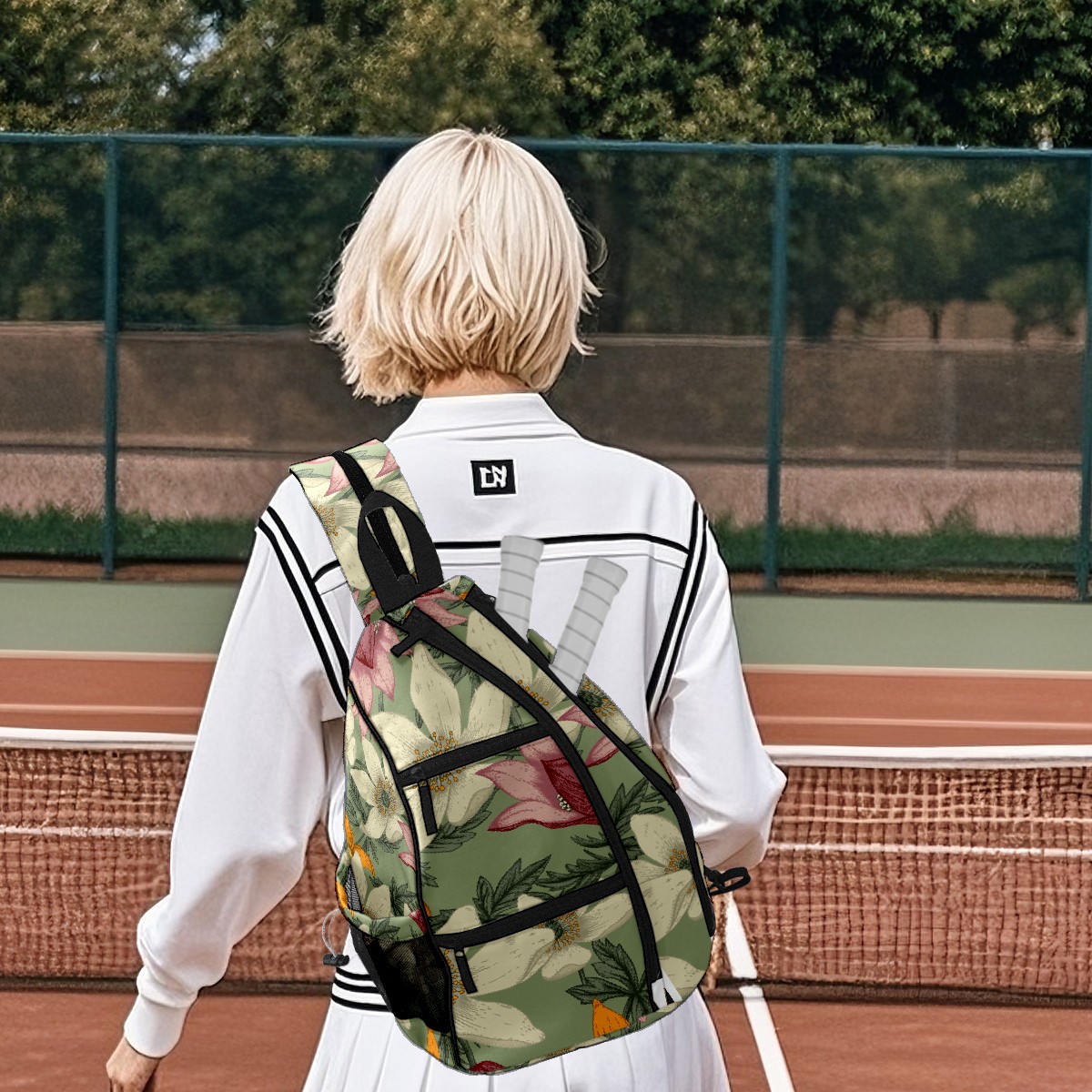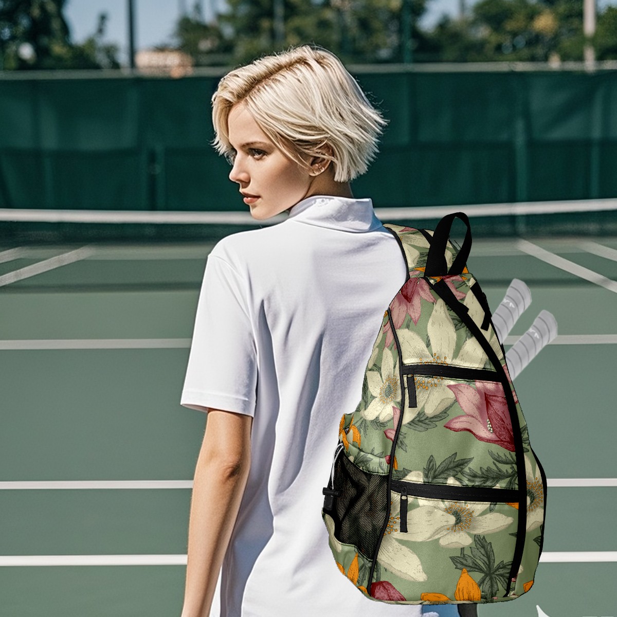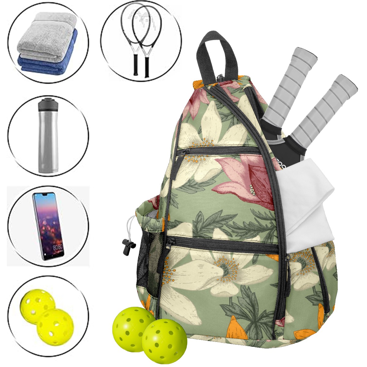 Pickleball Bag Watercolor Vintage Narcissus Green Pickle Ball Backpack for Women Men Premium Lightweight Crossbody Sling Bag Sports Backpack for Pickleball Paddle Tennis