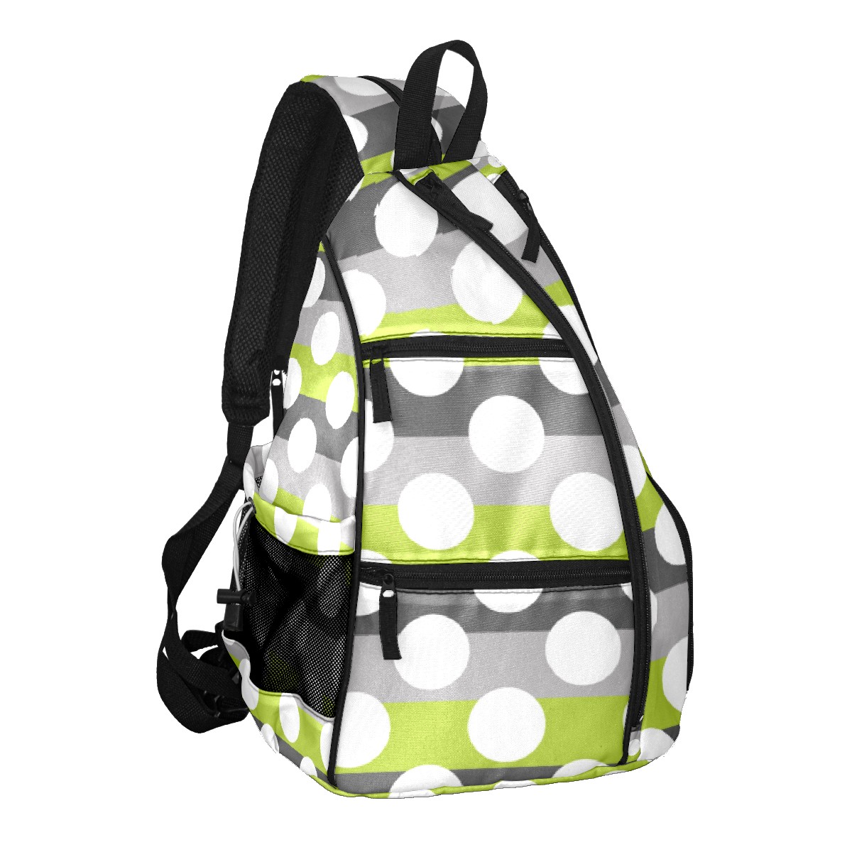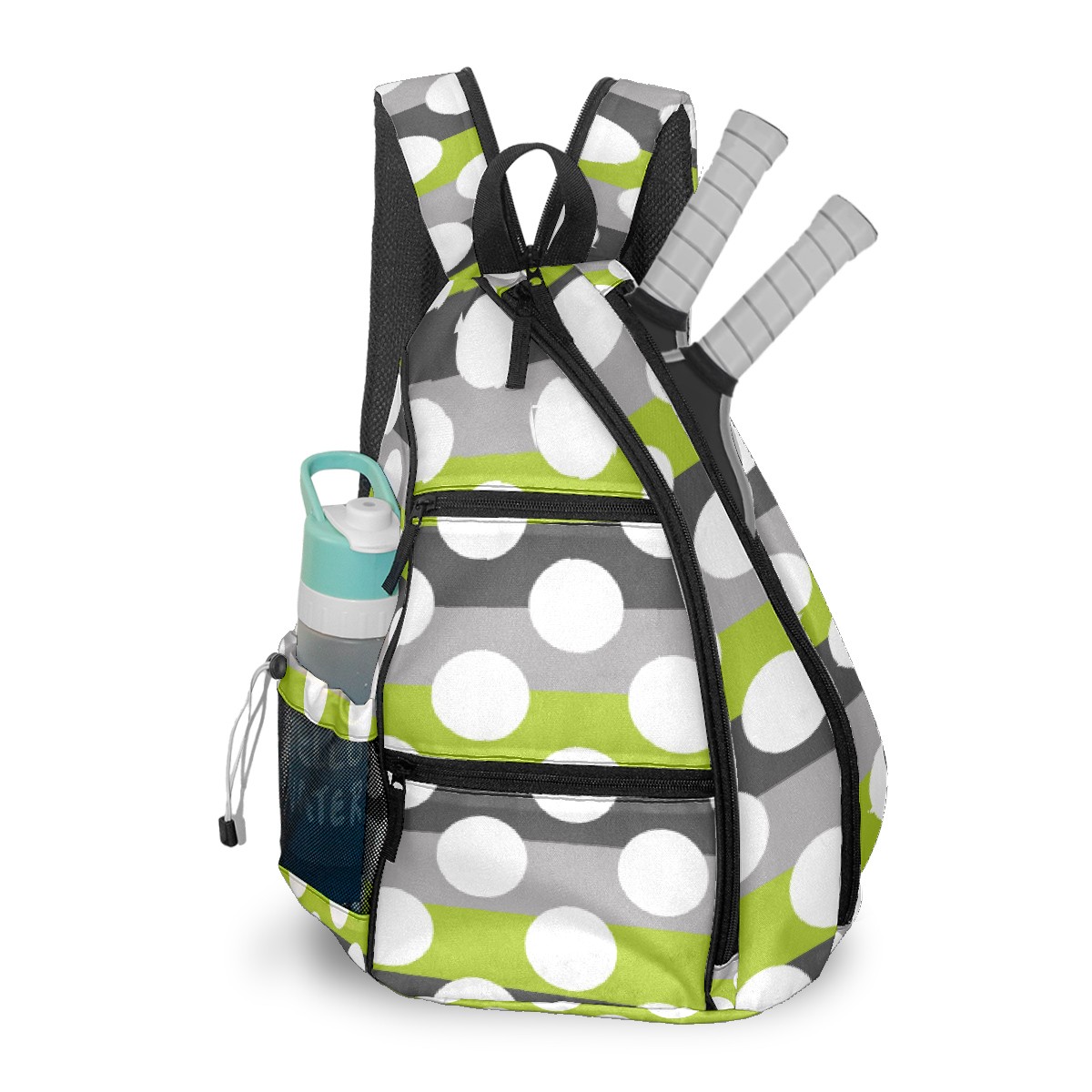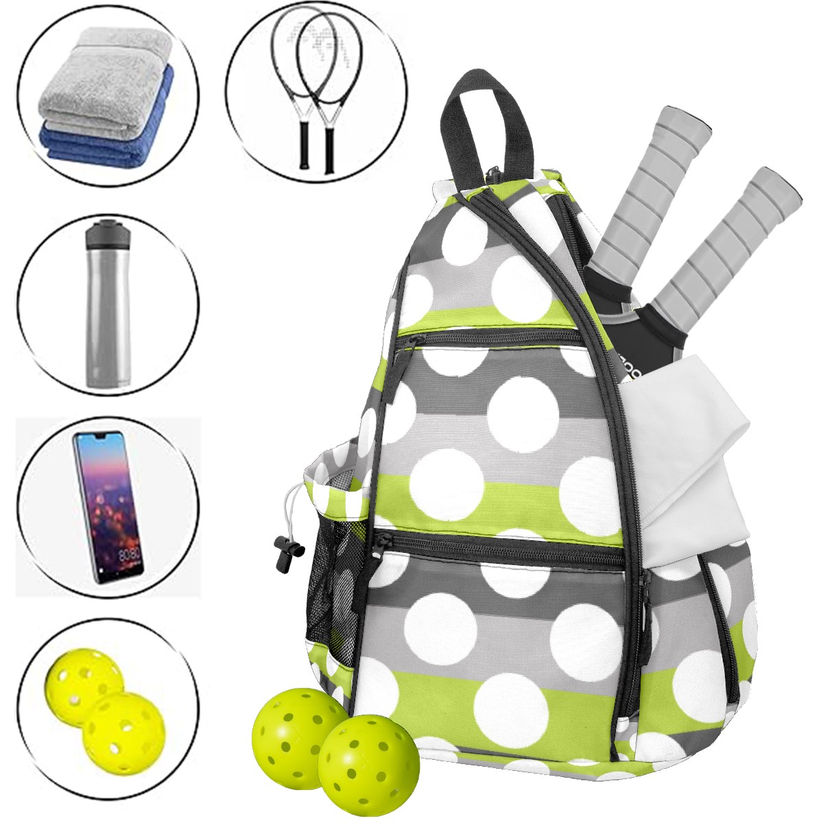 Pickleball Bag Lime Green Gray White Modern Polka Dot Pattern Pickle Ball Backpack for Women Men Premium Lightweight Crossbody Sling Bag Sports Backpack for Pickleball Paddle Tennis