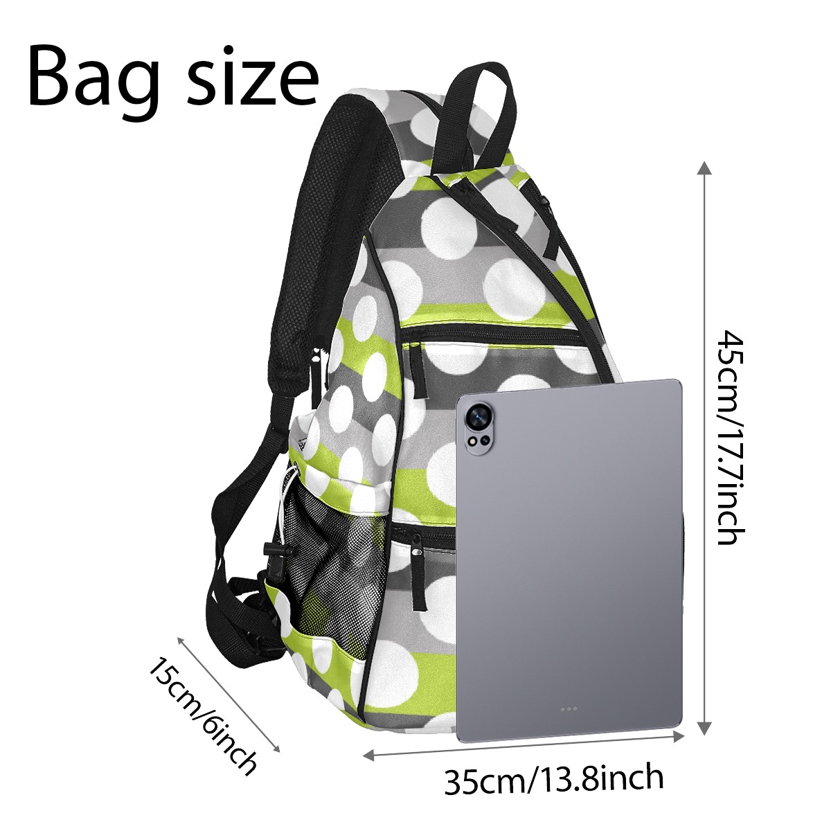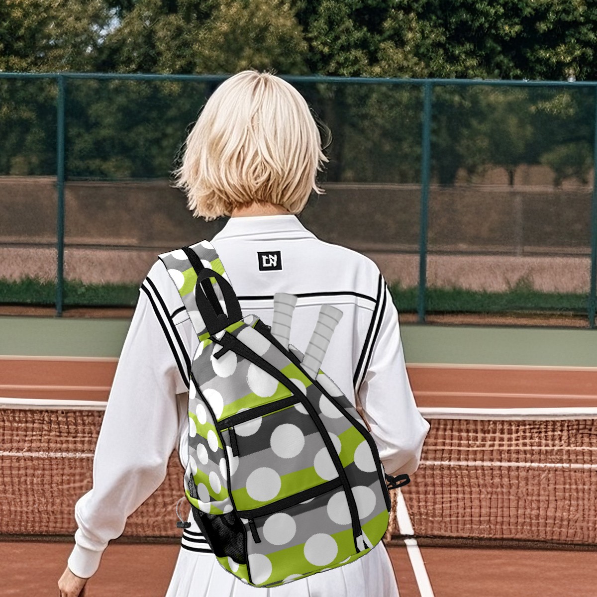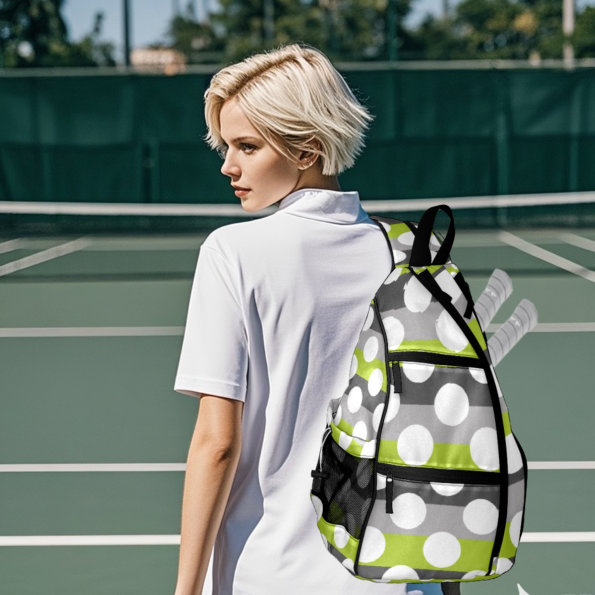 Pickleball Bag Lime Green Gray White Modern Polka Dot Pattern Pickle Ball Backpack for Women Men Premium Lightweight Crossbody Sling Bag Sports Backpack for Pickleball Paddle Tennis