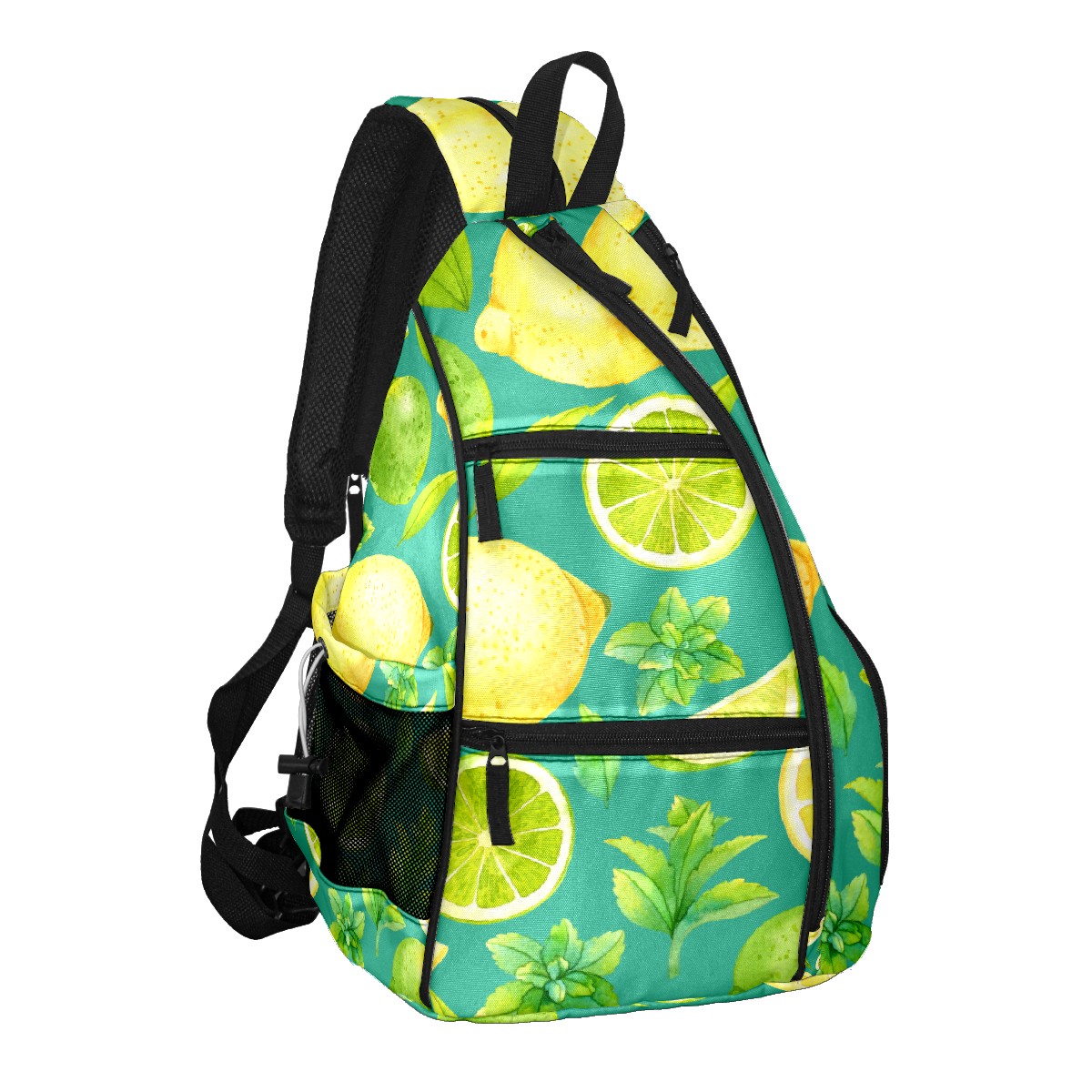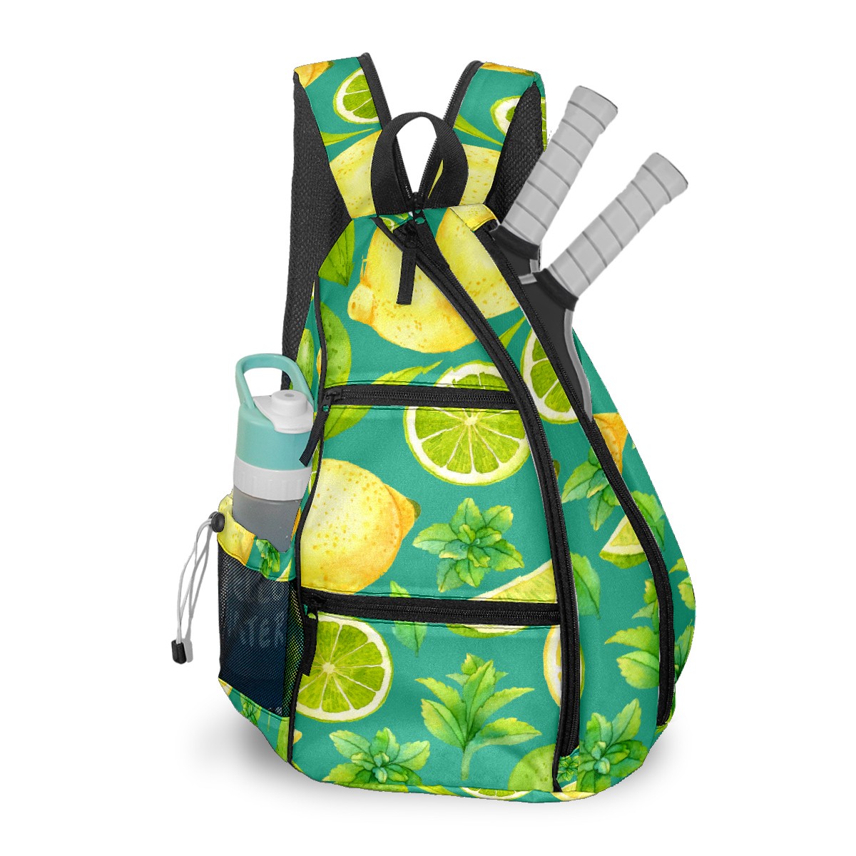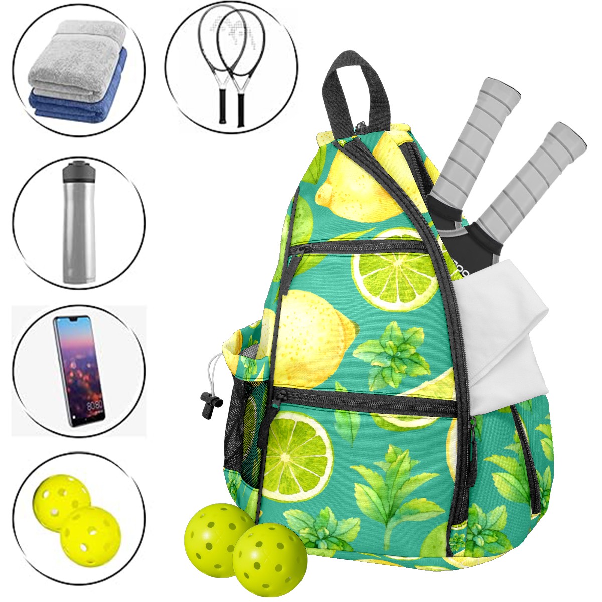 Pickleball Bag Watercolor Lemon Fruits Leaves Green Pickle Ball Backpack for Women Men Premium Lightweight Crossbody Sling Bag Sports Backpack for Pickleball Paddle Tennis