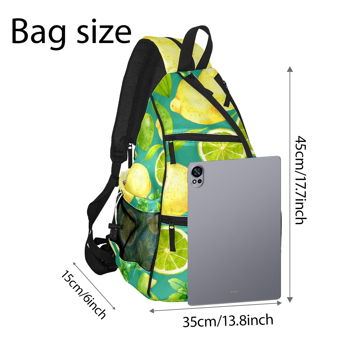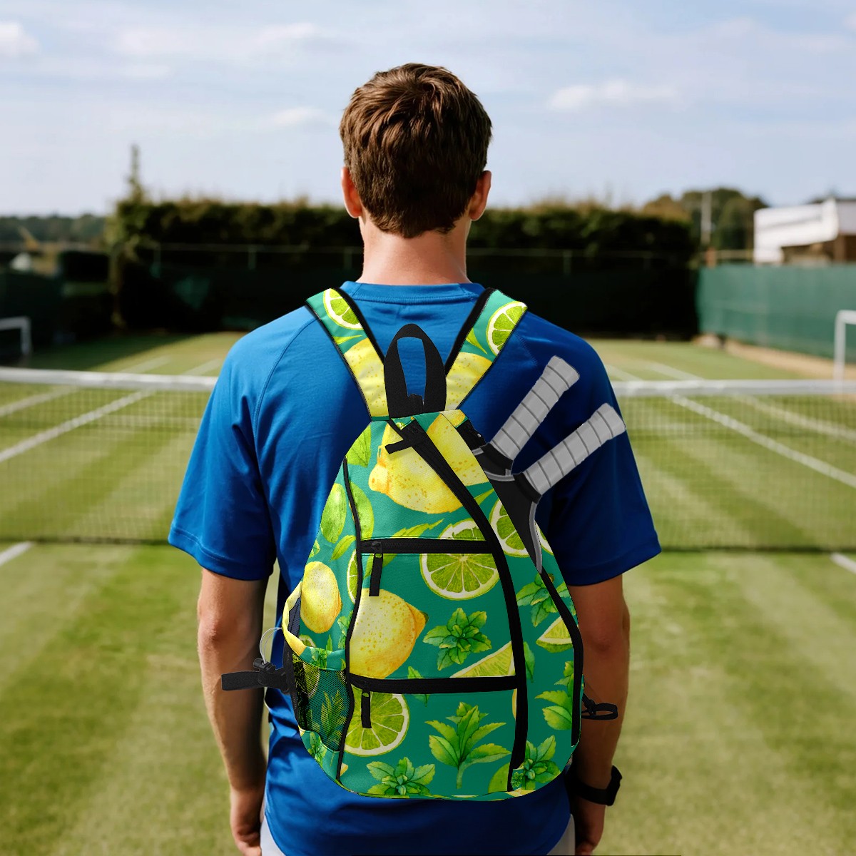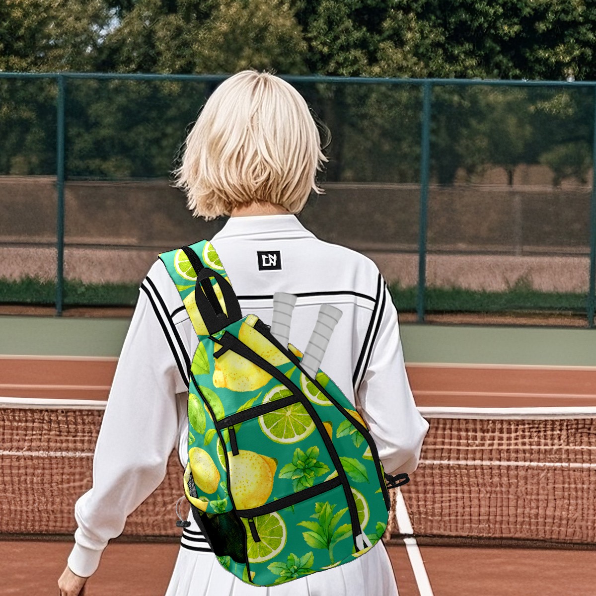Pickleball Bag Watercolor Lemon Fruits Leaves Green Pickle Ball Backpack for Women Men Premium Lightweight Crossbody Sling Bag Sports Backpack for Pickleball Paddle Tennis