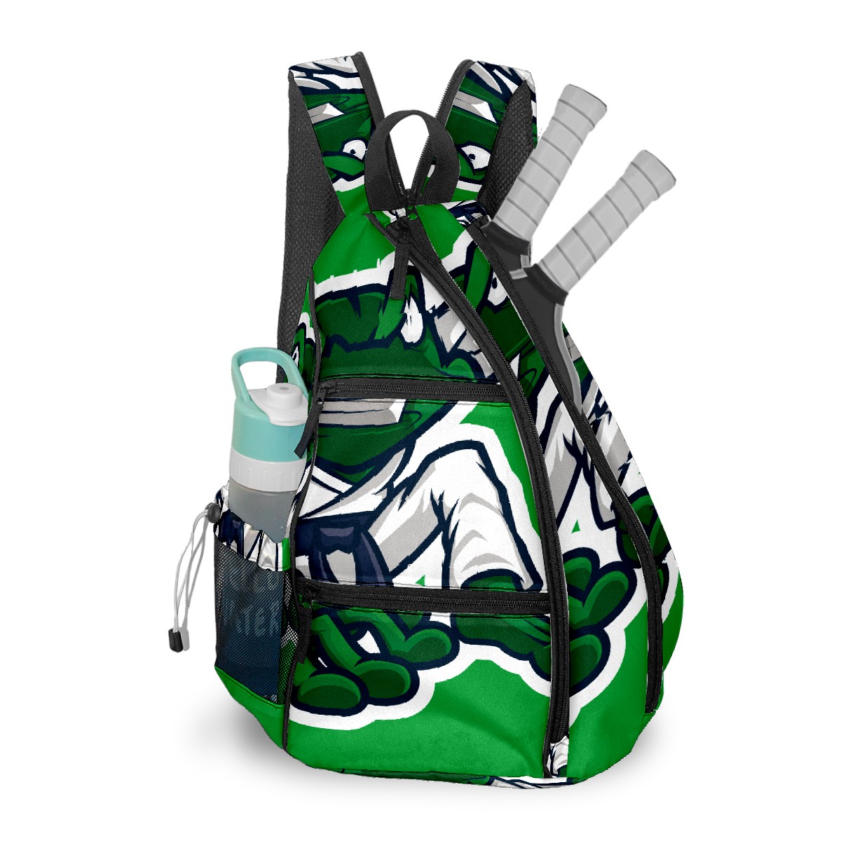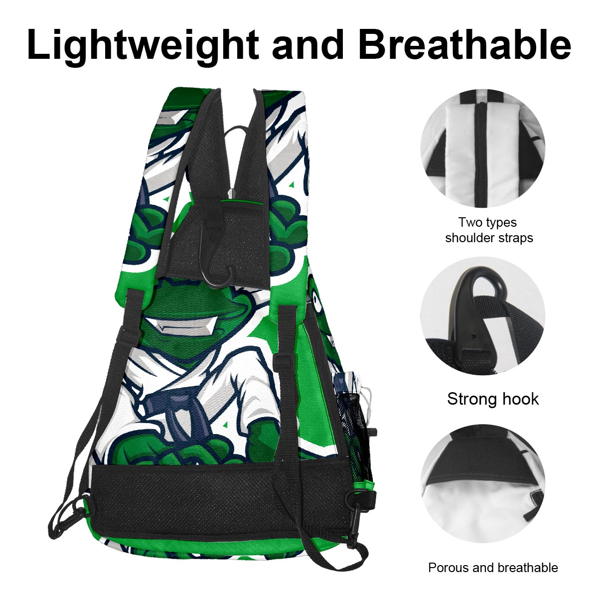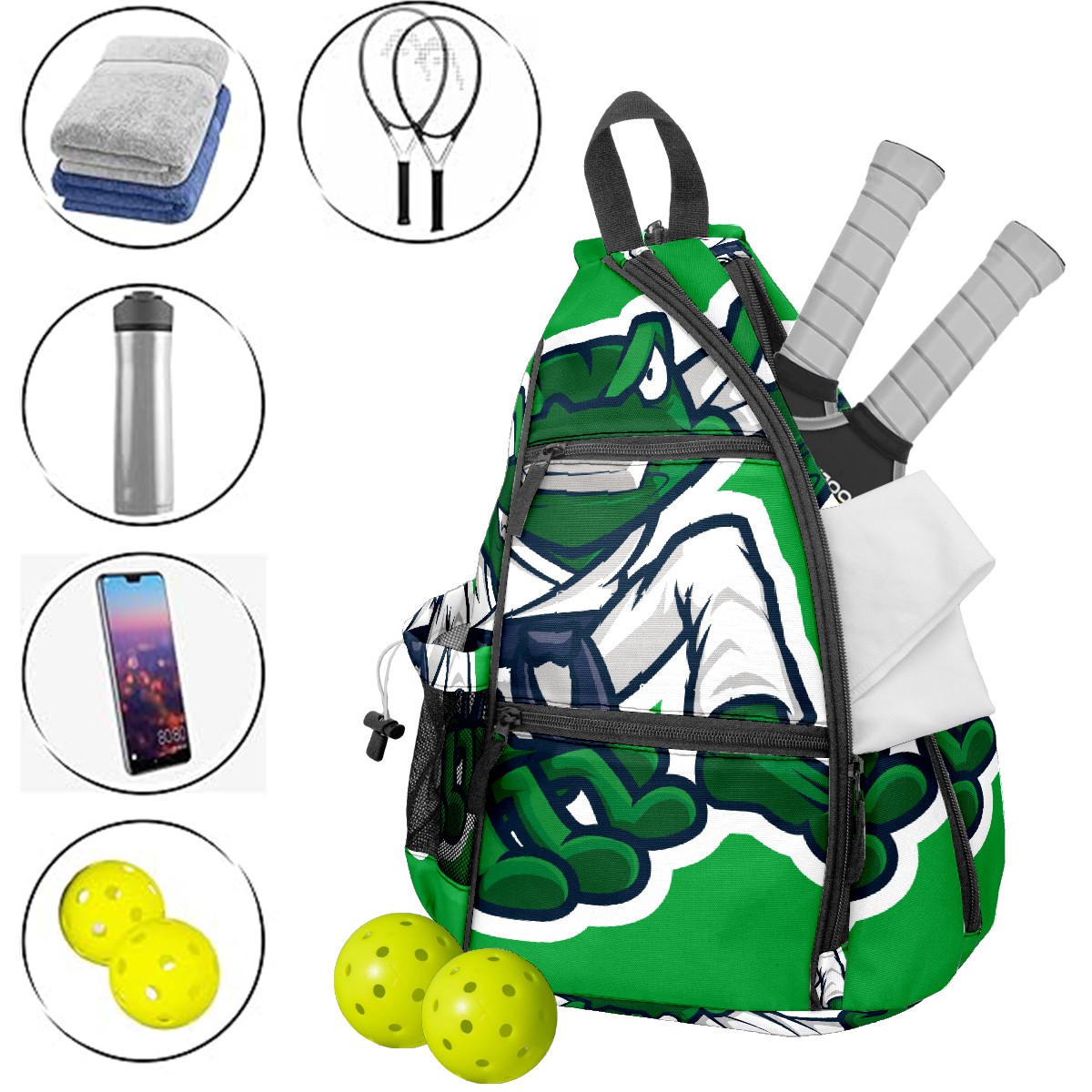 Pickleball Bag Green Frog Martial Art Mascot Pickle Ball Backpack for Women Men Premium Lightweight Crossbody Sling Bag Sports Backpack for Pickleball Paddle Tennis
