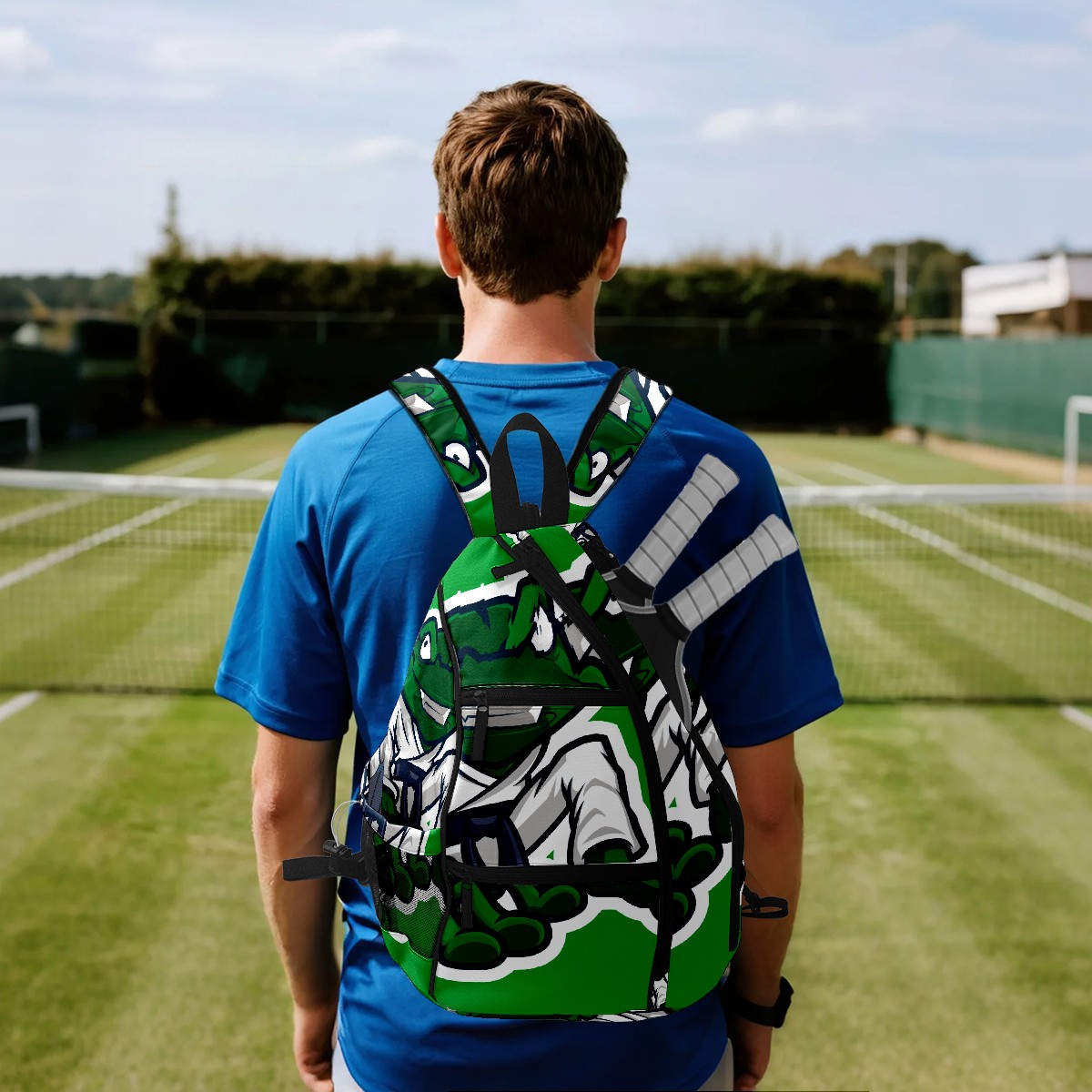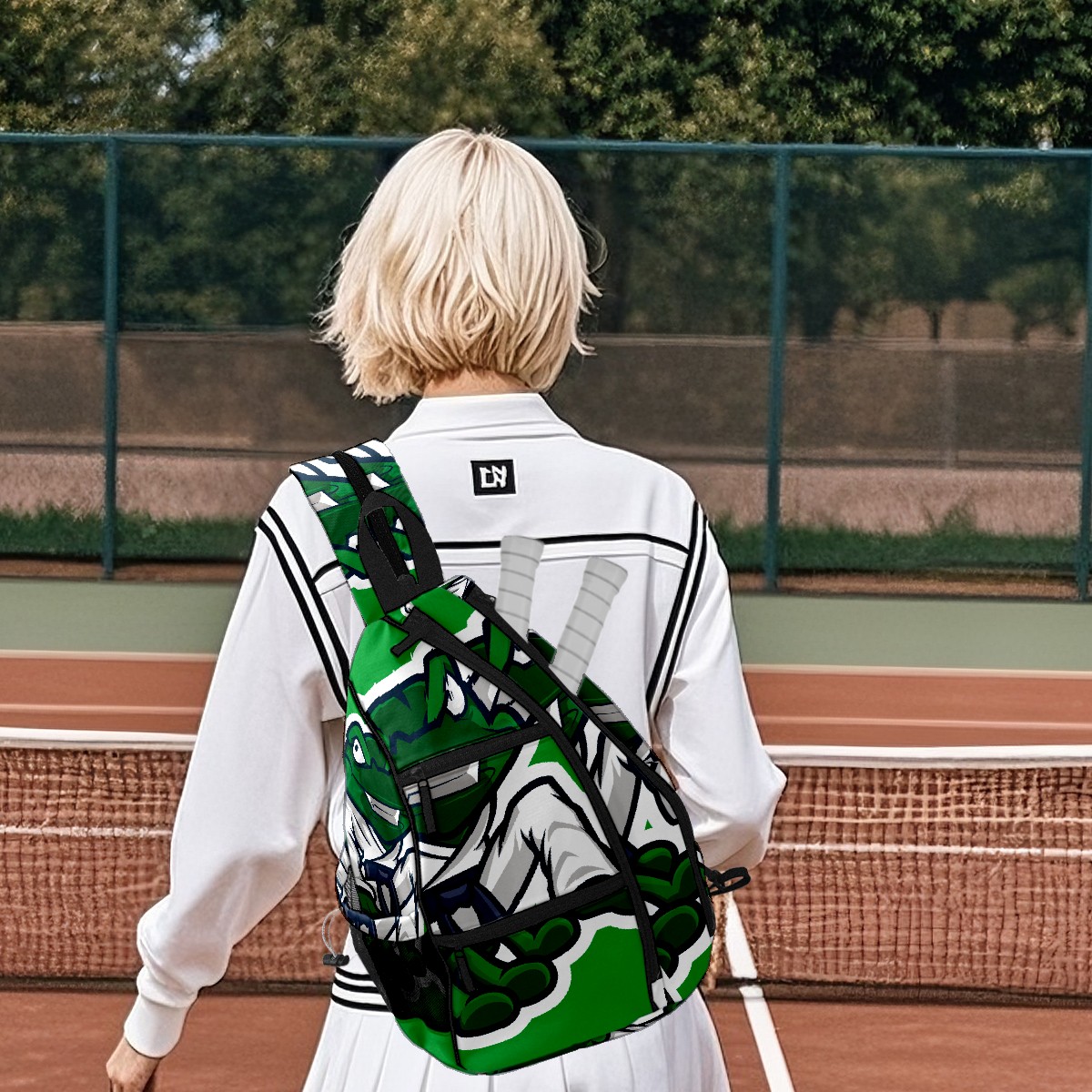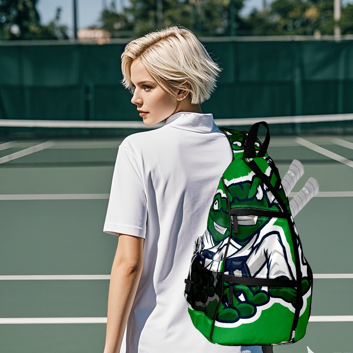 Pickleball Bag Green Frog Martial Art Mascot Pickle Ball Backpack for Women Men Premium Lightweight Crossbody Sling Bag Sports Backpack for Pickleball Paddle Tennis