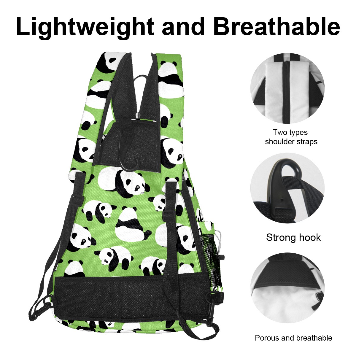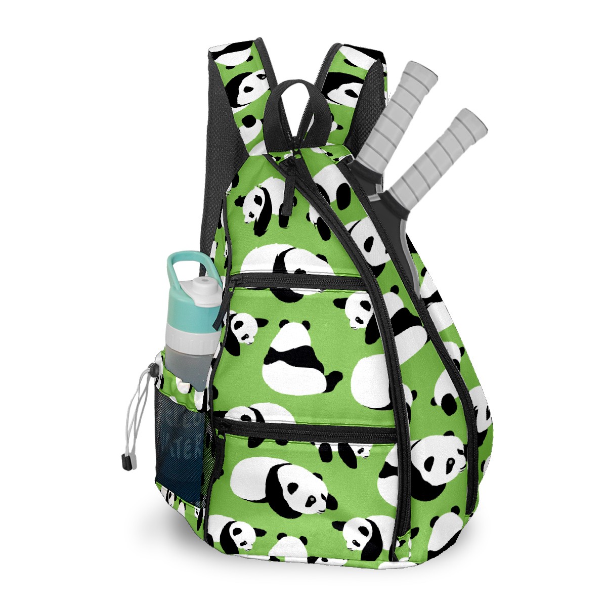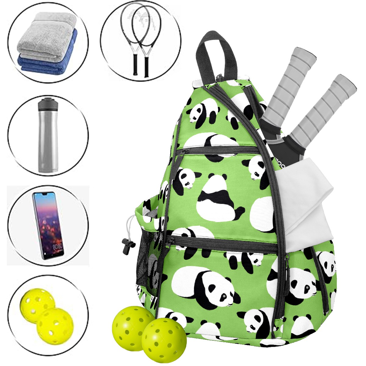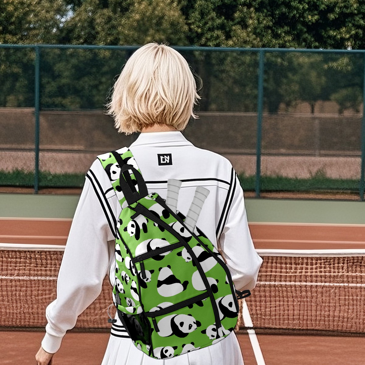 Pickleball Bag Pandas Green Pattern Pickle Ball Backpack for Women Men Premium Lightweight Crossbody Sling Bag Sports Backpack for Pickleball Paddle Tennis