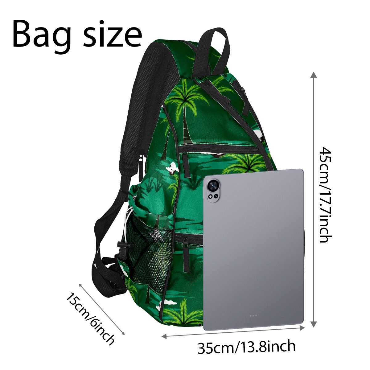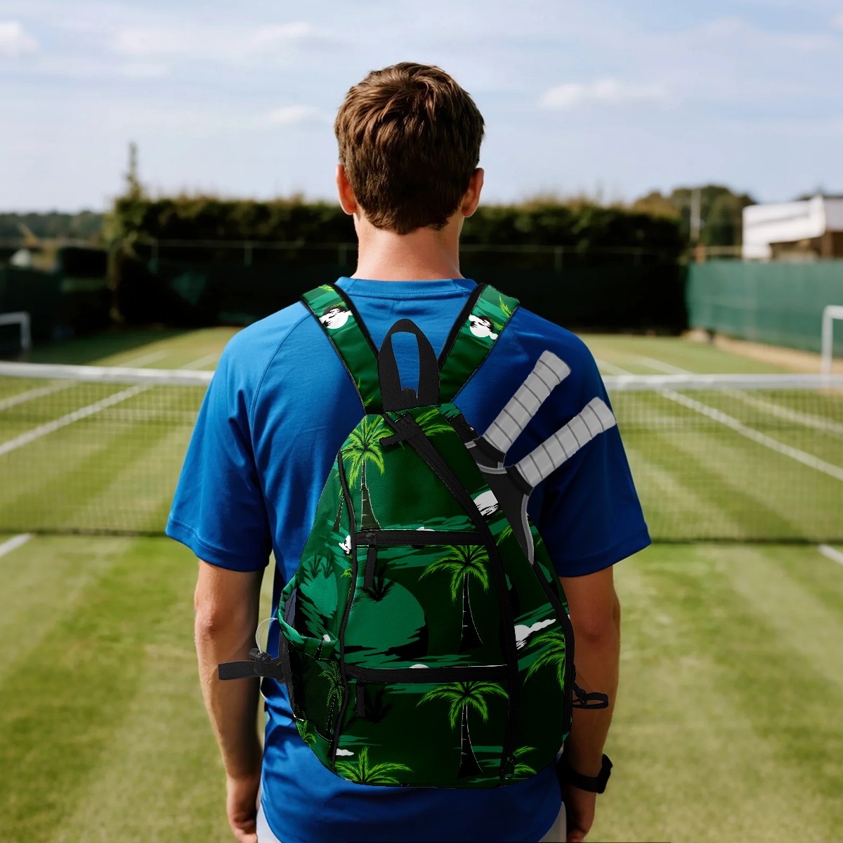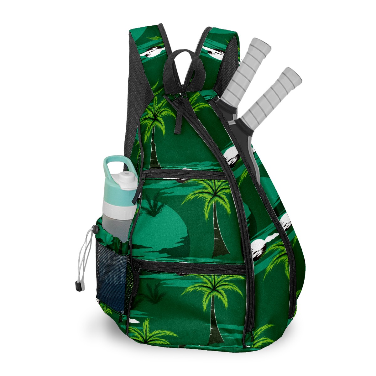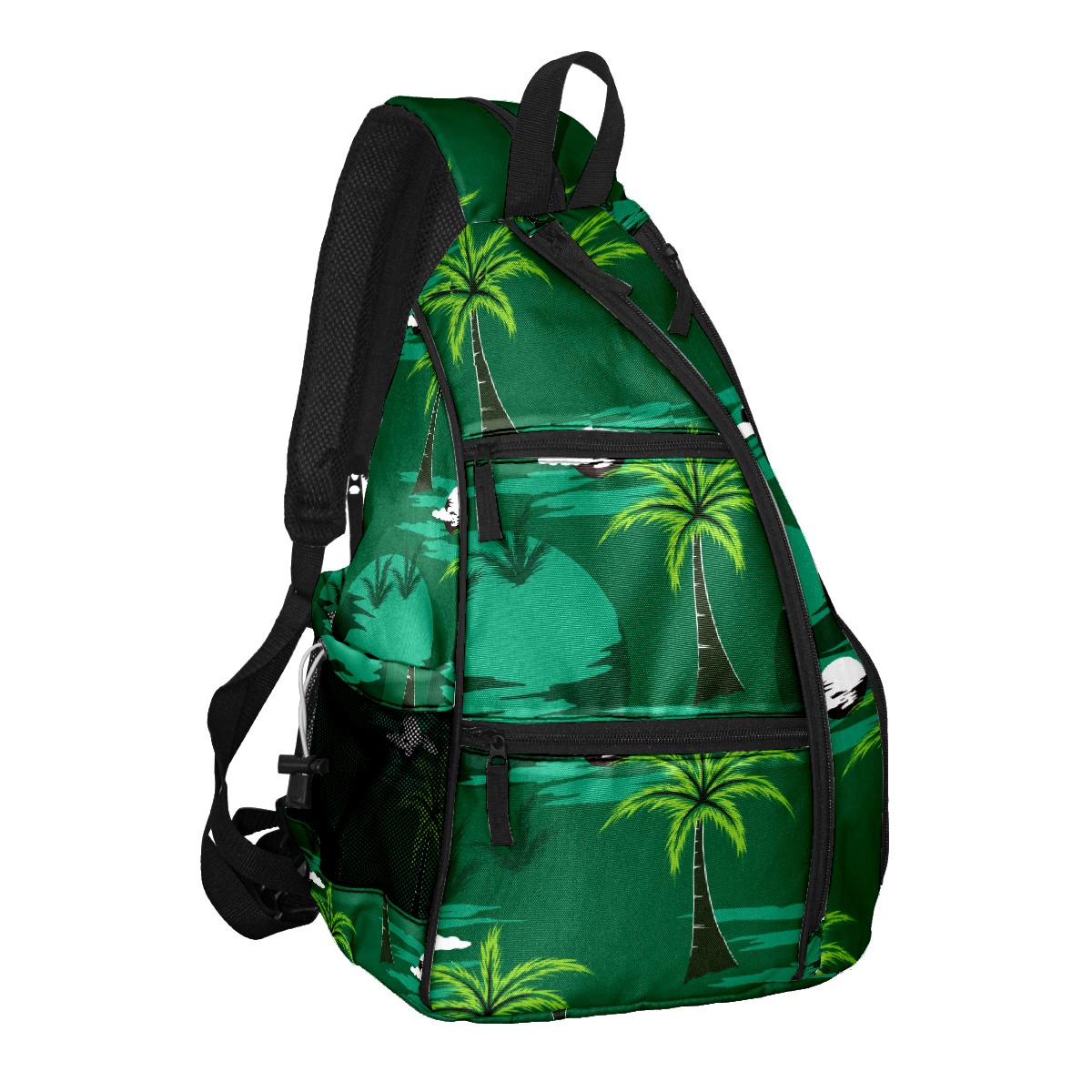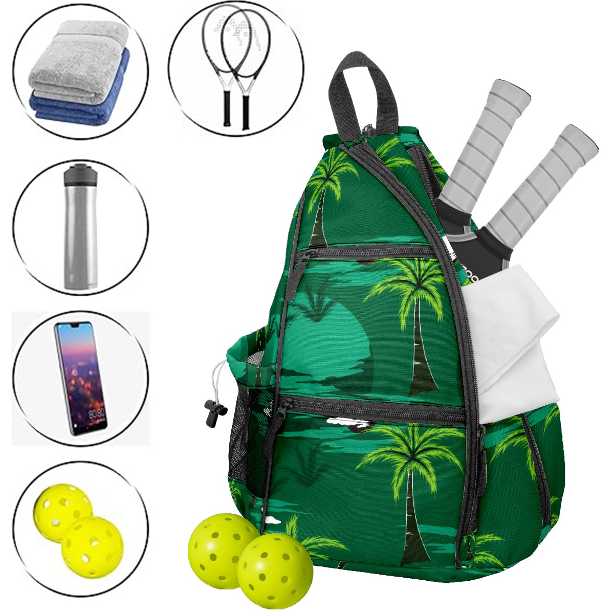 Pickleball Bag Green Tropical Island Paradise Coconut Trees Pickle Ball Backpack for Women Men Premium Lightweight Crossbody Sling Bag Sports Backpack for Pickleball Paddle Tennis