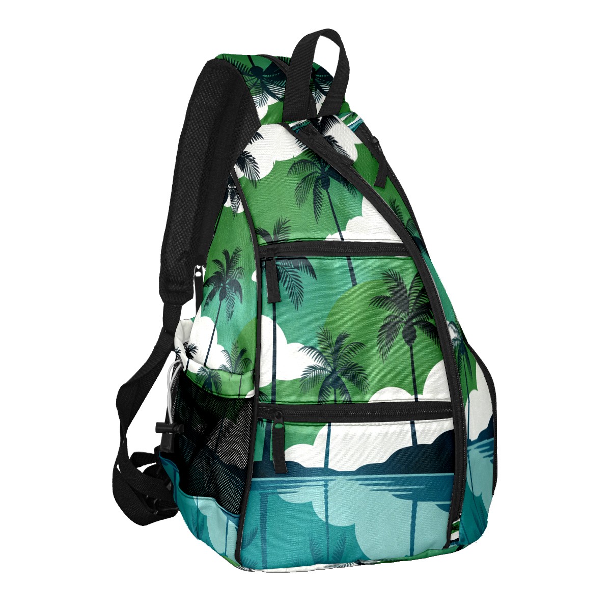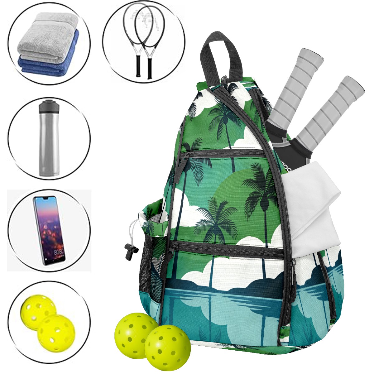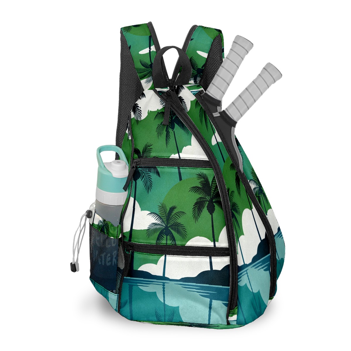 Pickleball Bag Palm Trees Teal Green Pickle Ball Backpack for Women Men Premium Lightweight Crossbody Sling Bag Sports Backpack for Pickleball Paddle Tennis