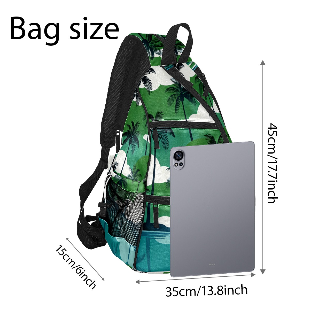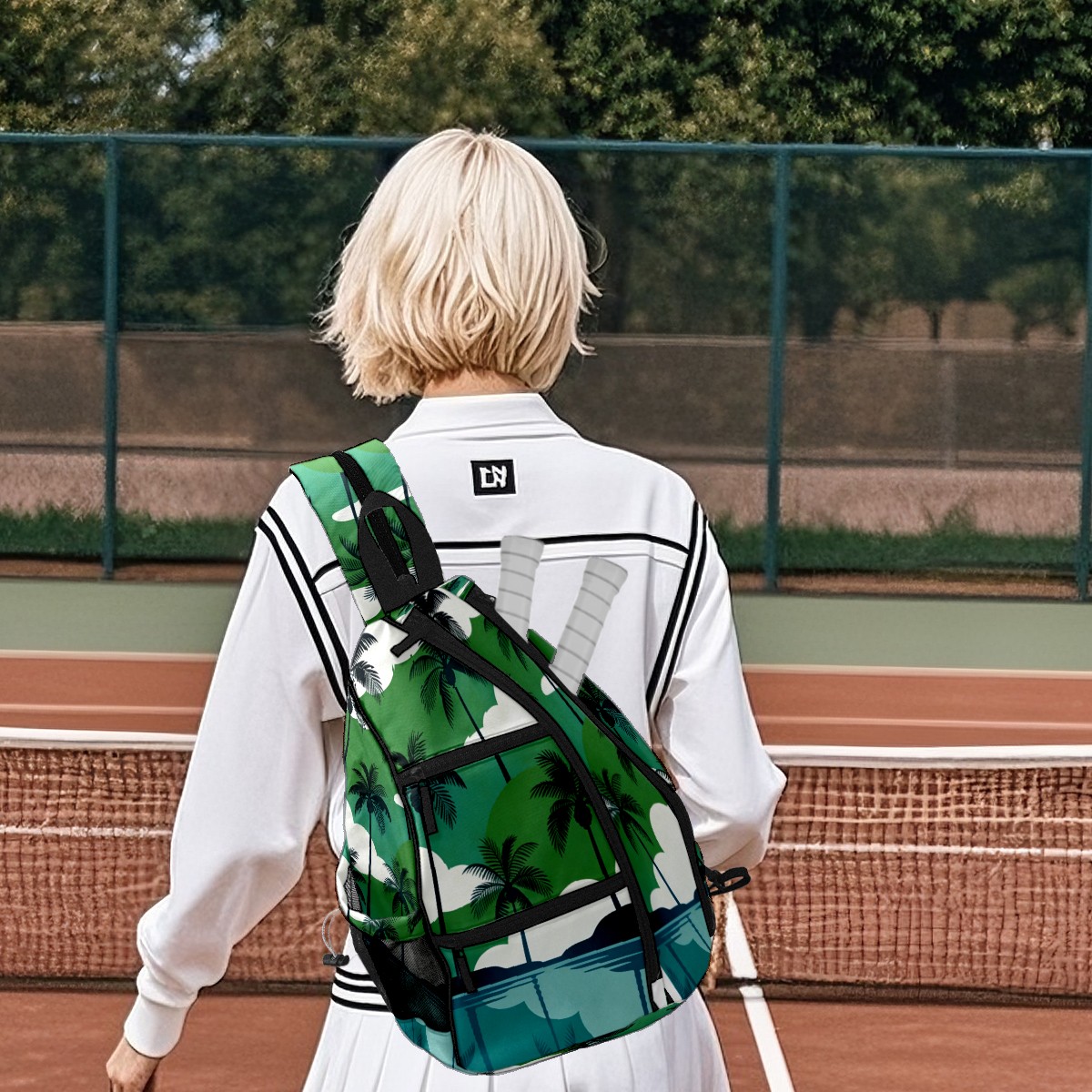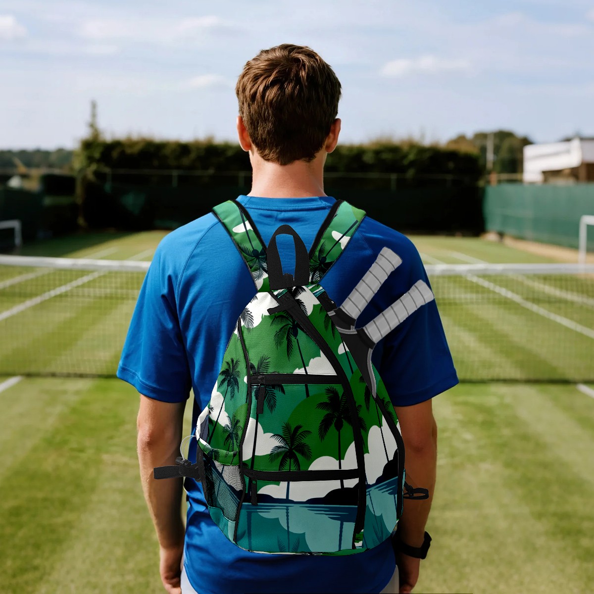 Pickleball Bag Palm Trees Teal Green Pickle Ball Backpack for Women Men Premium Lightweight Crossbody Sling Bag Sports Backpack for Pickleball Paddle Tennis