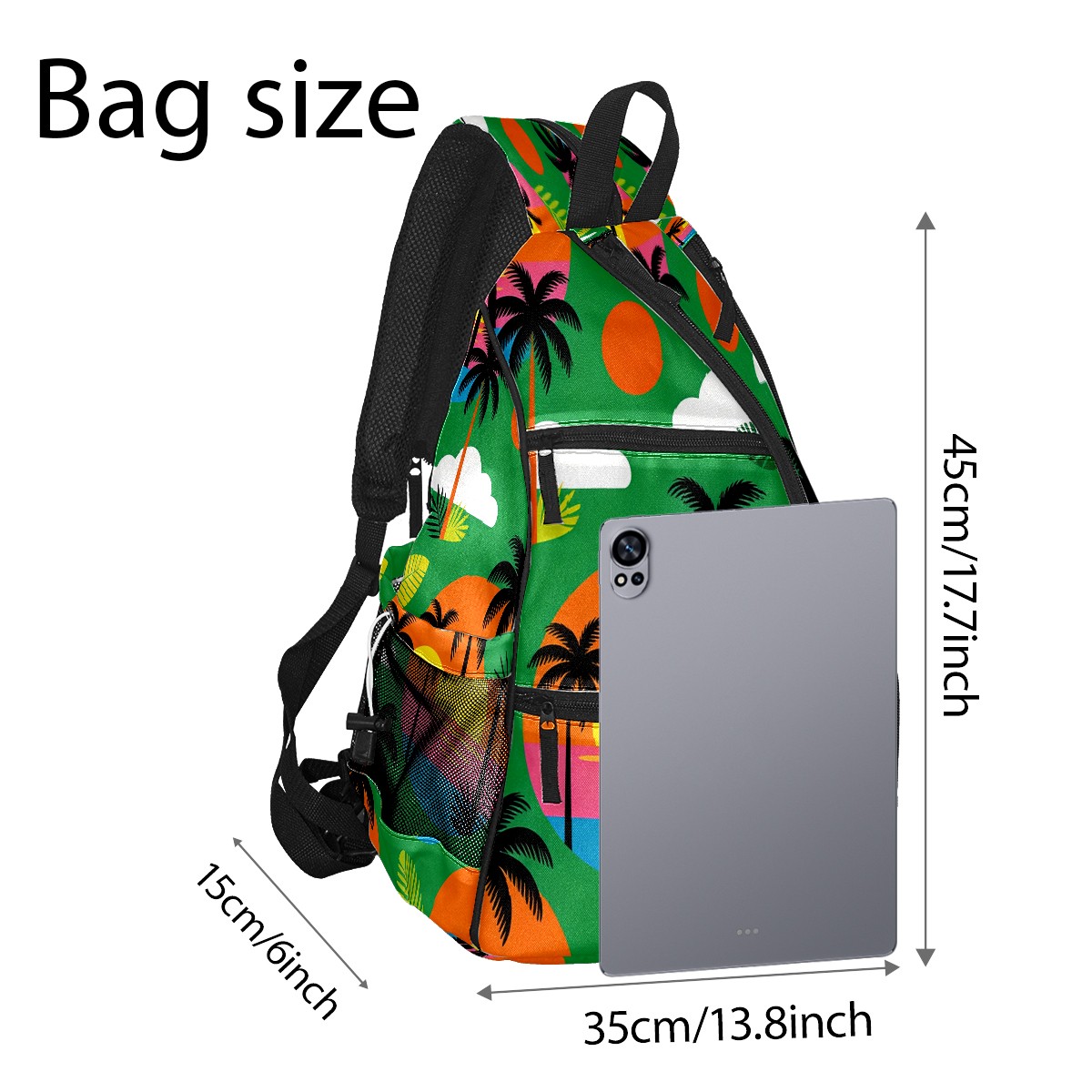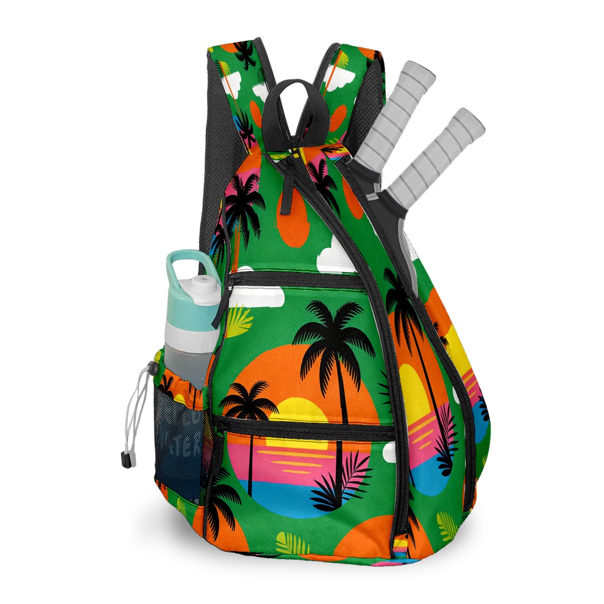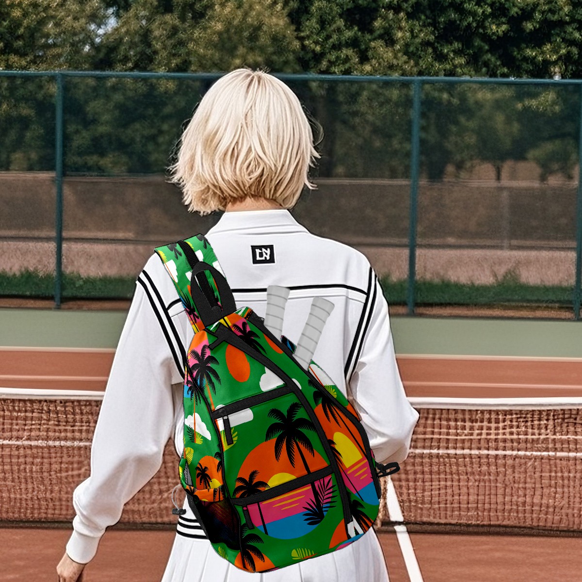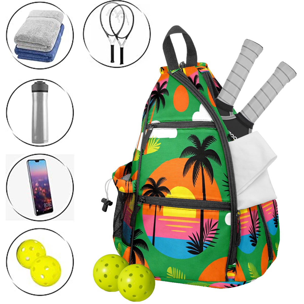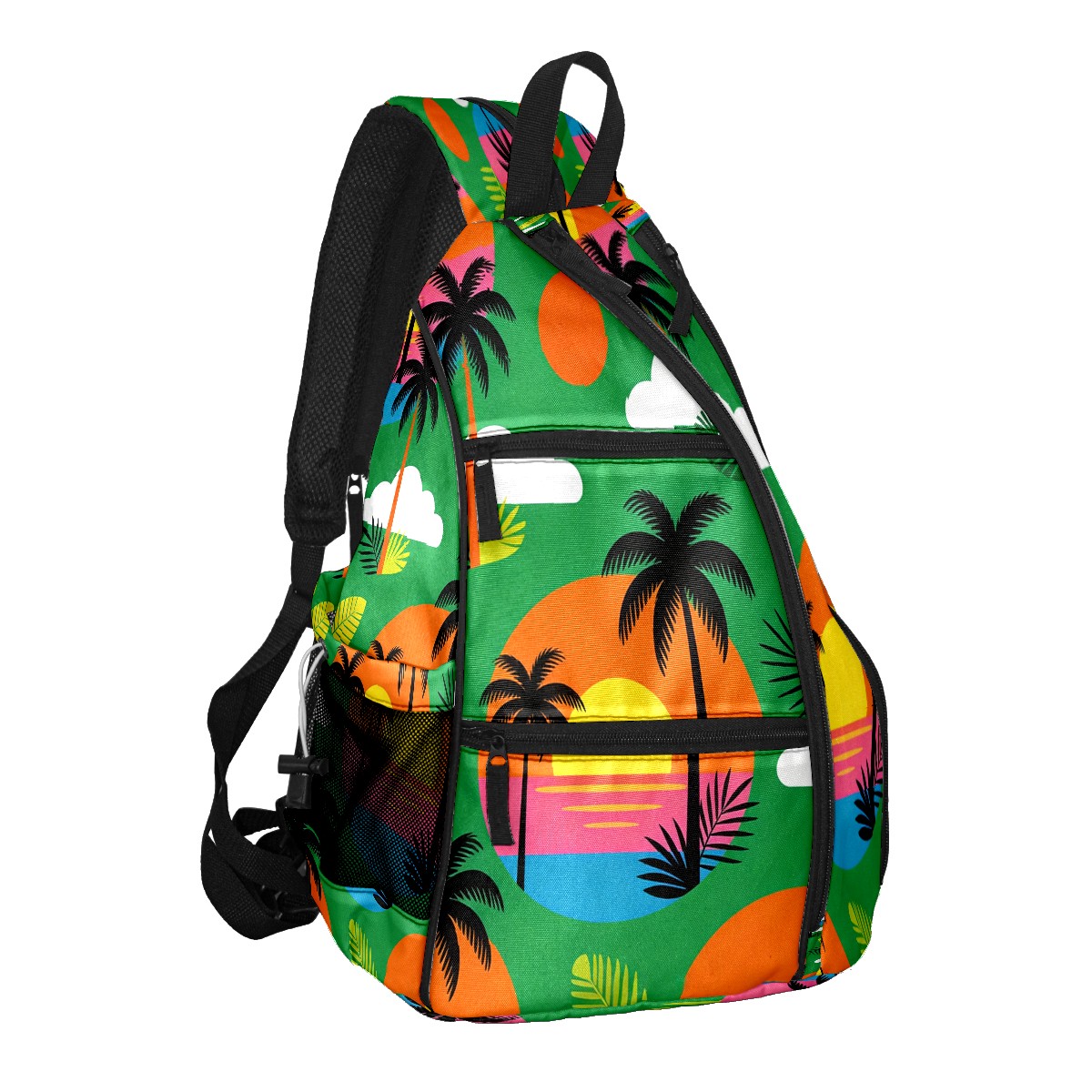 Pickleball Bag Tropical Palm Trees Green Pickle Ball Backpack for Women Men Premium Lightweight Crossbody Sling Bag Sports Backpack for Pickleball Paddle Tennis