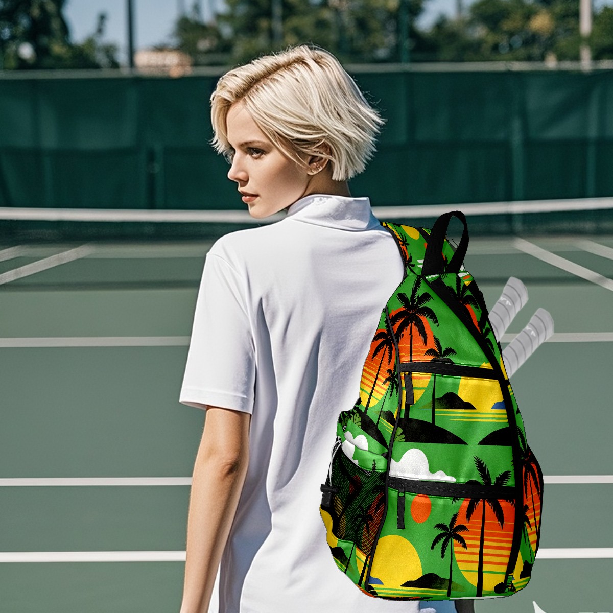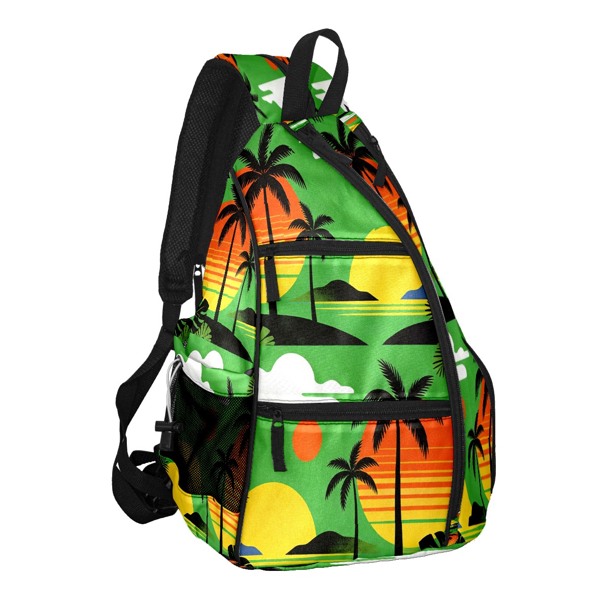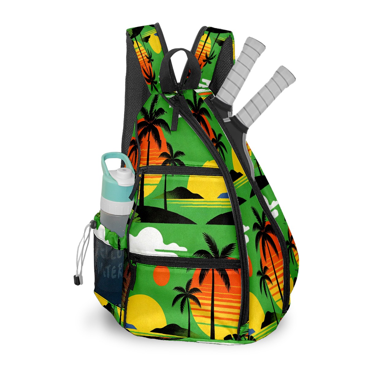 Pickleball Bag Tropical Palm Green Pickle Ball Backpack for Women Men Premium Lightweight Crossbody Sling Bag Sports Backpack for Pickleball Paddle Tennis