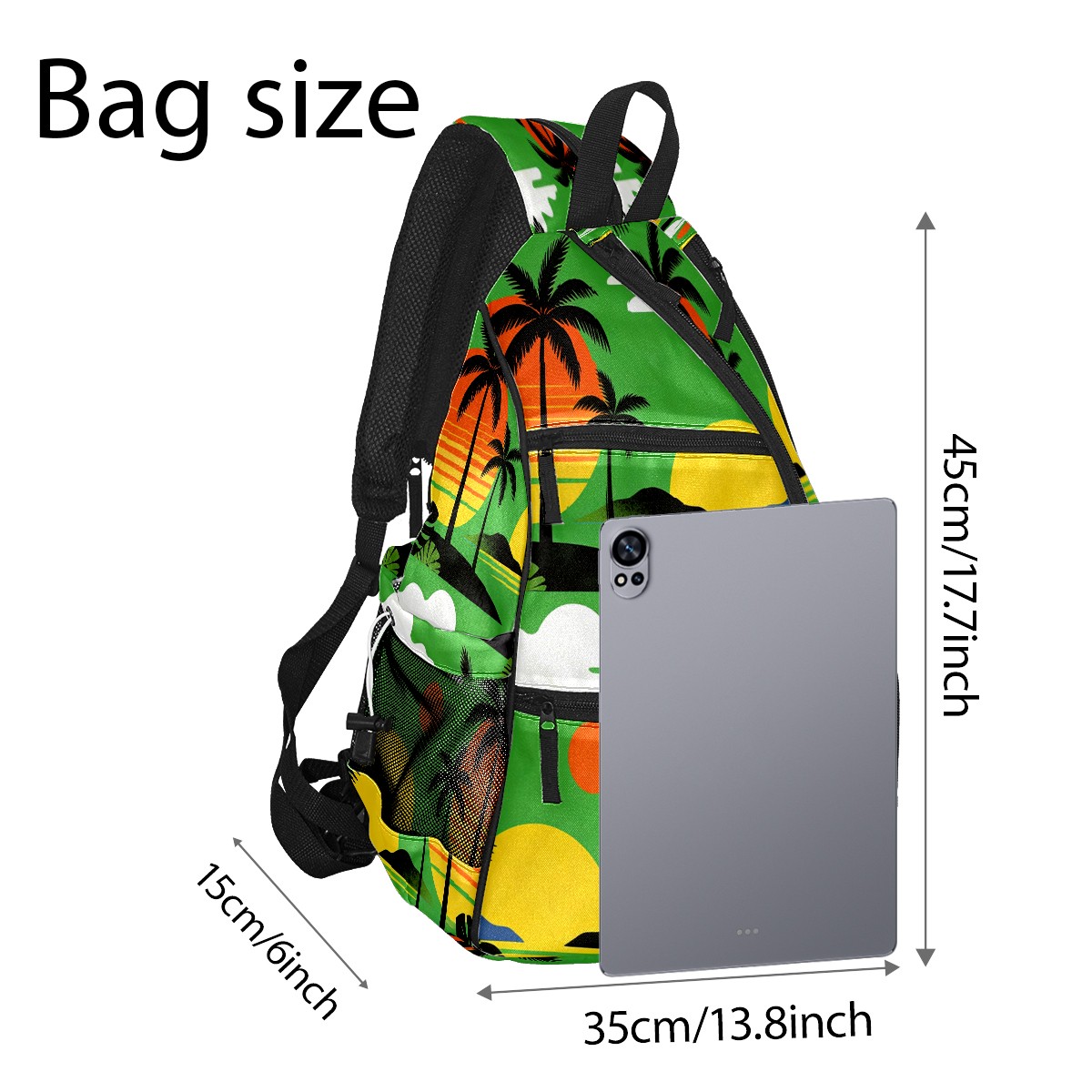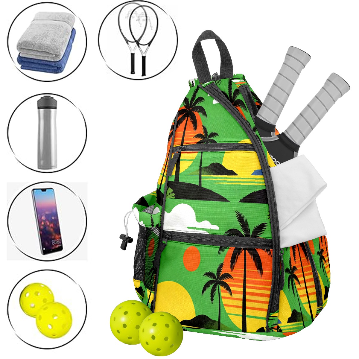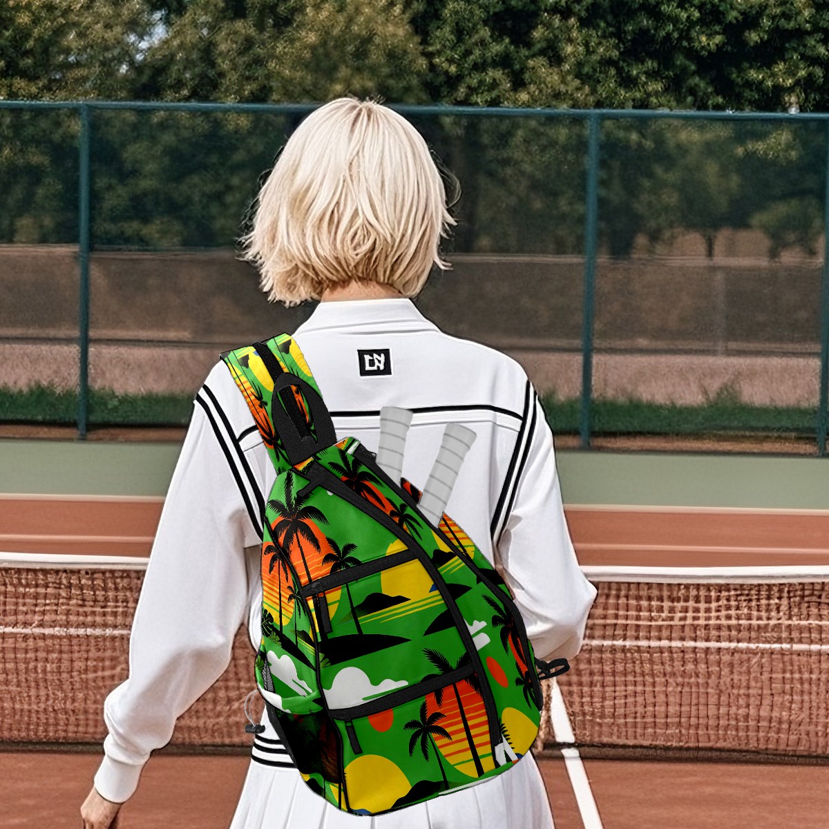 Pickleball Bag Tropical Palm Green Pickle Ball Backpack for Women Men Premium Lightweight Crossbody Sling Bag Sports Backpack for Pickleball Paddle Tennis