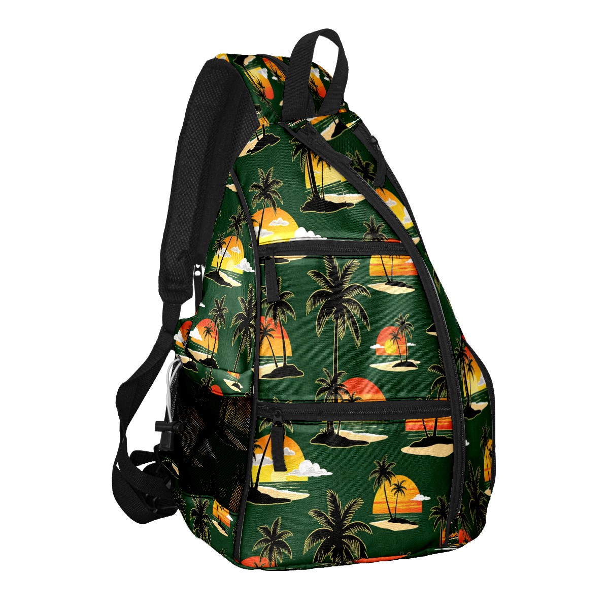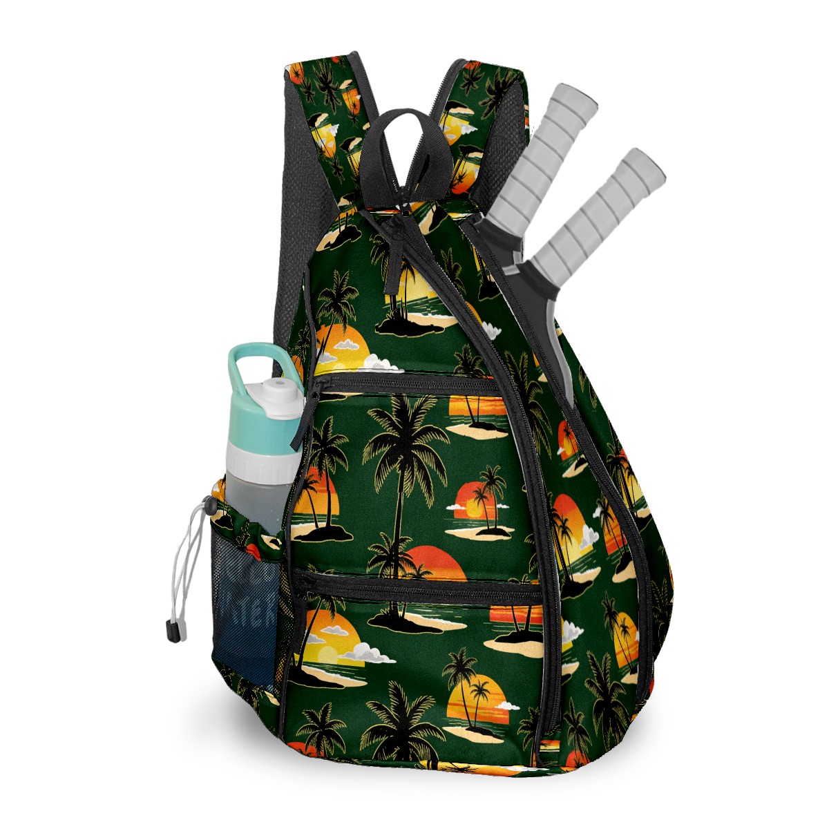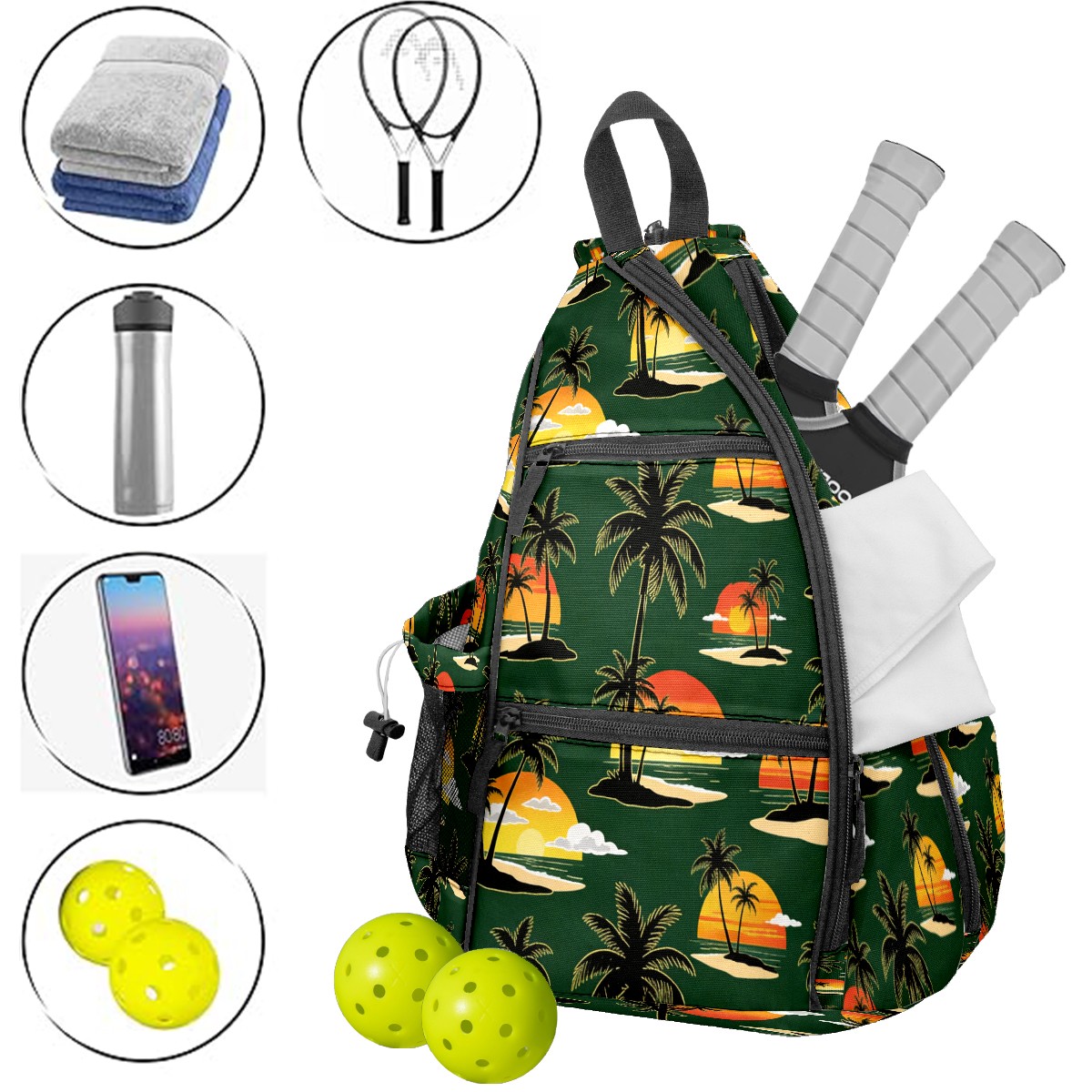 Pickleball Bag Palm Trees Dark Green Pickle Ball Backpack for Women Men Premium Lightweight Crossbody Sling Bag Sports Backpack for Pickleball Paddle Tennis