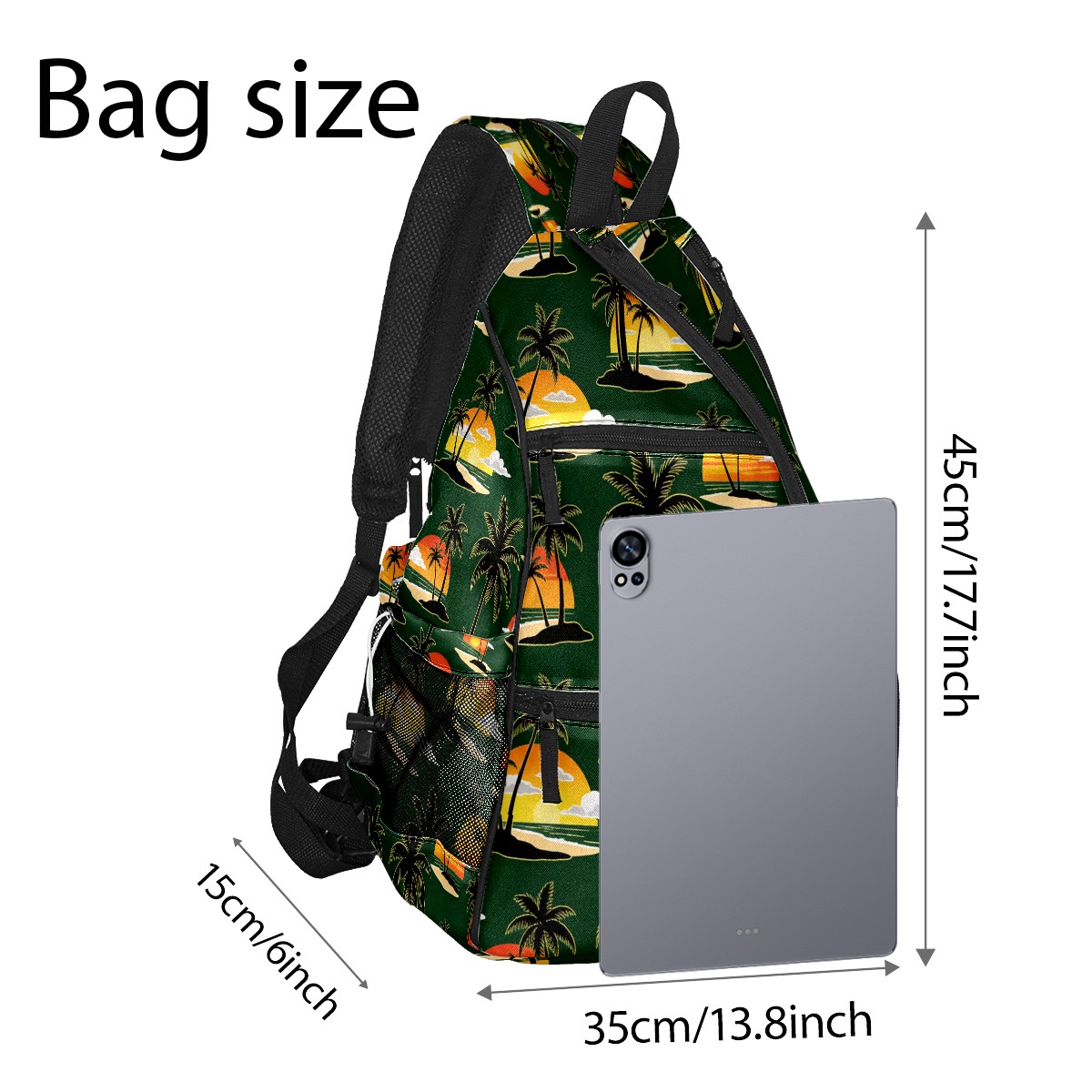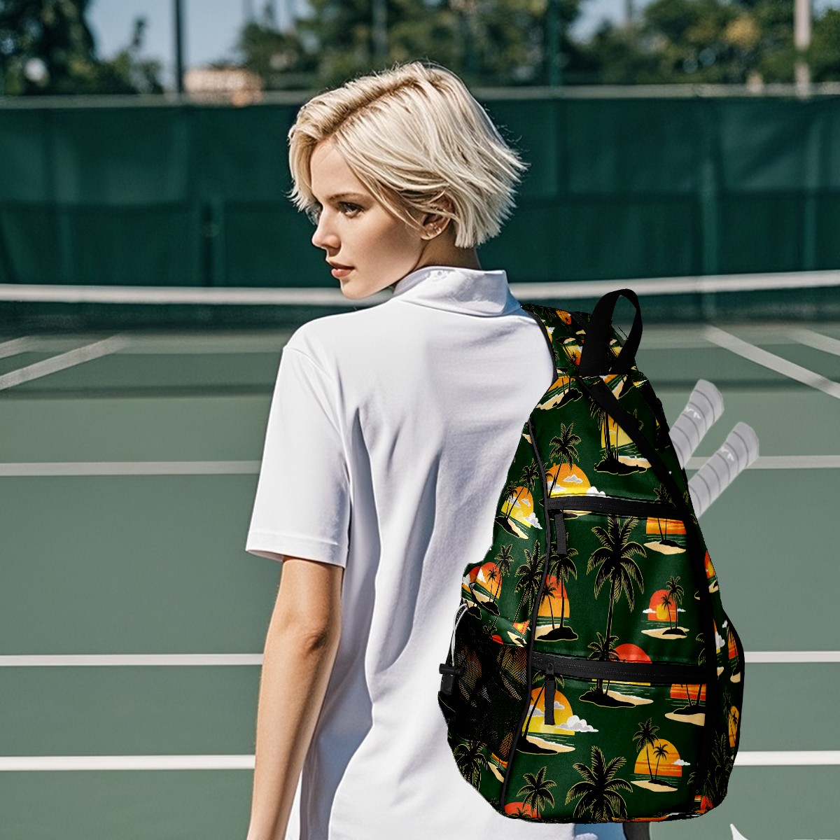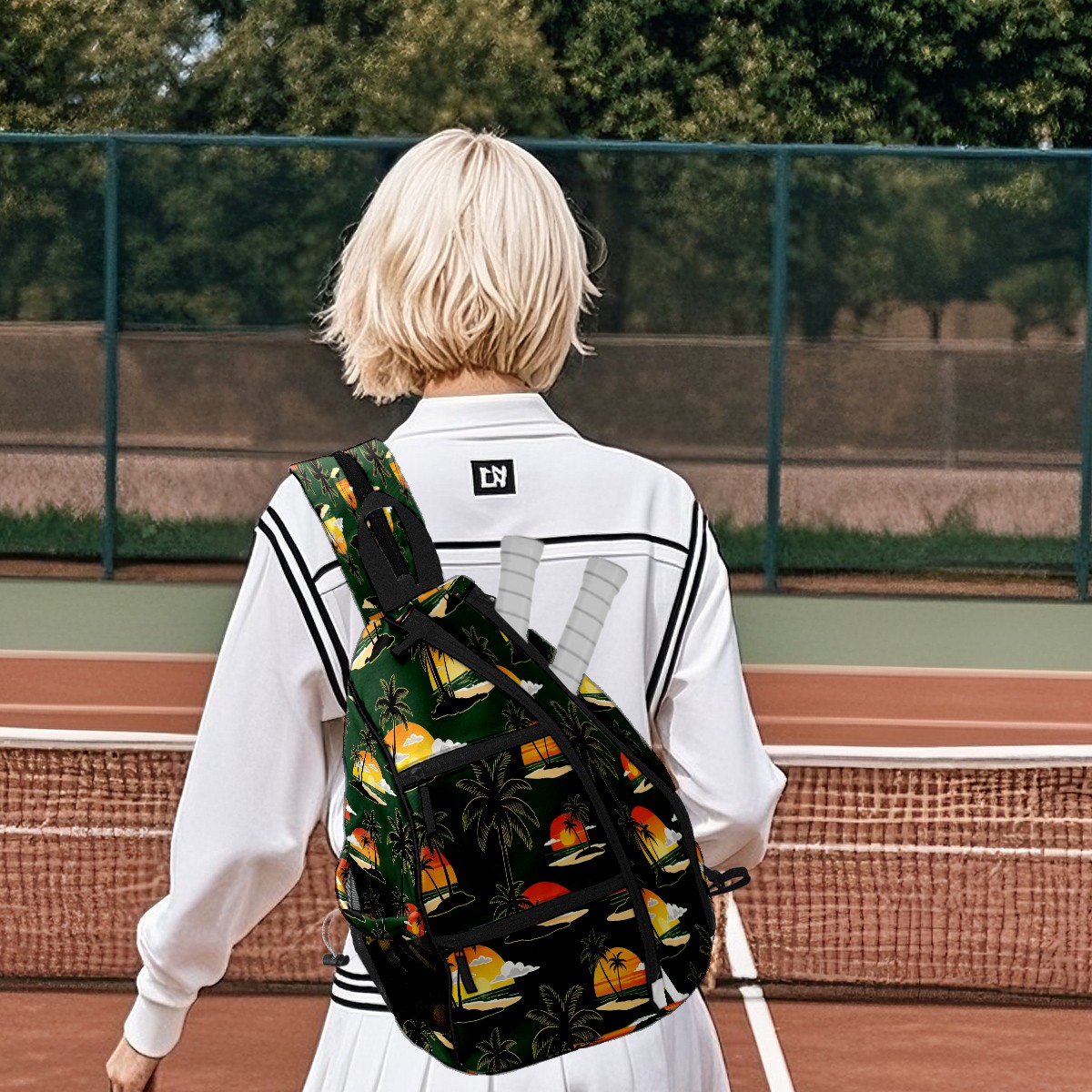 Pickleball Bag Palm Trees Dark Green Pickle Ball Backpack for Women Men Premium Lightweight Crossbody Sling Bag Sports Backpack for Pickleball Paddle Tennis