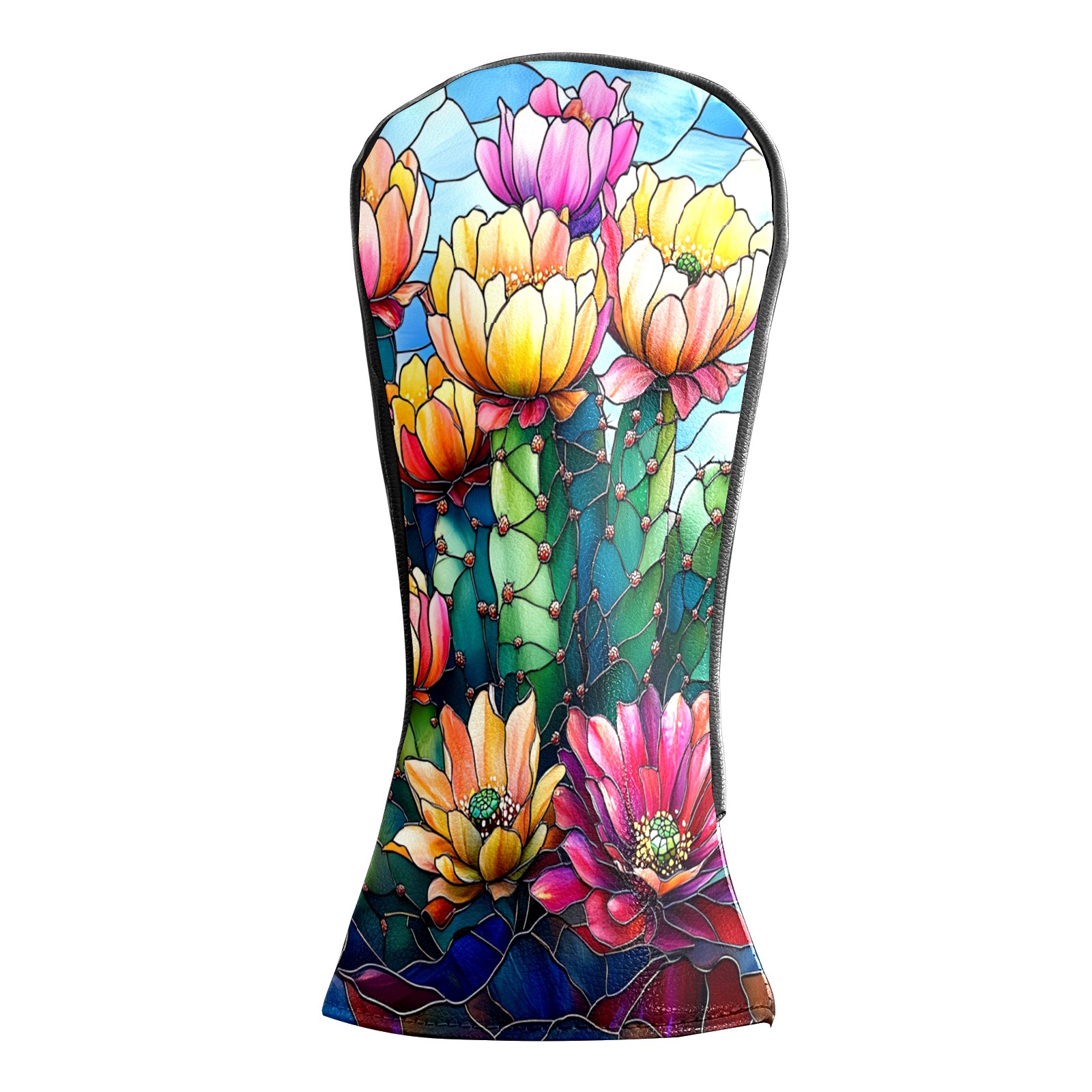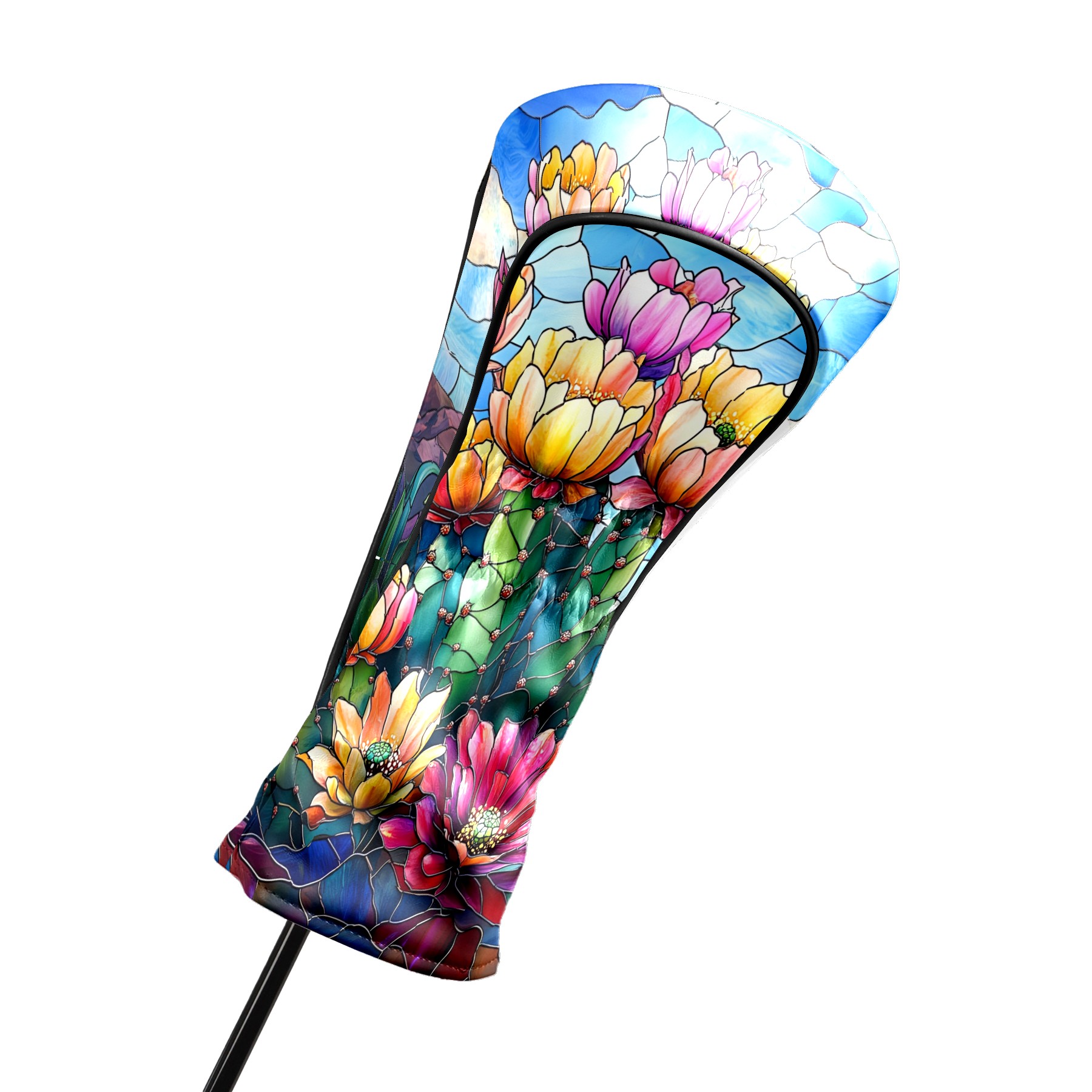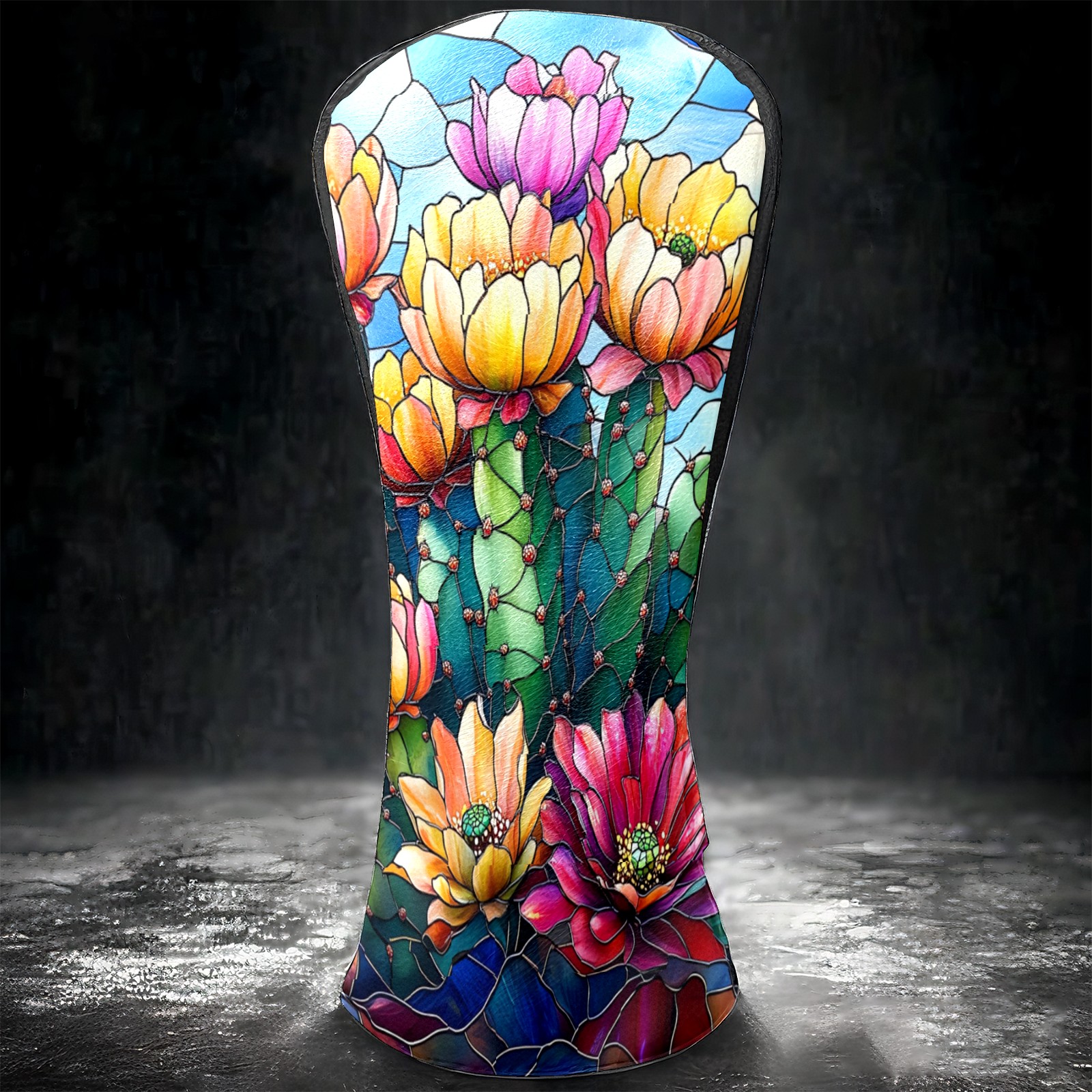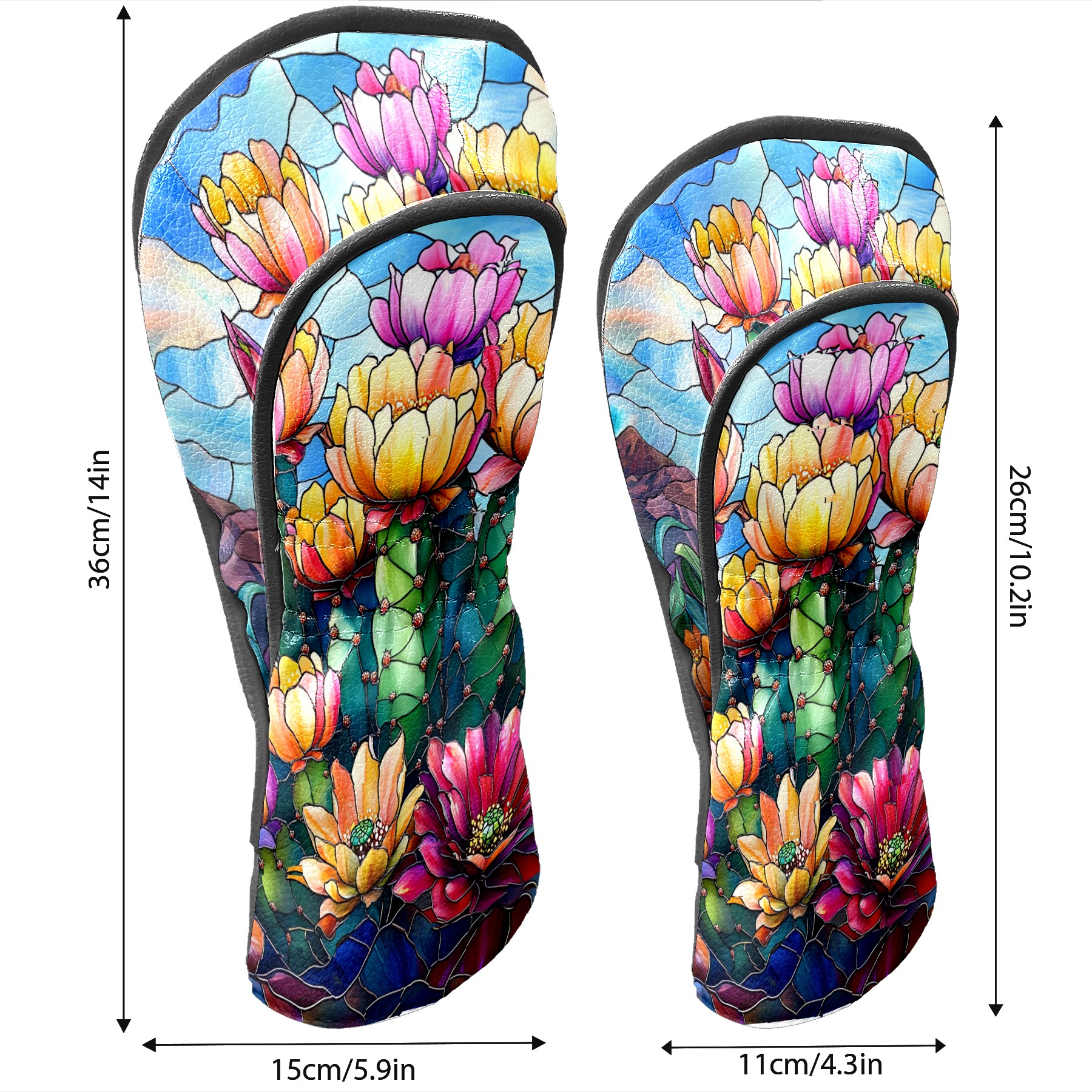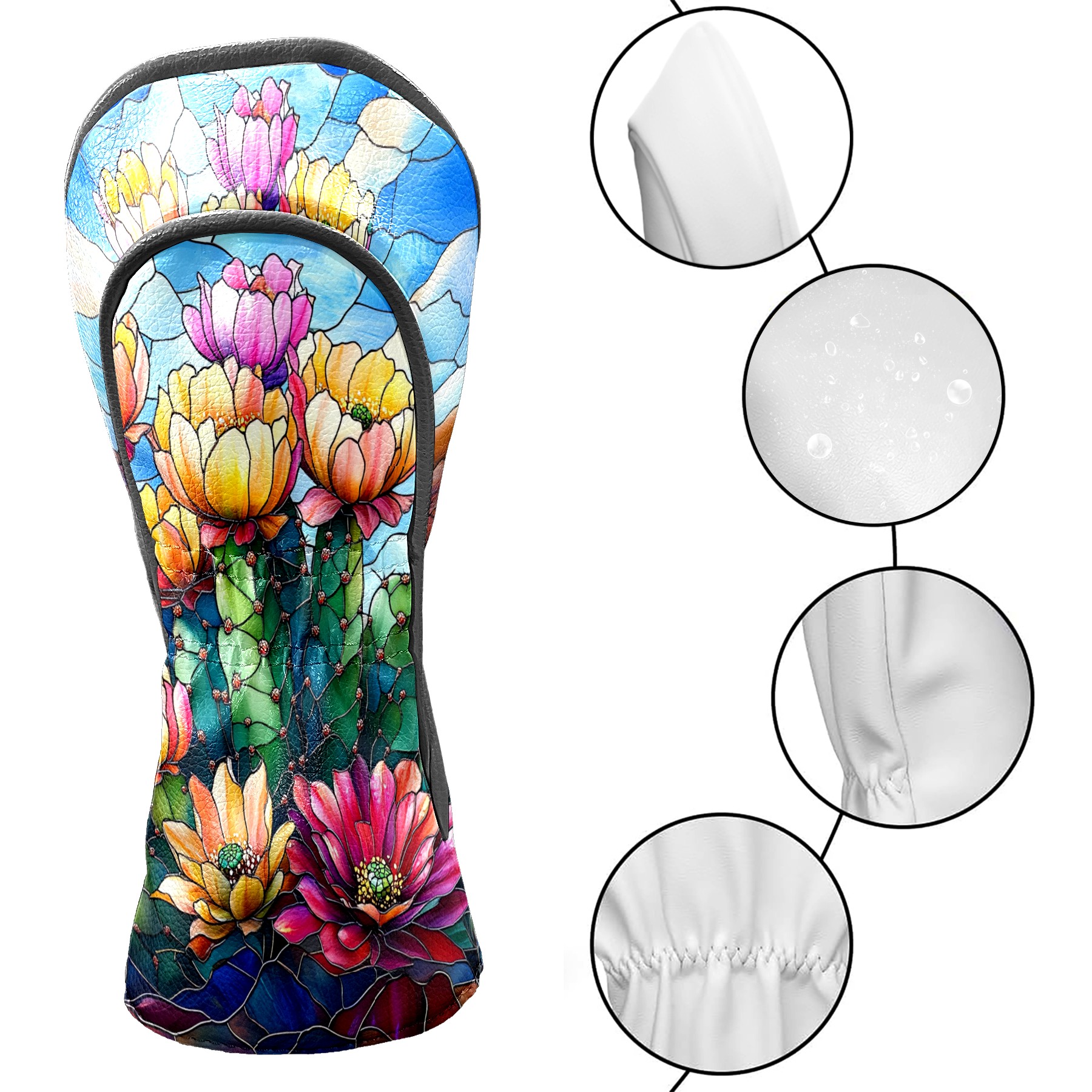 Golf Head Covers Leather Driver Head Cover, Premium Golf Club Covers with Anti-Scratch Lining for Women Men 1/3/5 Wood Cover for Golf Clubs (Stained Glass Cactus Flowers)