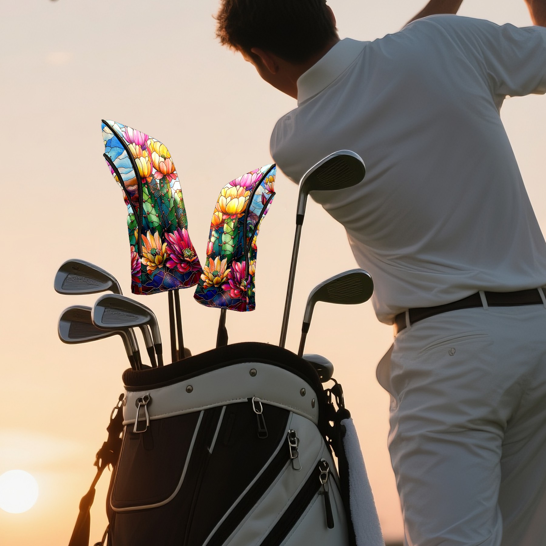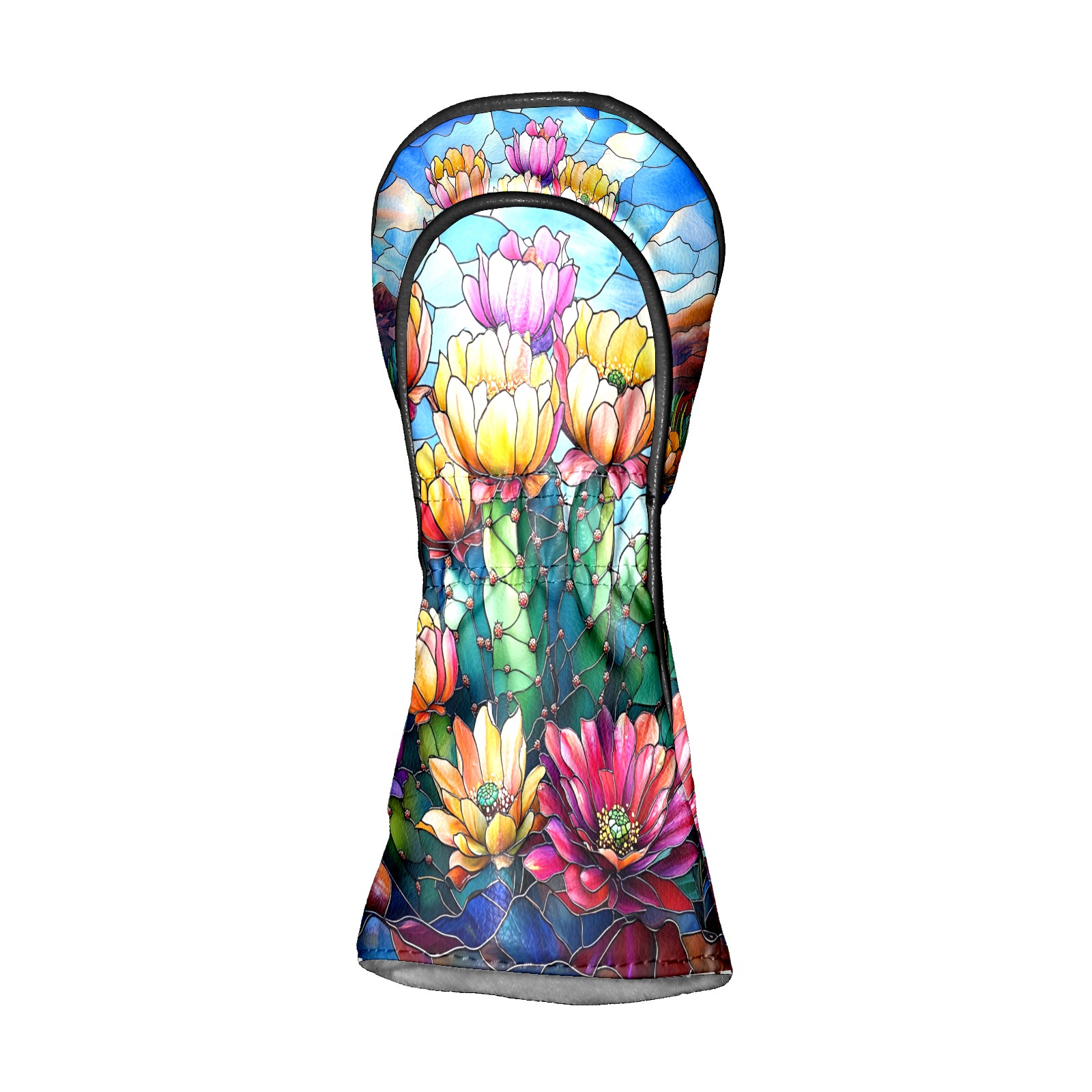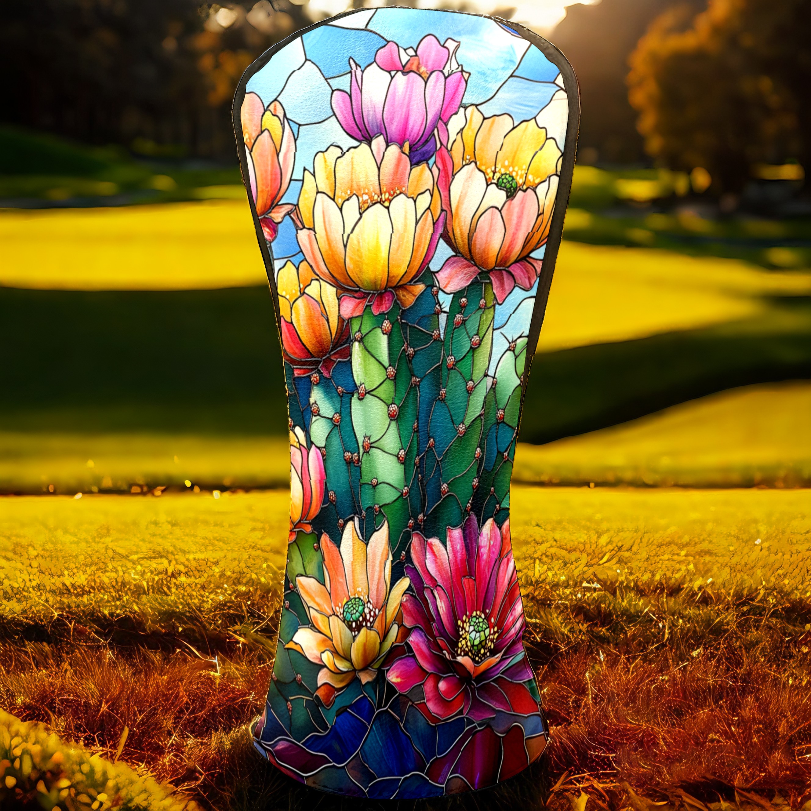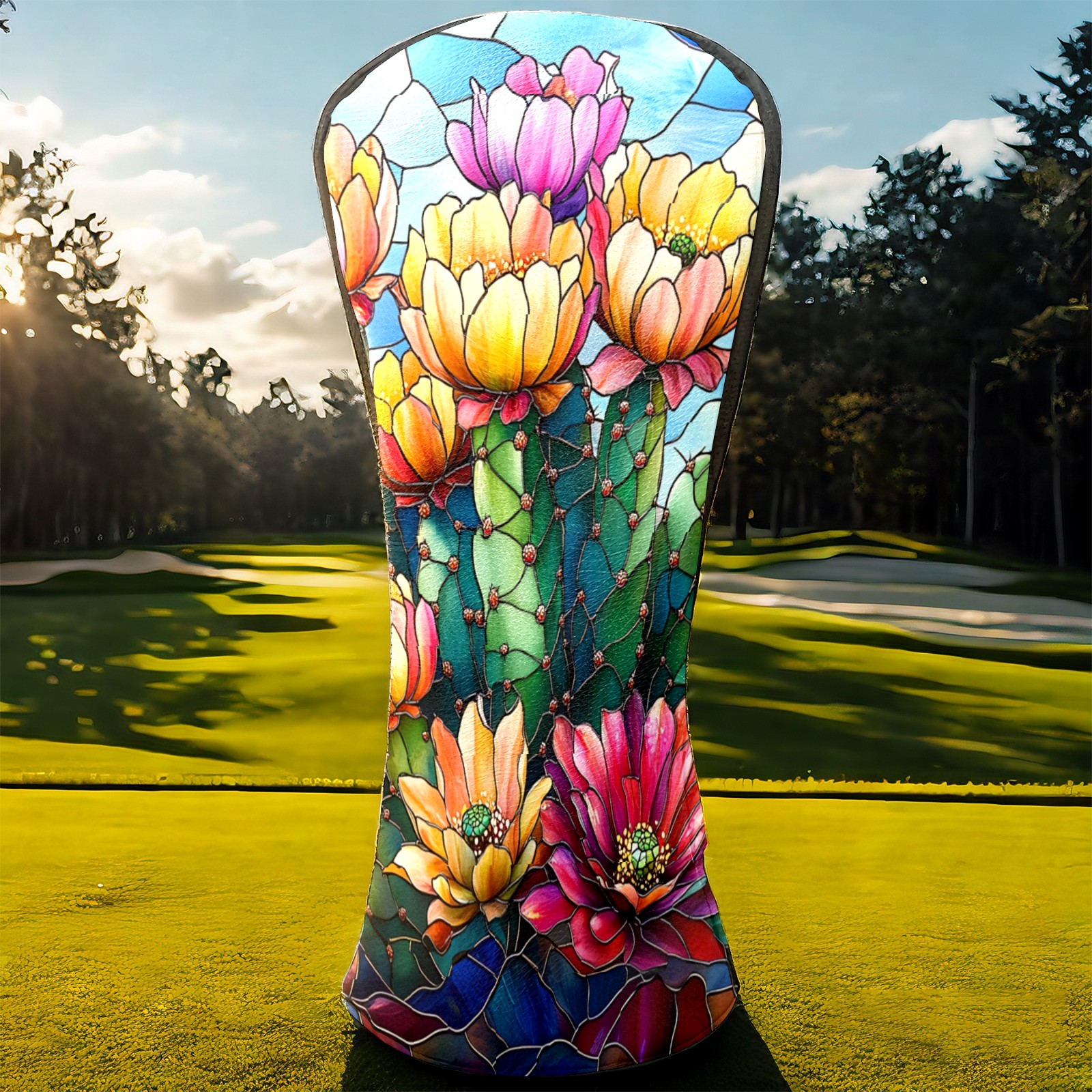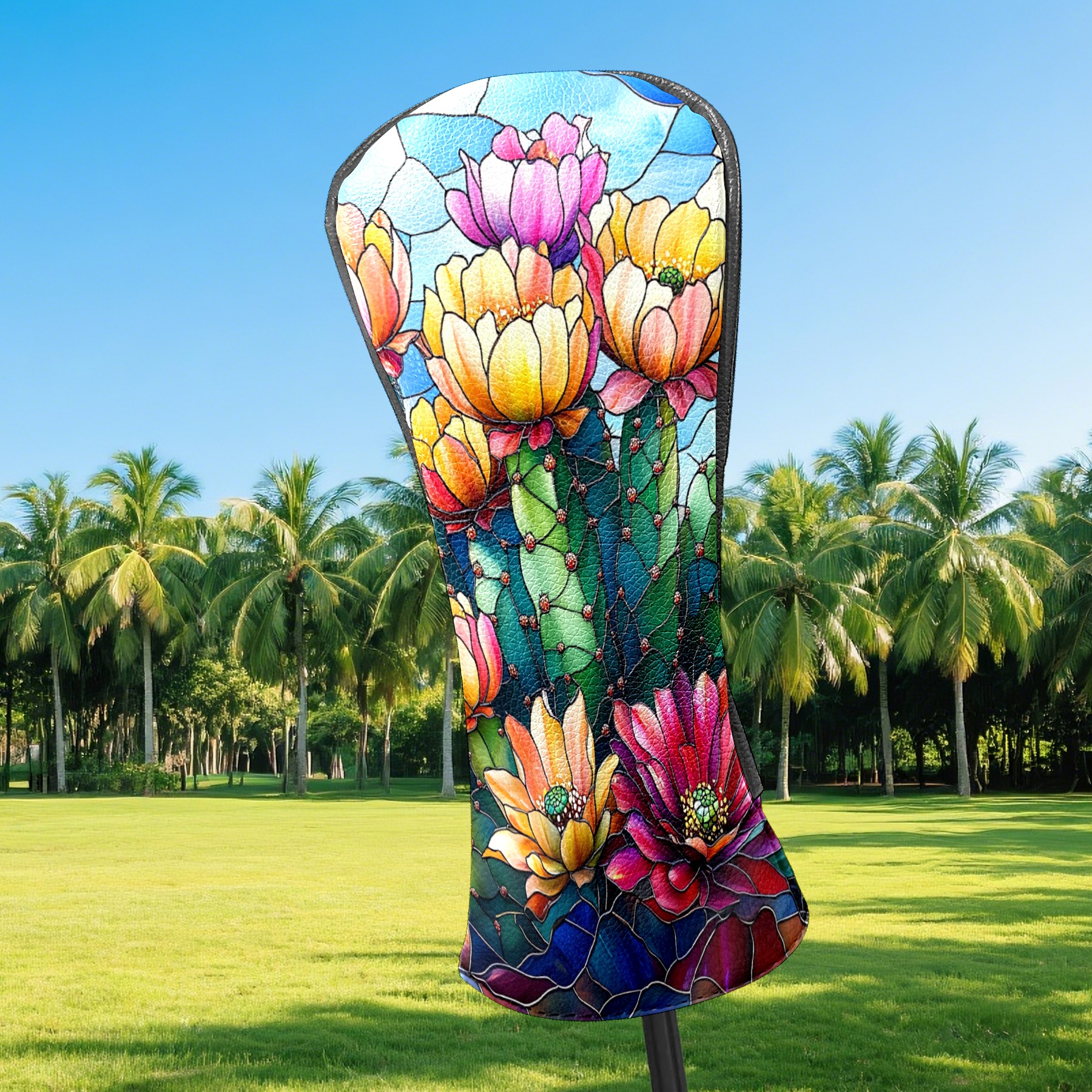 Golf Head Covers Leather Driver Head Cover, Premium Golf Club Covers with Anti-Scratch Lining for Women Men 1/3/5 Wood Cover for Golf Clubs (Stained Glass Cactus Flowers)