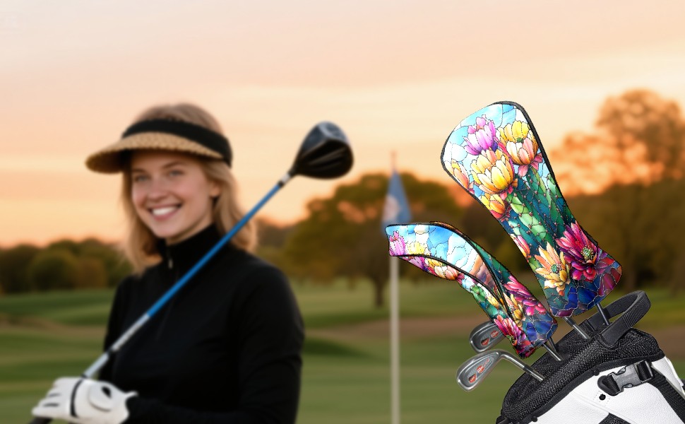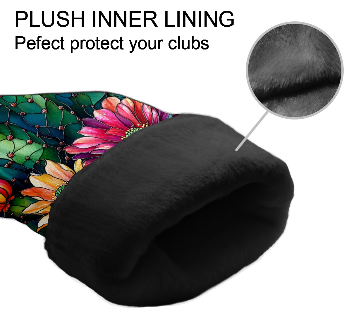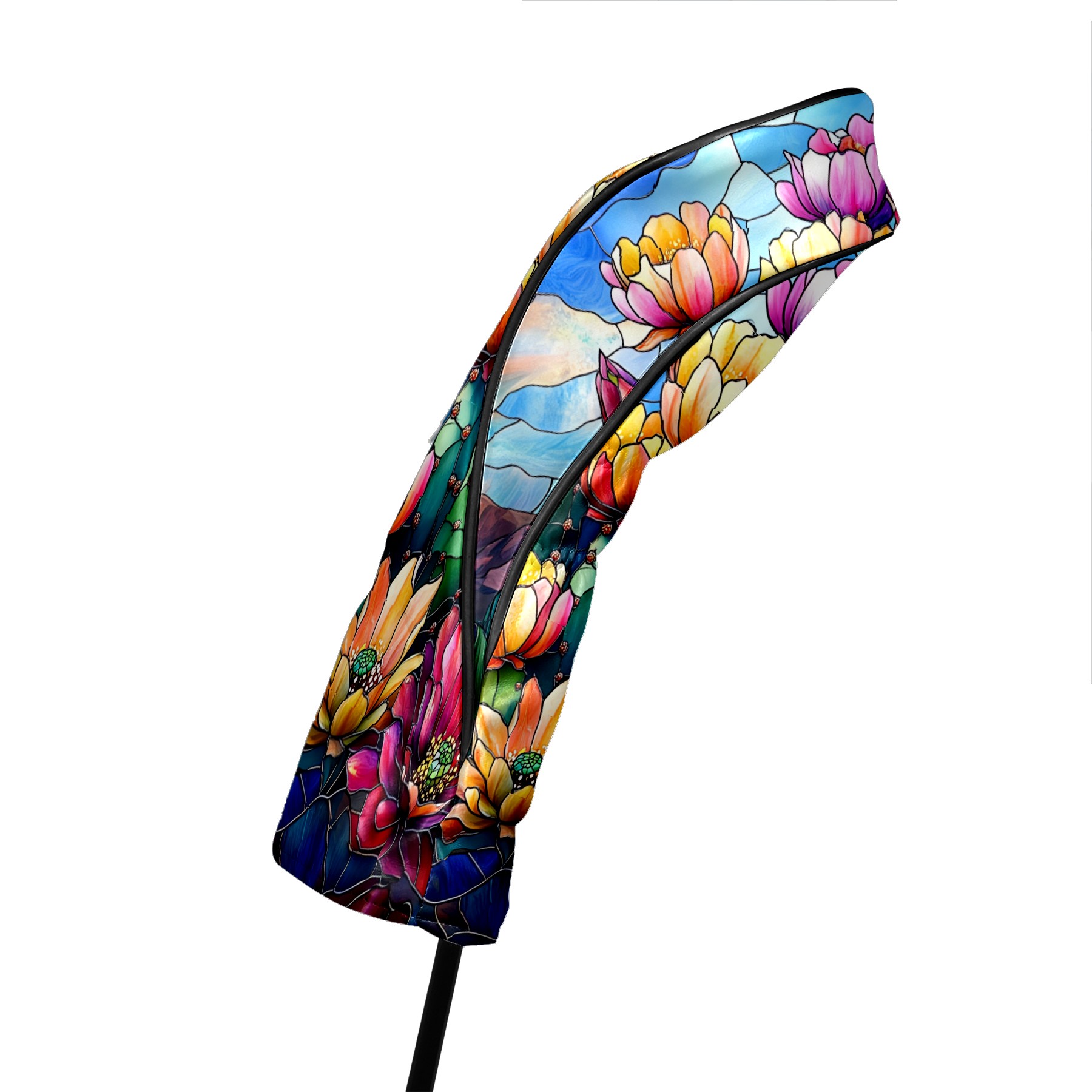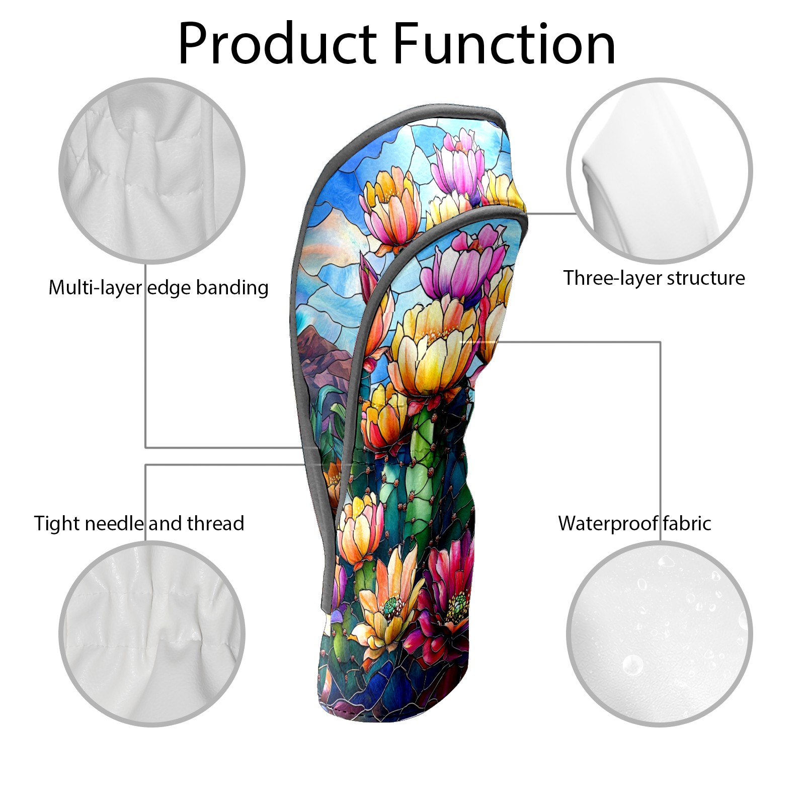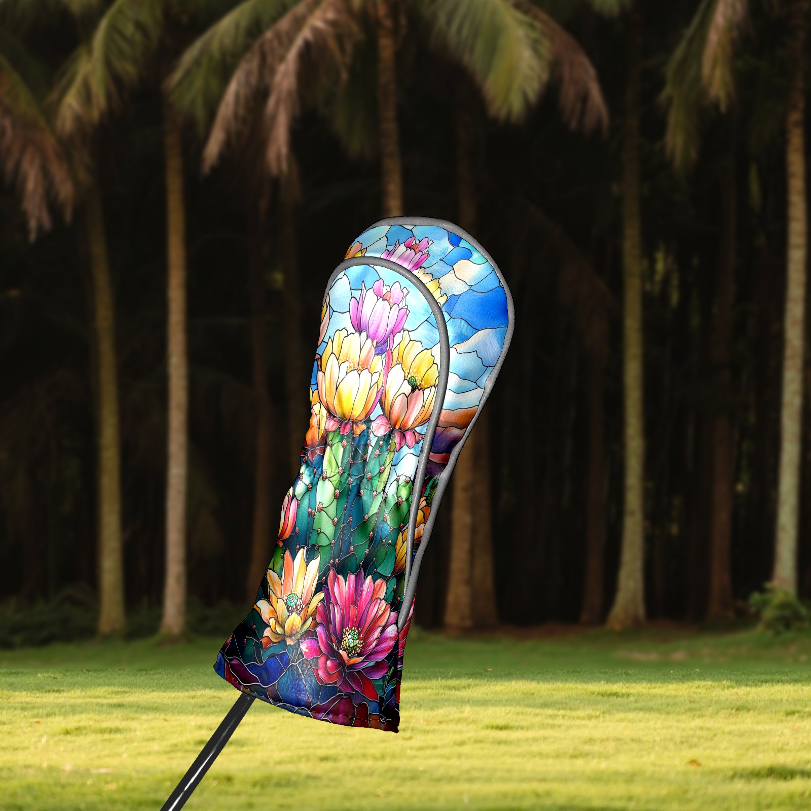 Golf Head Covers Leather Driver Head Cover, Premium Golf Club Covers with Anti-Scratch Lining for Women Men 1/3/5 Wood Cover for Golf Clubs (Stained Glass Cactus Flowers)