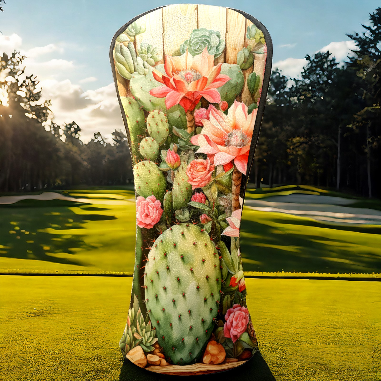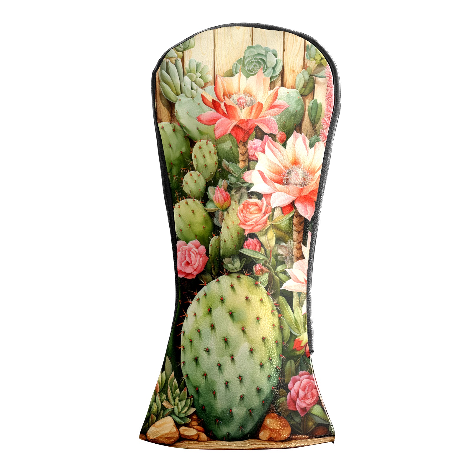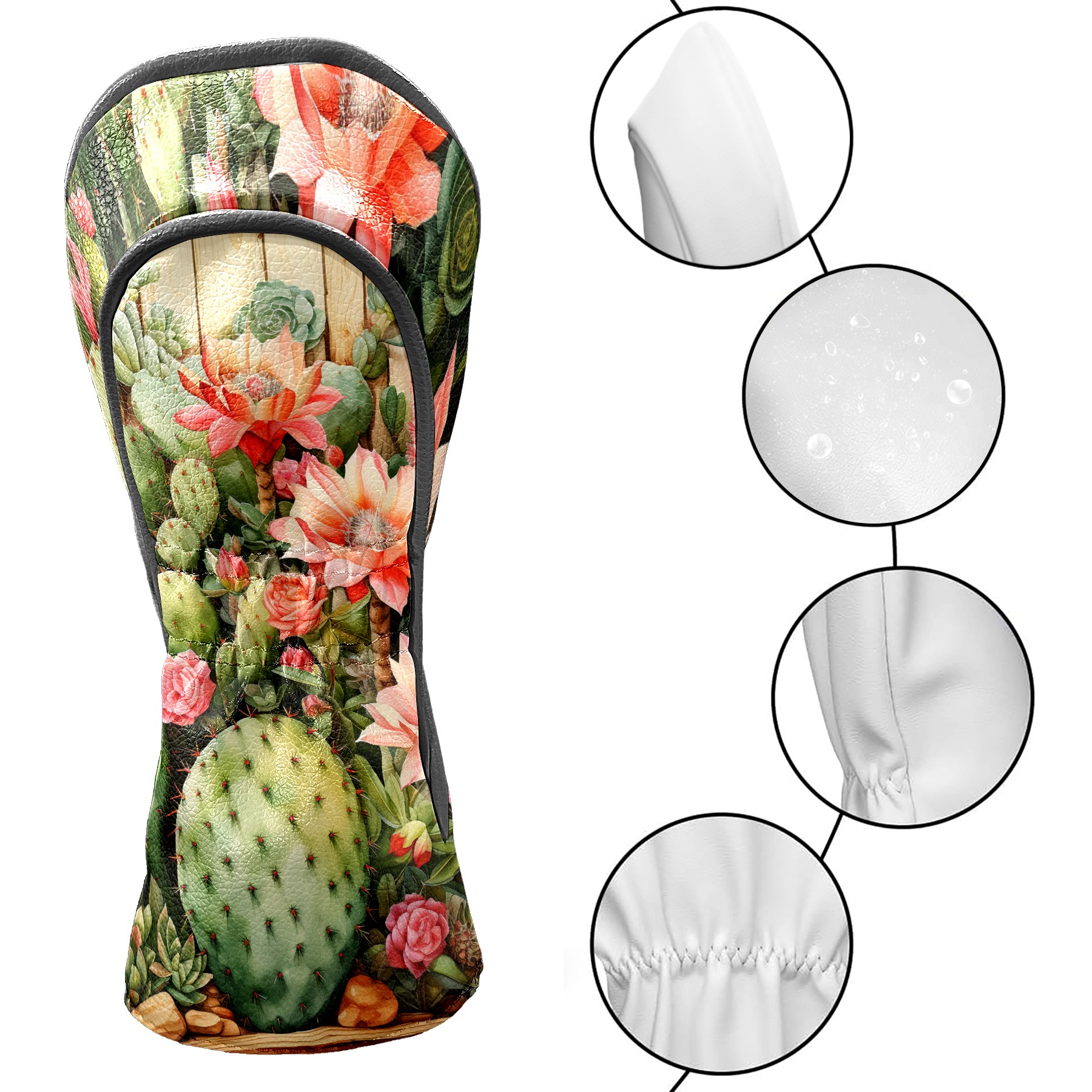 Golf Head Covers Leather Driver Head Cover, Premium Golf Club Covers with Anti-Scratch Lining for Women Men 1/3/5 Wood Cover for Golf Clubs (Cactus On Wood (5))