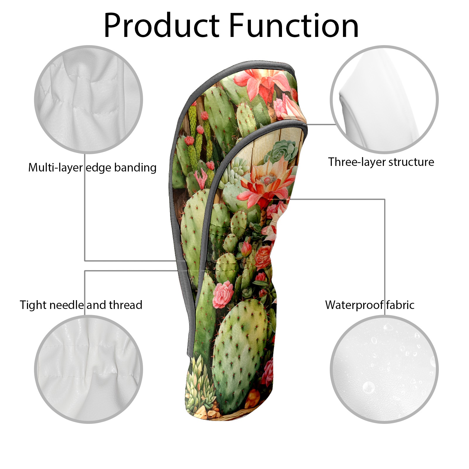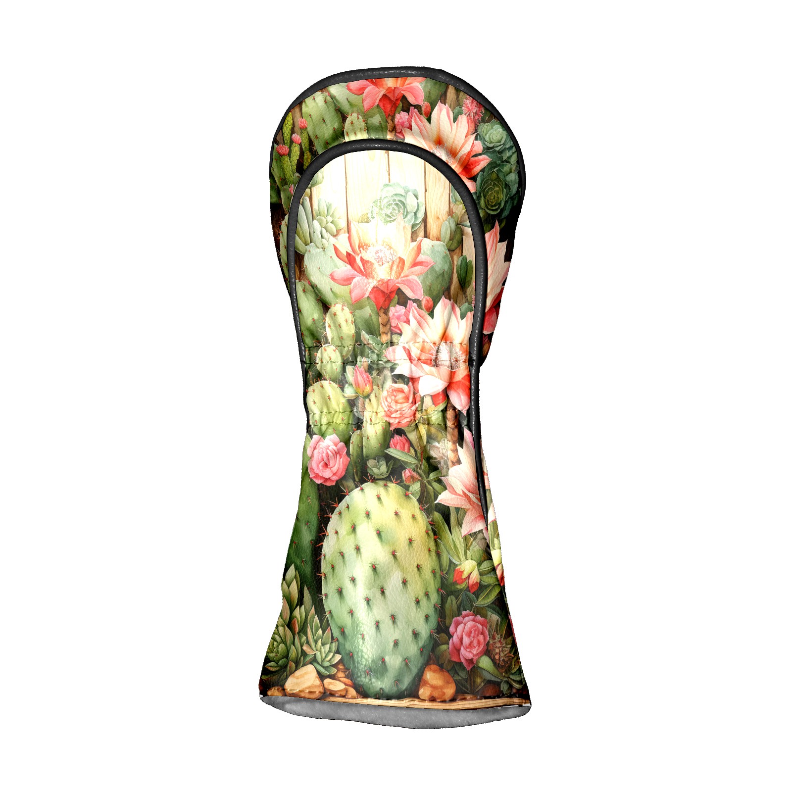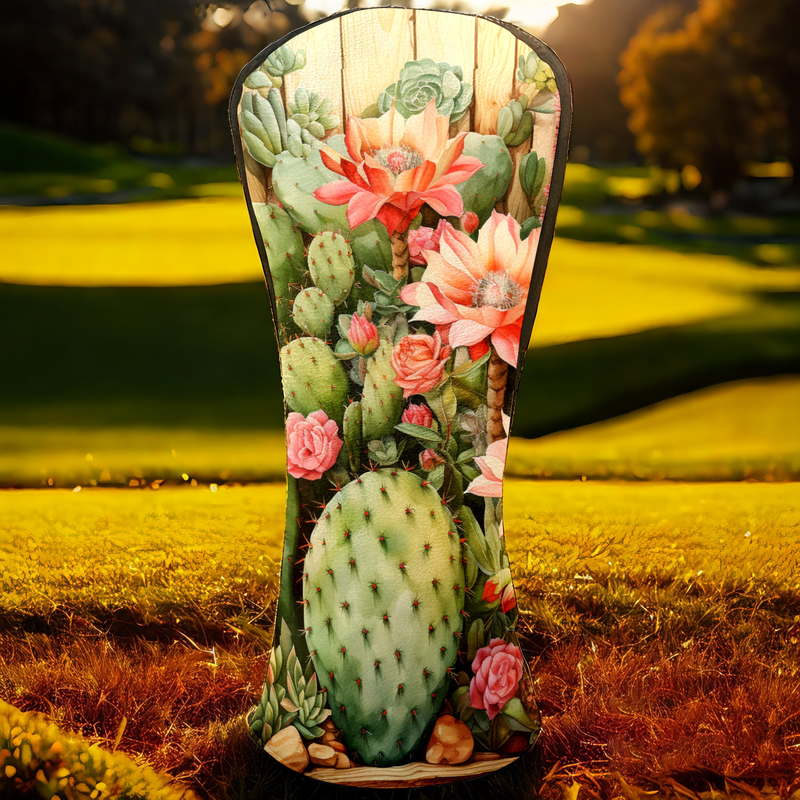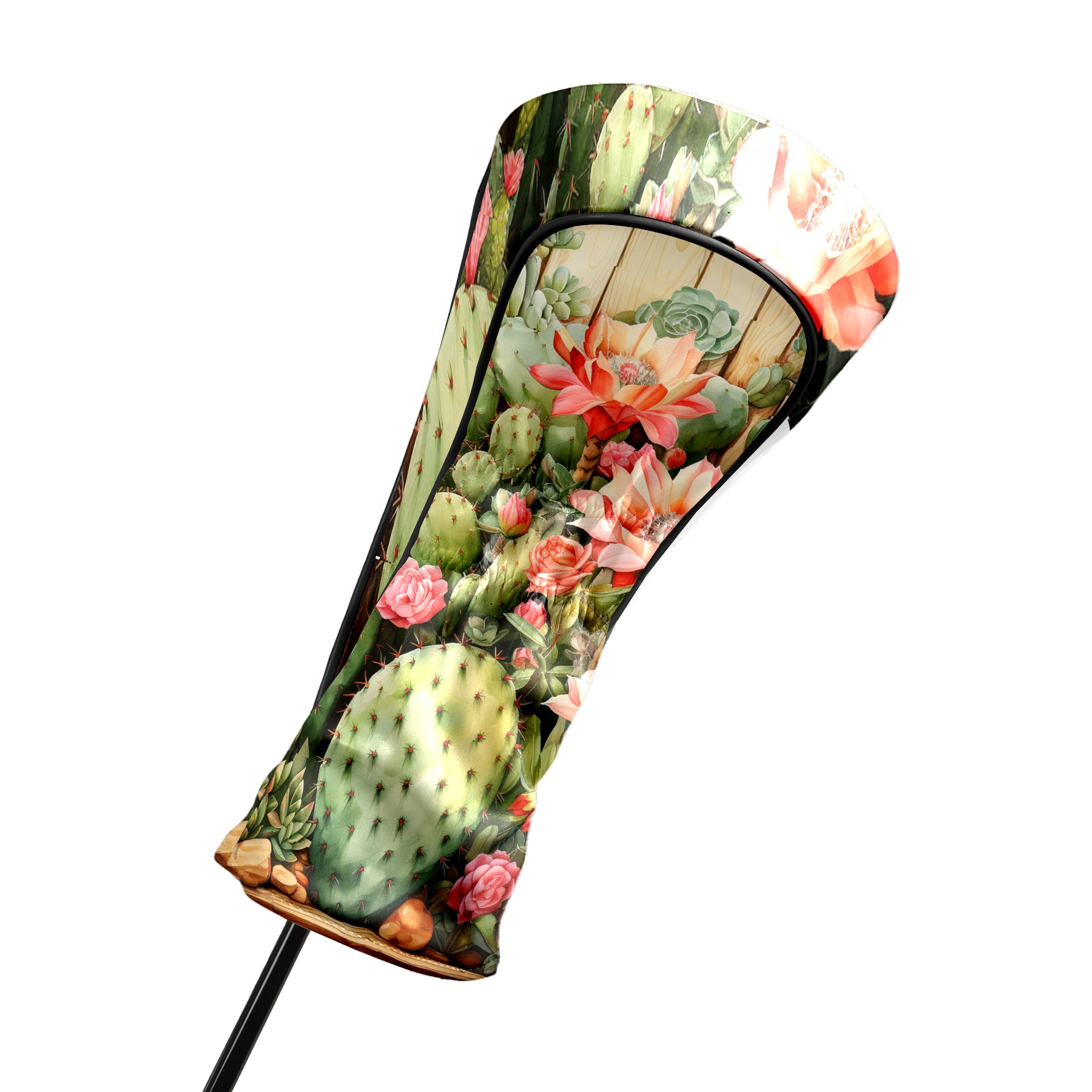 Golf Head Covers Leather Driver Head Cover, Premium Golf Club Covers with Anti-Scratch Lining for Women Men 1/3/5 Wood Cover for Golf Clubs (Cactus On Wood (5))
